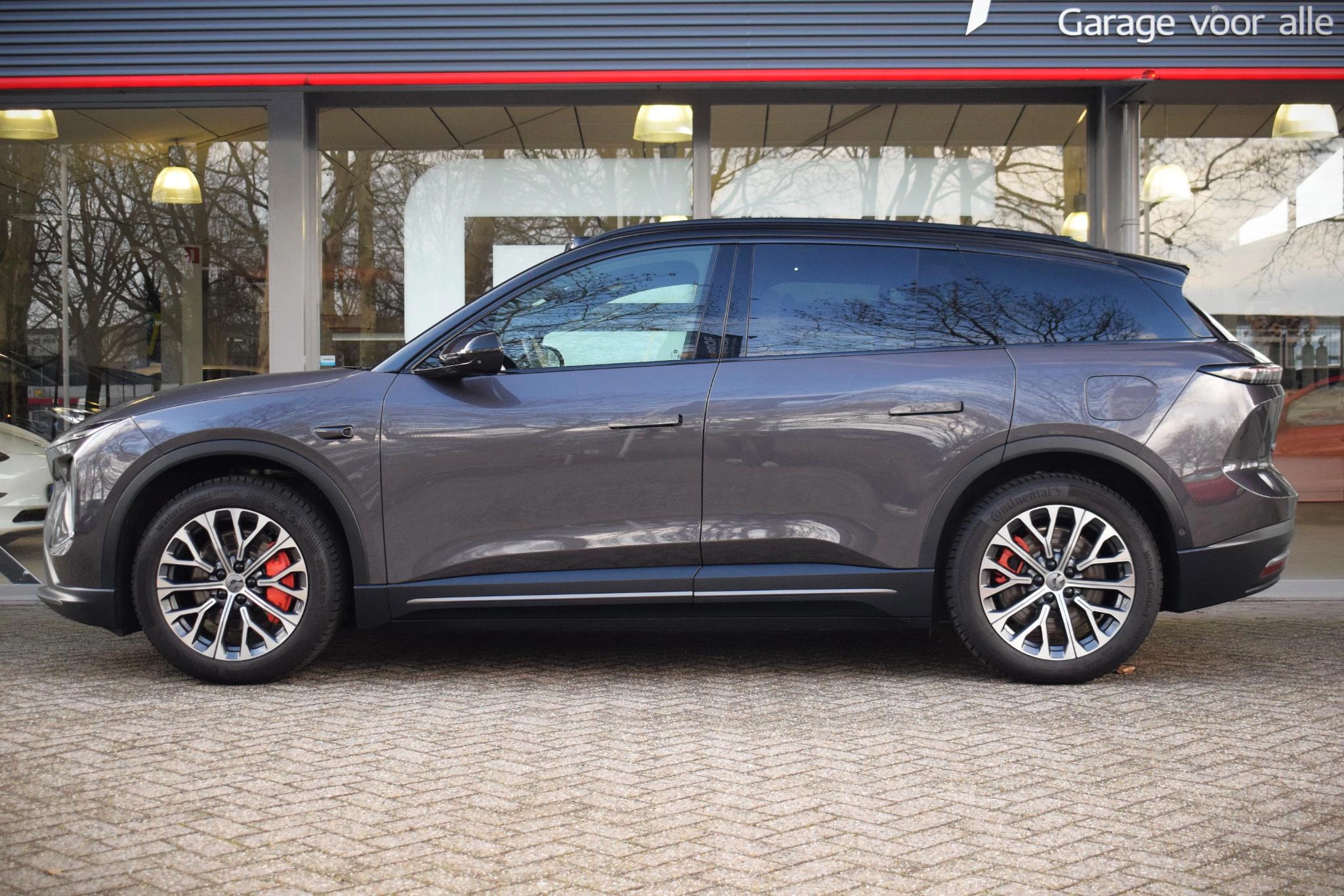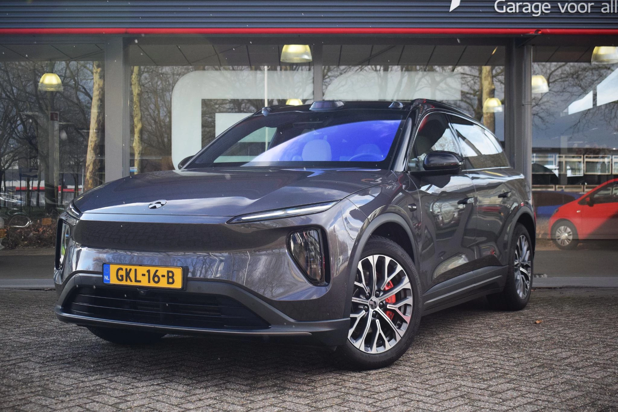 Betreft accu-huur €289 inc btw per maand. Hiervoor kun je 2x per maand de accu wisselen bij een Nio station. Uiteraard kun je hem ook gewoon opladen bij elke laadpaal. Auto staat getoond op zijn winterset, er zit nog een 21inch zomerset bij.