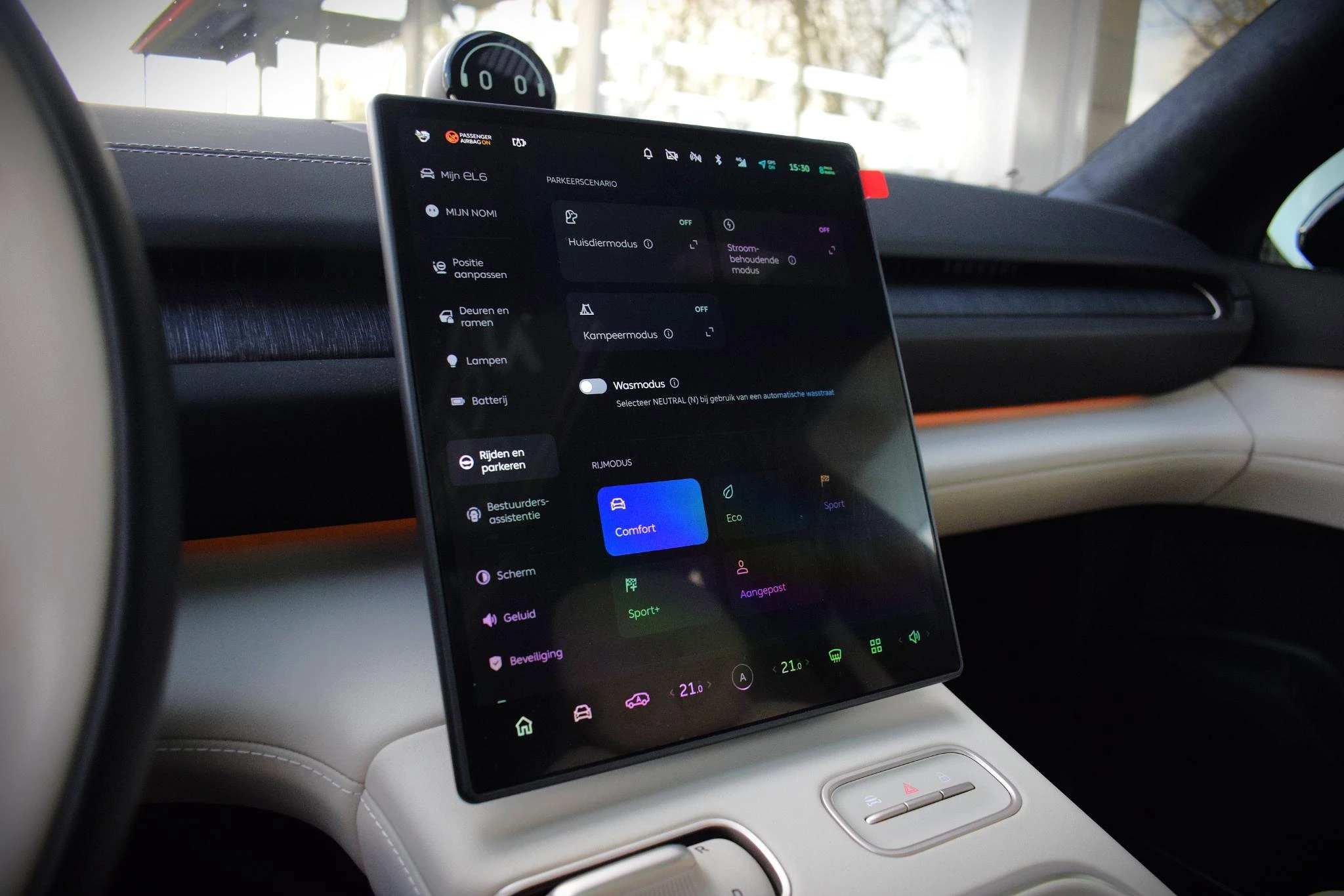 De nieuwste veiligheidssystemen komen in deze NIO EL6 samen. Route- en rij-info aflezen van de voorruit? Met de head-up display hoeft u uw ogen geen seconde van de weg te halen! Verkeersbord-detectie herkent verkeersborden en toont deze op het instrumentarium van de auto. Een camera houdt de juiste koers binnen de rijstrook in de gaten en het Lane-keeping systeem corrigeert bij afwijkingen. Bovenop deze veiligheidsfeatures heeft deze NIO bovendien dodehoekdetector detectiesysteem, forward collision warning system, hill hold functie, autonoom remsysteem en bandenspanningcontrolesysteem.