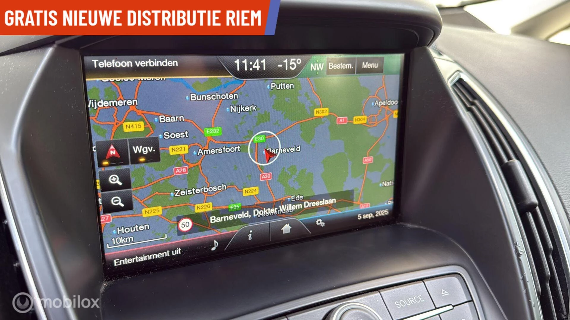 Onderweg kunt u veilig genieten van het audiosysteem en het full map navigatiesysteem. Want in deze Ford bedient u ze vanaf het stuurwiel. Natuurlijk is er ook cruise control aan boord, waarmee u meer ontspannen en zuiniger rijdt. Ja, airconditioning is er natuurlijk ook in deze auto. Met met startonderbreker, isofix-aansluiting, centrale deurvergrendeling met afstandsbediening en boordcomputer is deze Ford helemaal compleet.