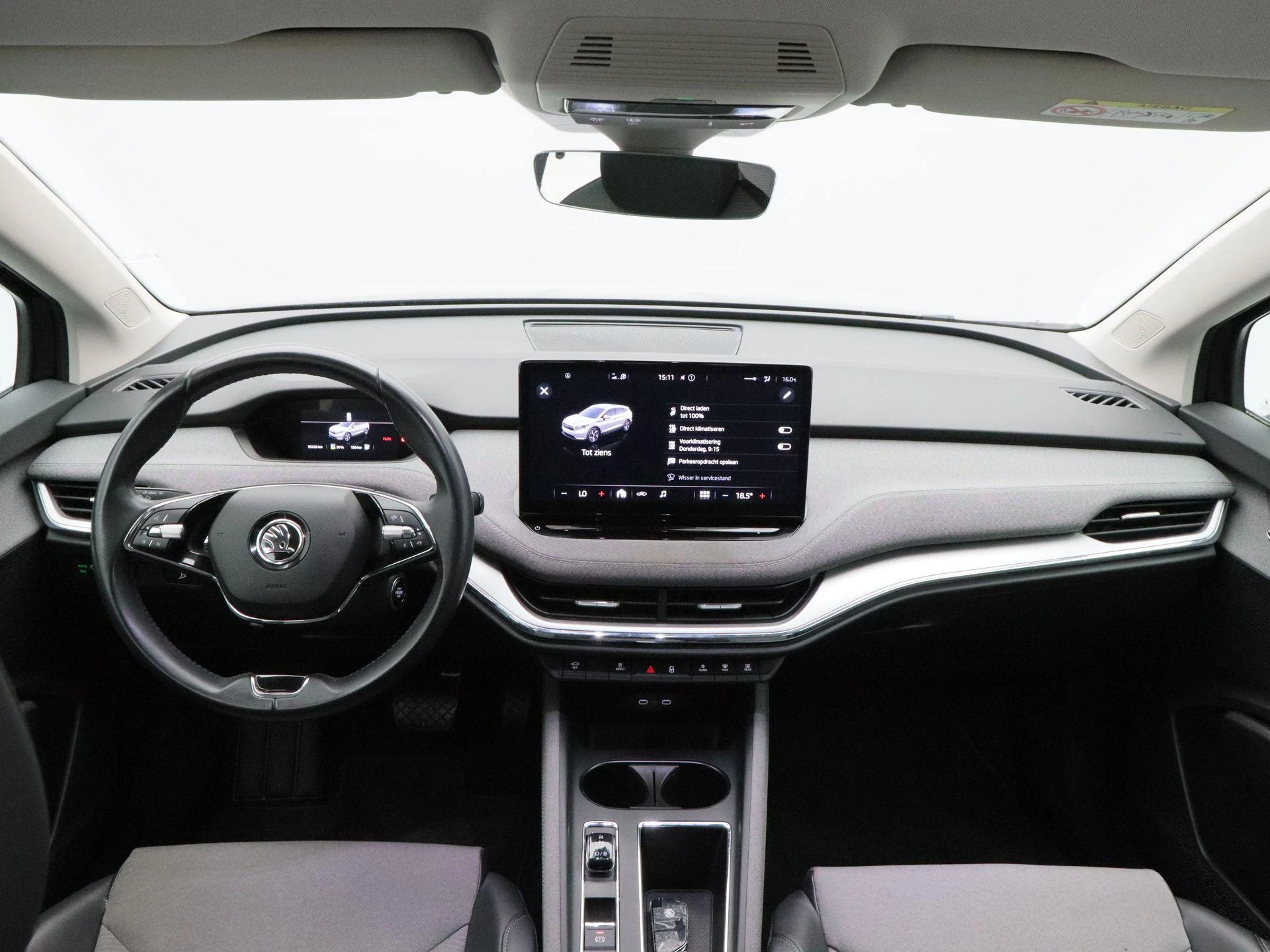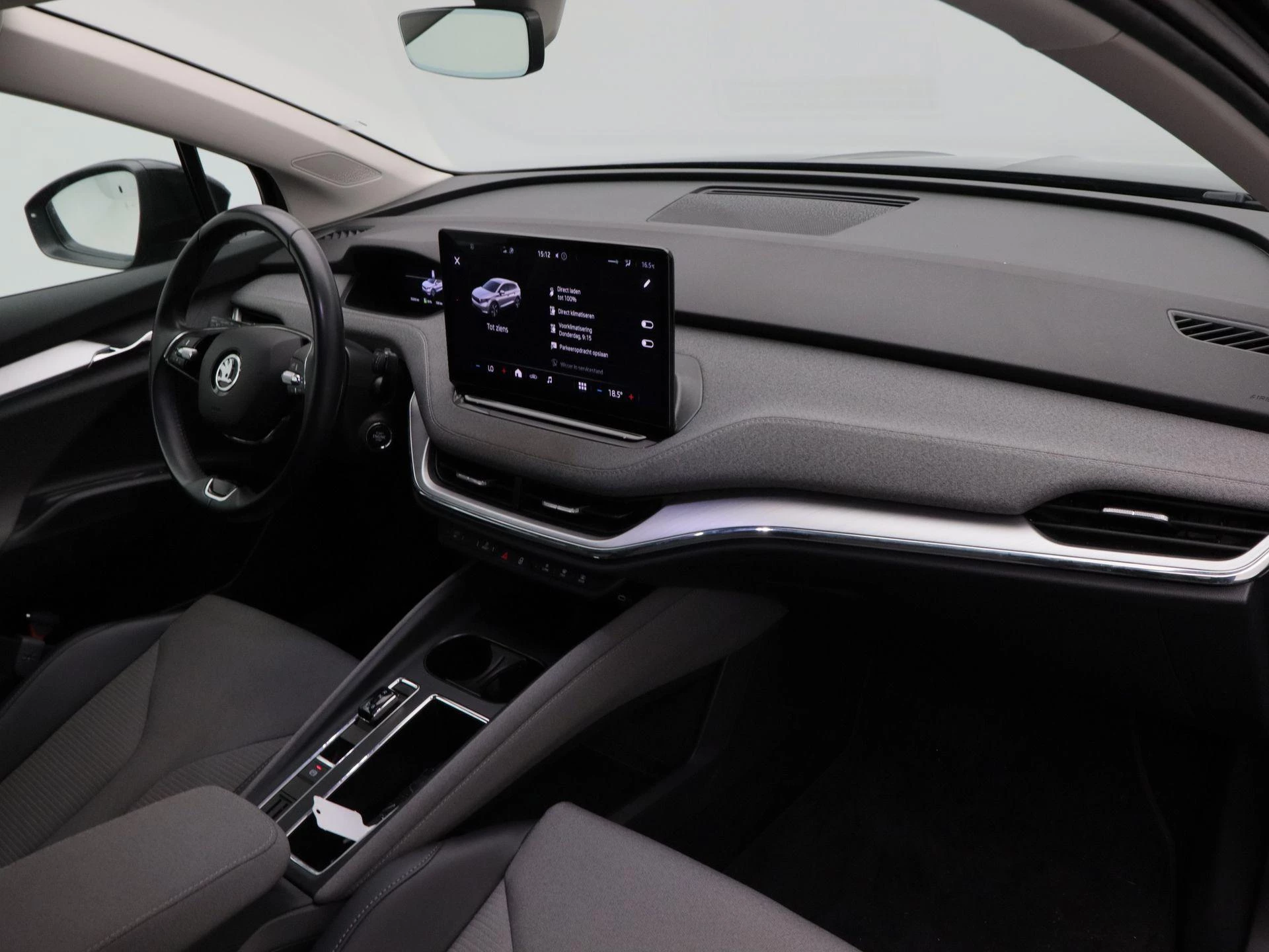 Binnenin geniet u van comfort en slimme technologie. De achteruitrijcamera maakt parkeren eenvoudig en overzichtelijk. Met cruise control rijdt u ontspannen langere afstanden. De automatische Climatronic zorgt altijd voor een aangename temperatuur in het interieur. Via Apple CarPlay koppelt u eenvoudig uw smartphone en met het geïntegreerde navigatiesysteem bereikt u moeiteloos iedere bestemming. Met de aanwezige trekhaak is deze Enyaq bovendien praktisch inzetbaar voor bijvoorbeeld een fietsendrager.