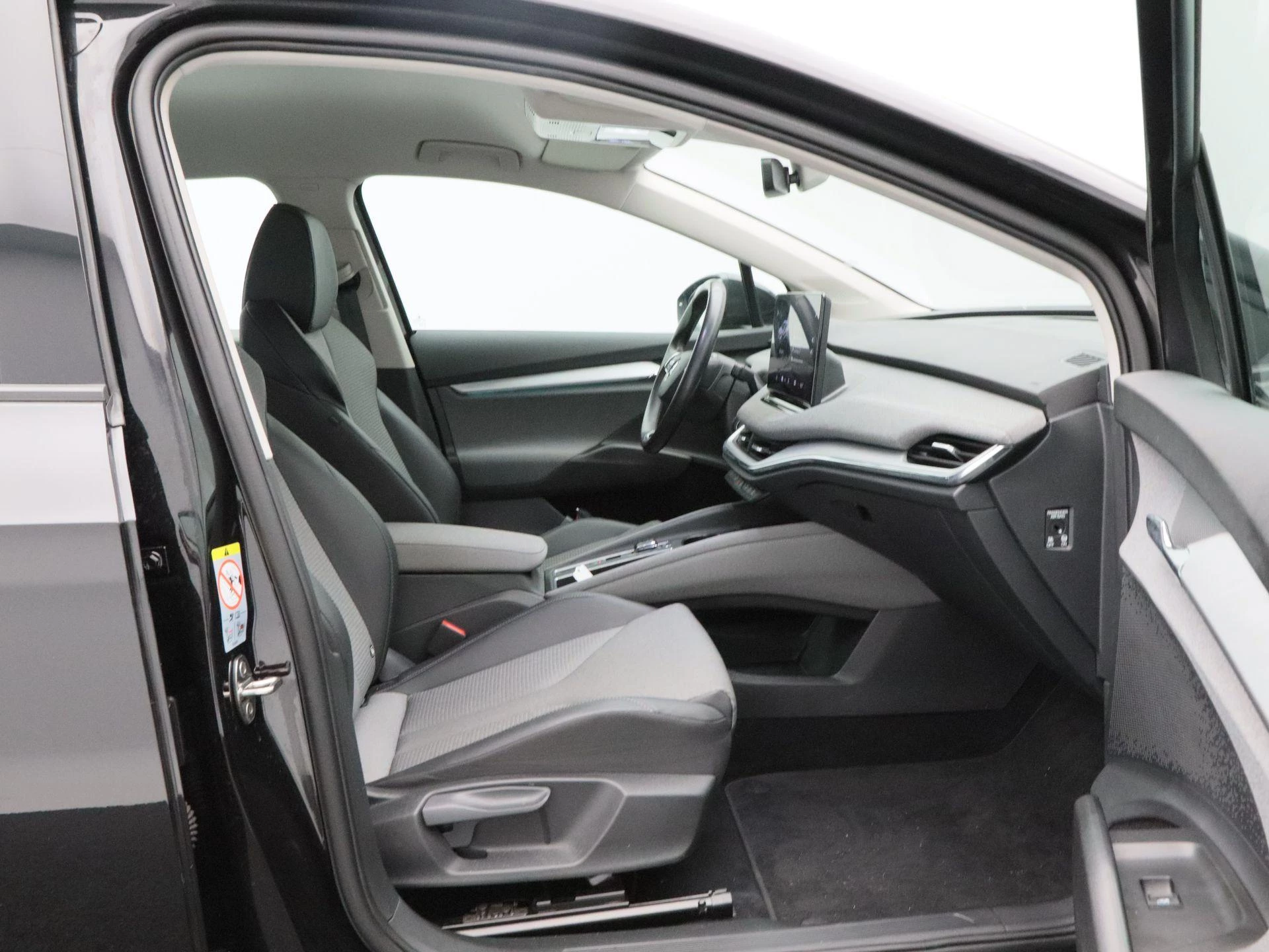 De Enyaq staat bekend om zijn royale binnenruimte, hoge zitpositie en comfortabele rijgedrag. De 19 inch lichtmetalen velgen geven deze SUV een moderne en krachtige uitstraling, terwijl het strakke design perfect aansluit bij zijn elektrische karakter.