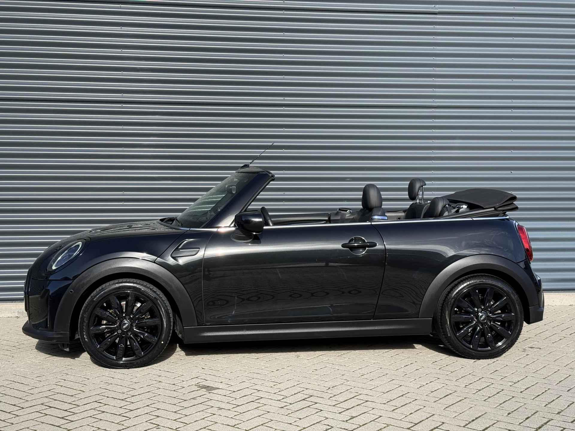 Schitterende Mini Cabrio Cooper automaat in Midnight Black metallic met Black Optic pakket en hoogglans zwarte lichtmetalen velgen met pas 9.888KM. De Mini is voorzien van veel mooie opties zoals: Achteruitrij camera, Harman Kardon Audio, lederen bekleding, sport-comfort stoelen, Navigatie, Apple Carplay, stoelverwarming, parkeersensoren, keyless entry and start, cruise control, virtuele cockpit, LED sfeer interieur verlichting, windscherm, etc..