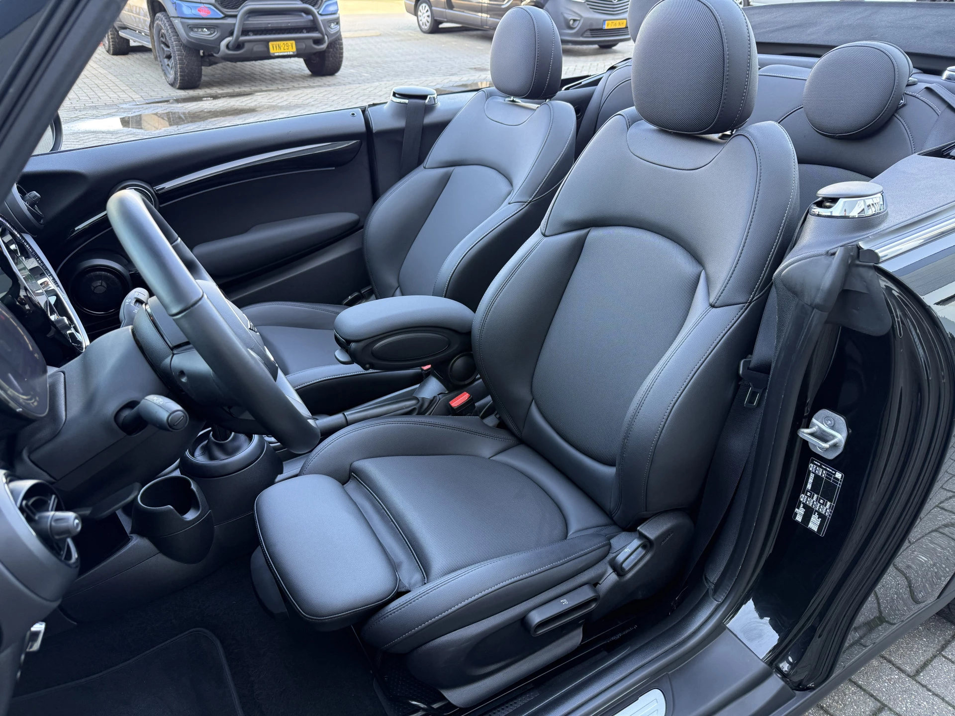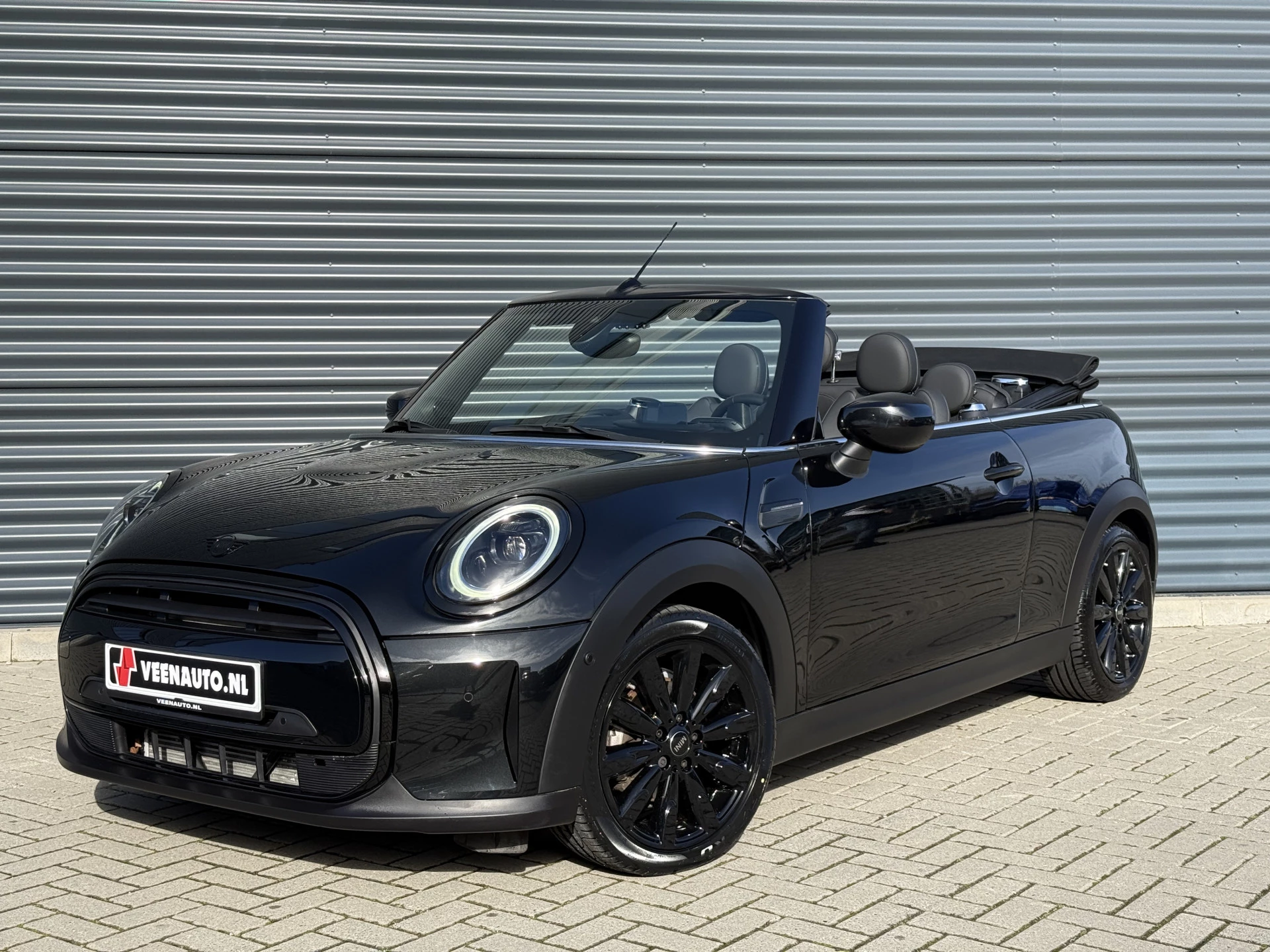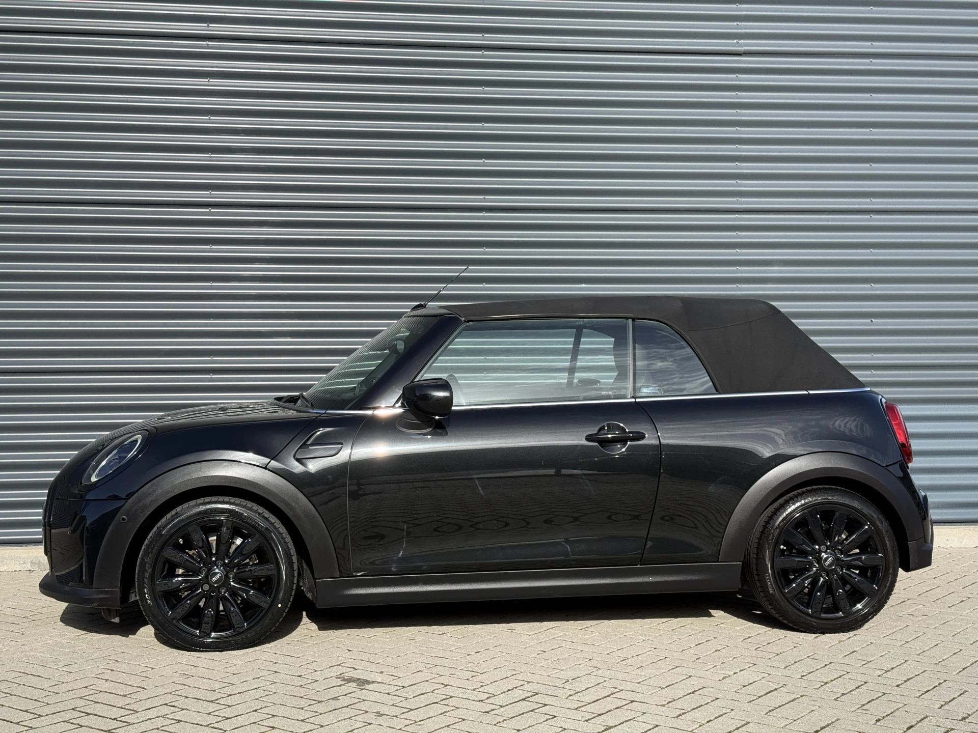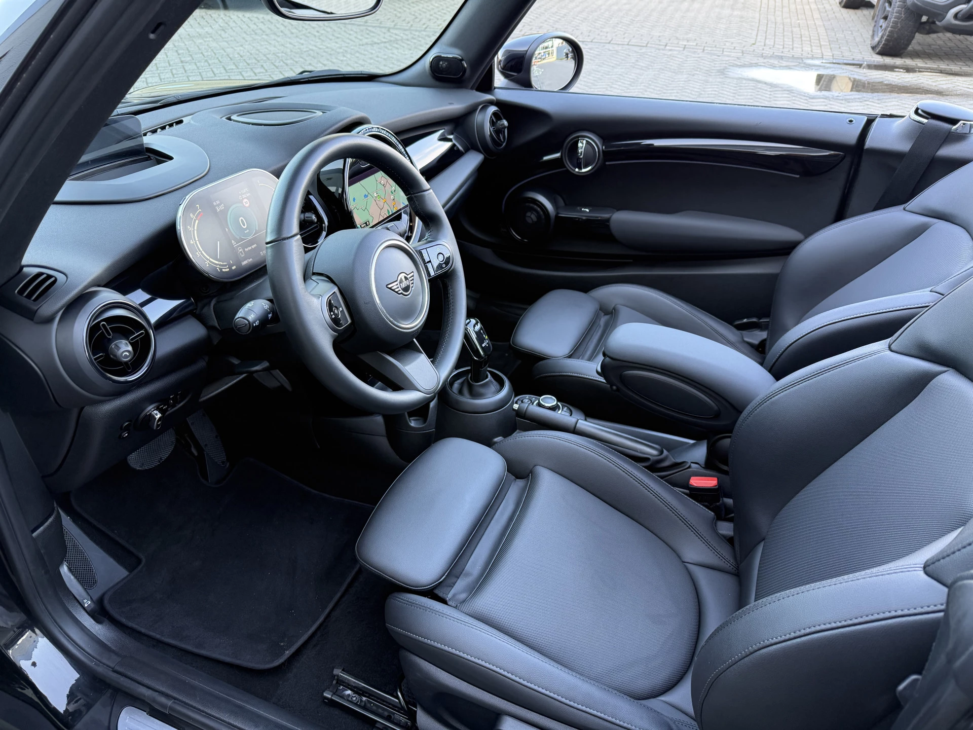 Schitterende Mini Cabrio Cooper automaat in Midnight Black metallic met Black Optic pakket en hoogglans zwarte lichtmetalen velgen met pas 9.888KM. De Mini is voorzien van veel mooie opties zoals: Achteruitrij camera, Harman Kardon Audio, lederen bekleding, sport-comfort stoelen, Navigatie, Apple Carplay, stoelverwarming, parkeersensoren, keyless entry and start, cruise control, virtuele cockpit, LED sfeer interieur verlichting, windscherm, etc..