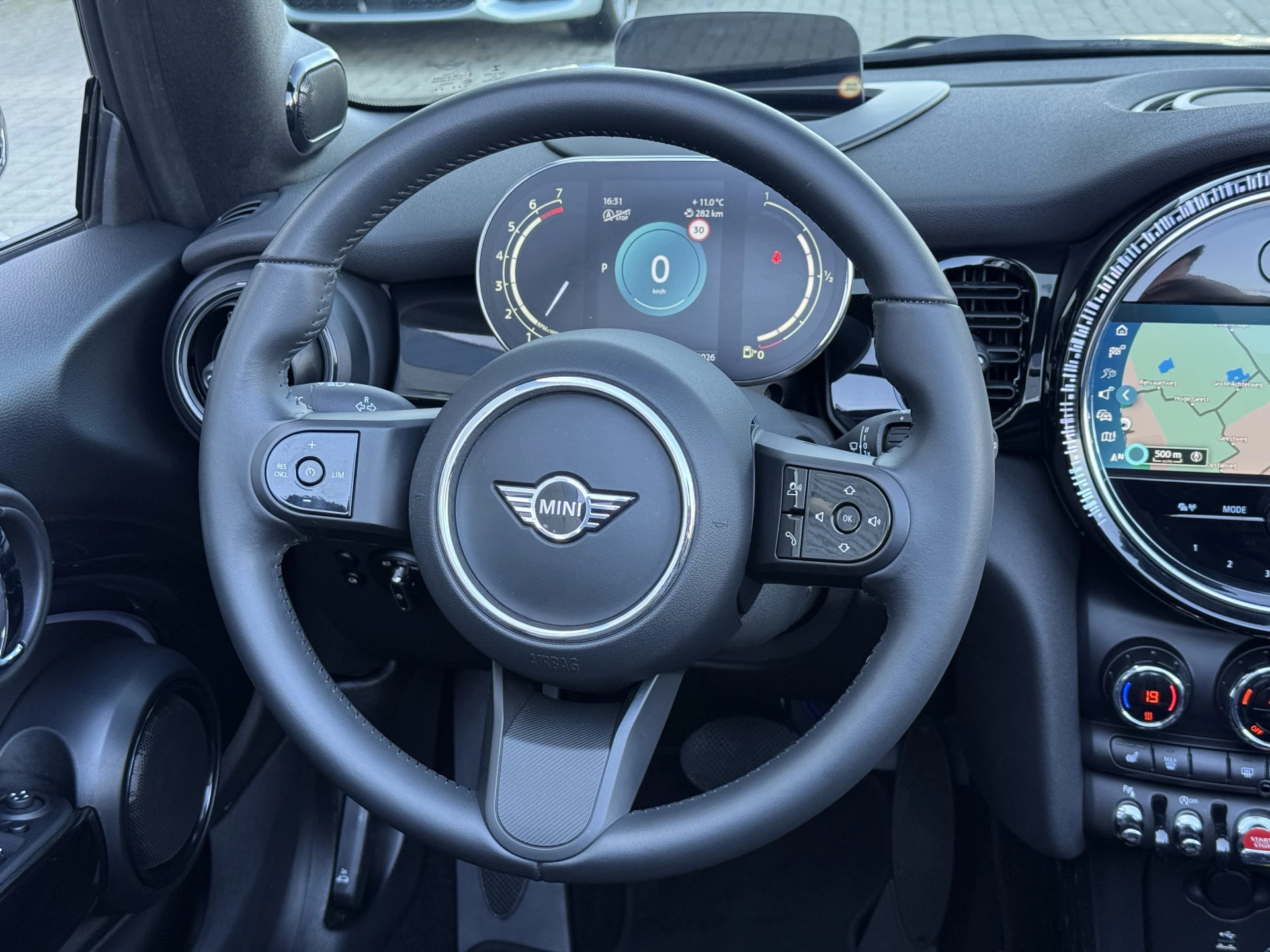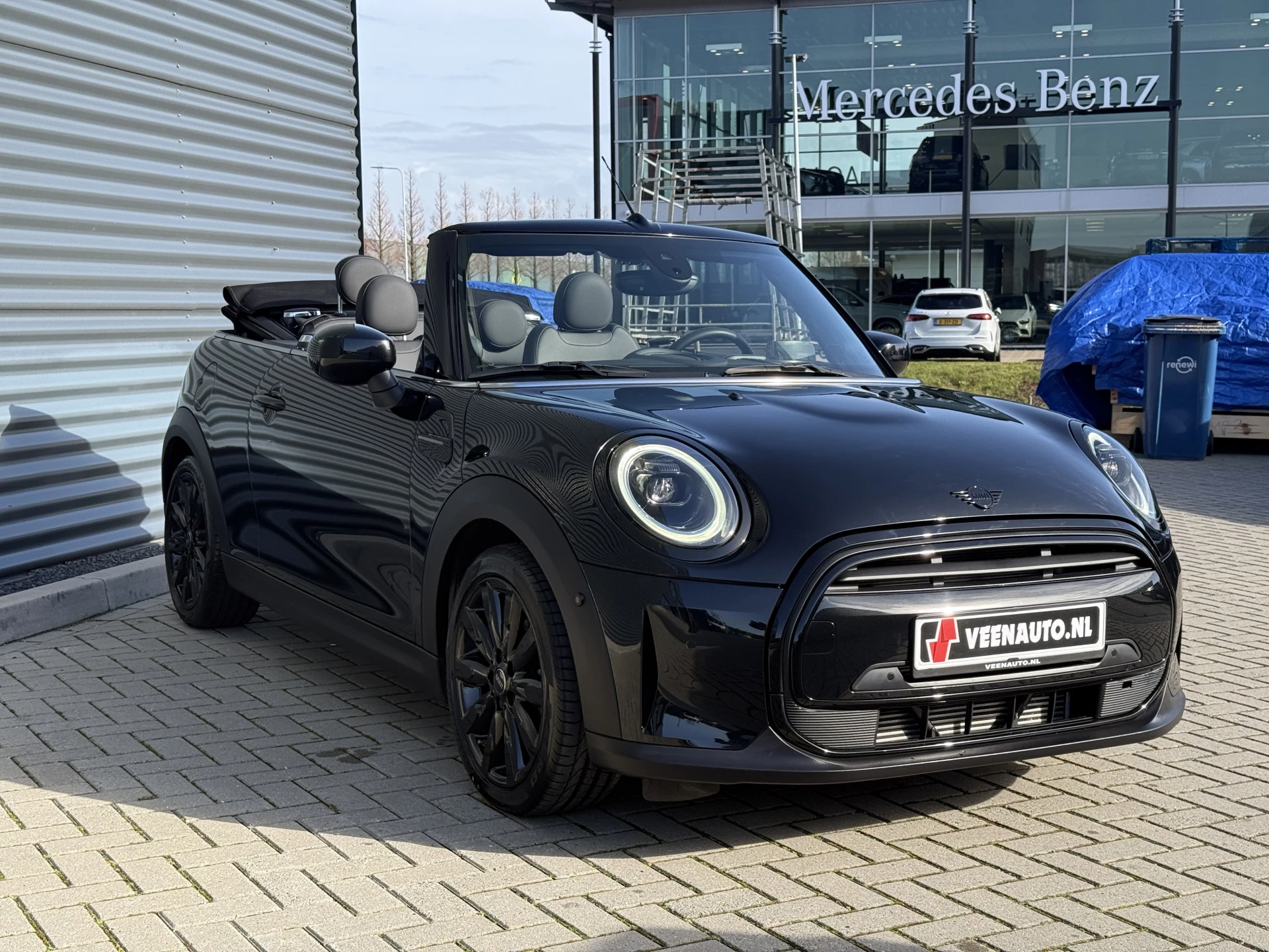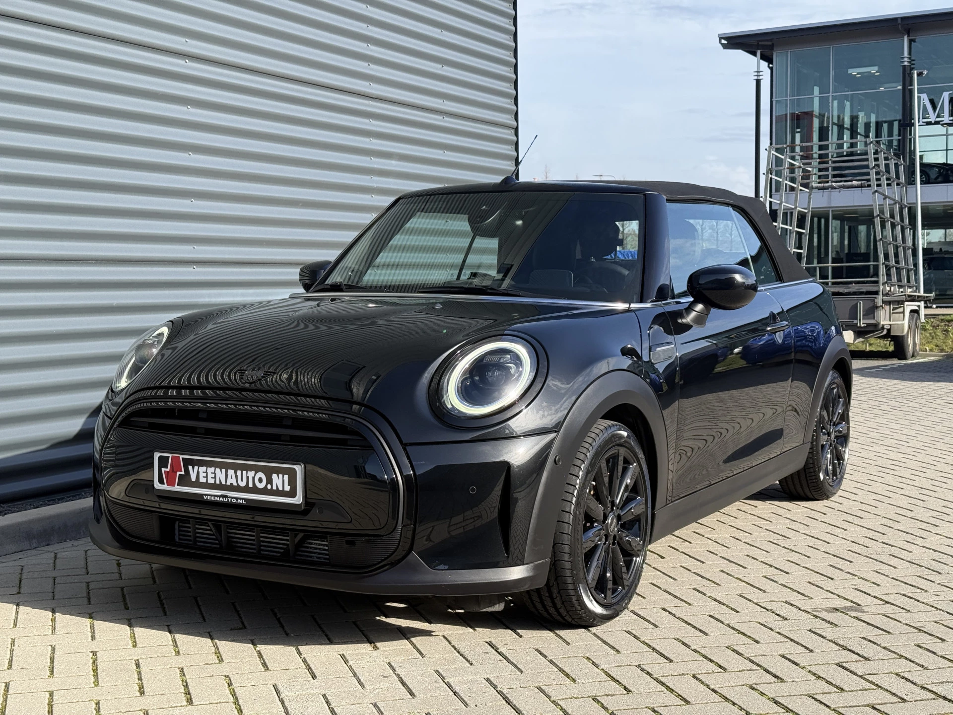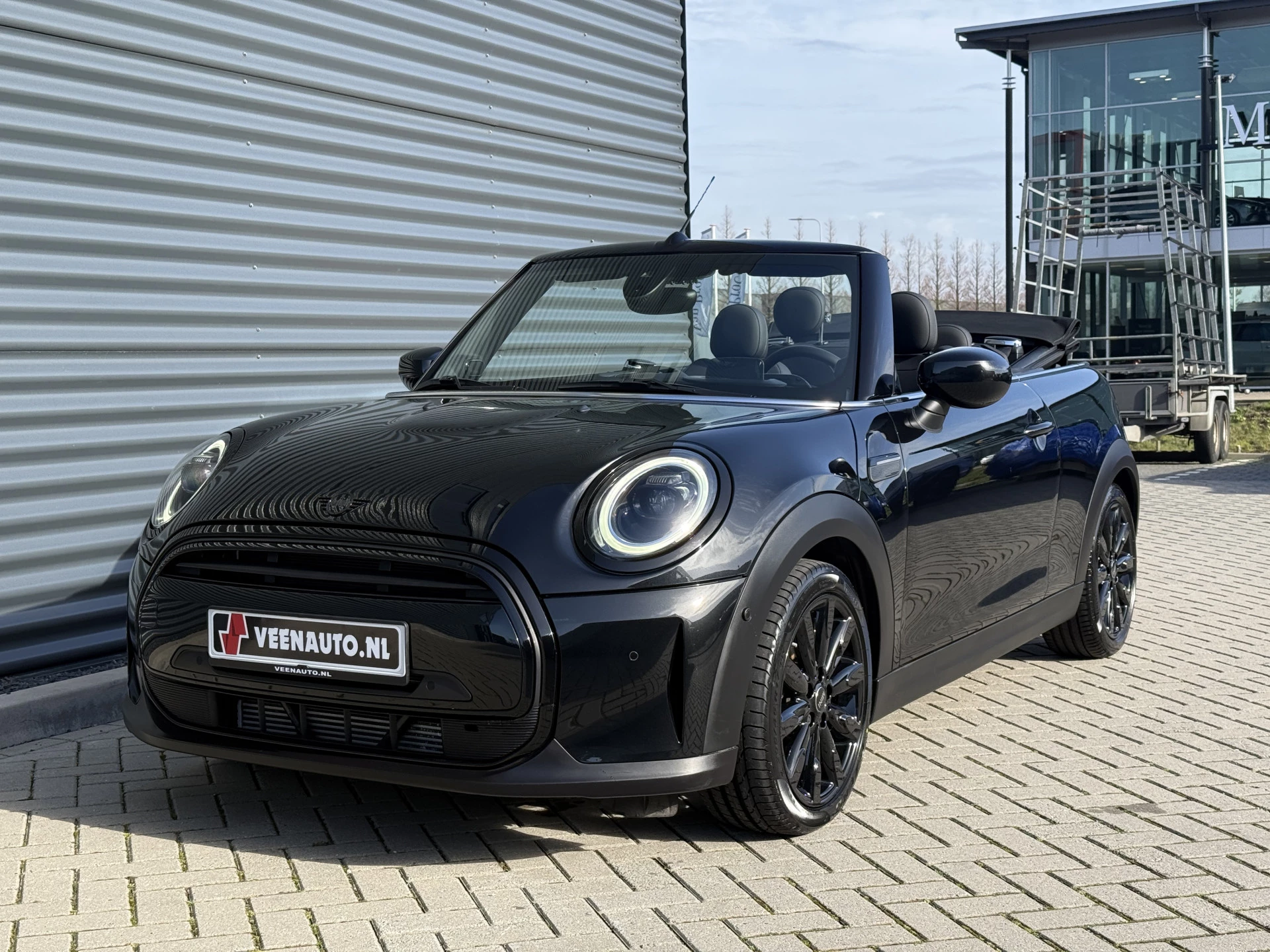 Schitterende Mini Cabrio Cooper automaat in Midnight Black metallic met Black Optic pakket en hoogglans zwarte lichtmetalen velgen met pas 9.888KM. De Mini is voorzien van veel mooie opties zoals: Achteruitrij camera, Harman Kardon Audio, lederen bekleding, sport-comfort stoelen, Navigatie, Apple Carplay, stoelverwarming, parkeersensoren, keyless entry and start, cruise control, virtuele cockpit, LED sfeer interieur verlichting, windscherm, etc..
