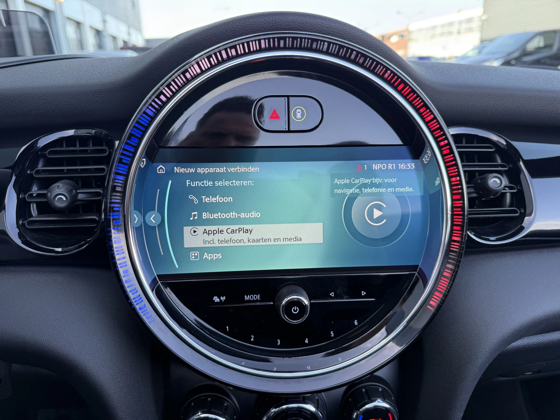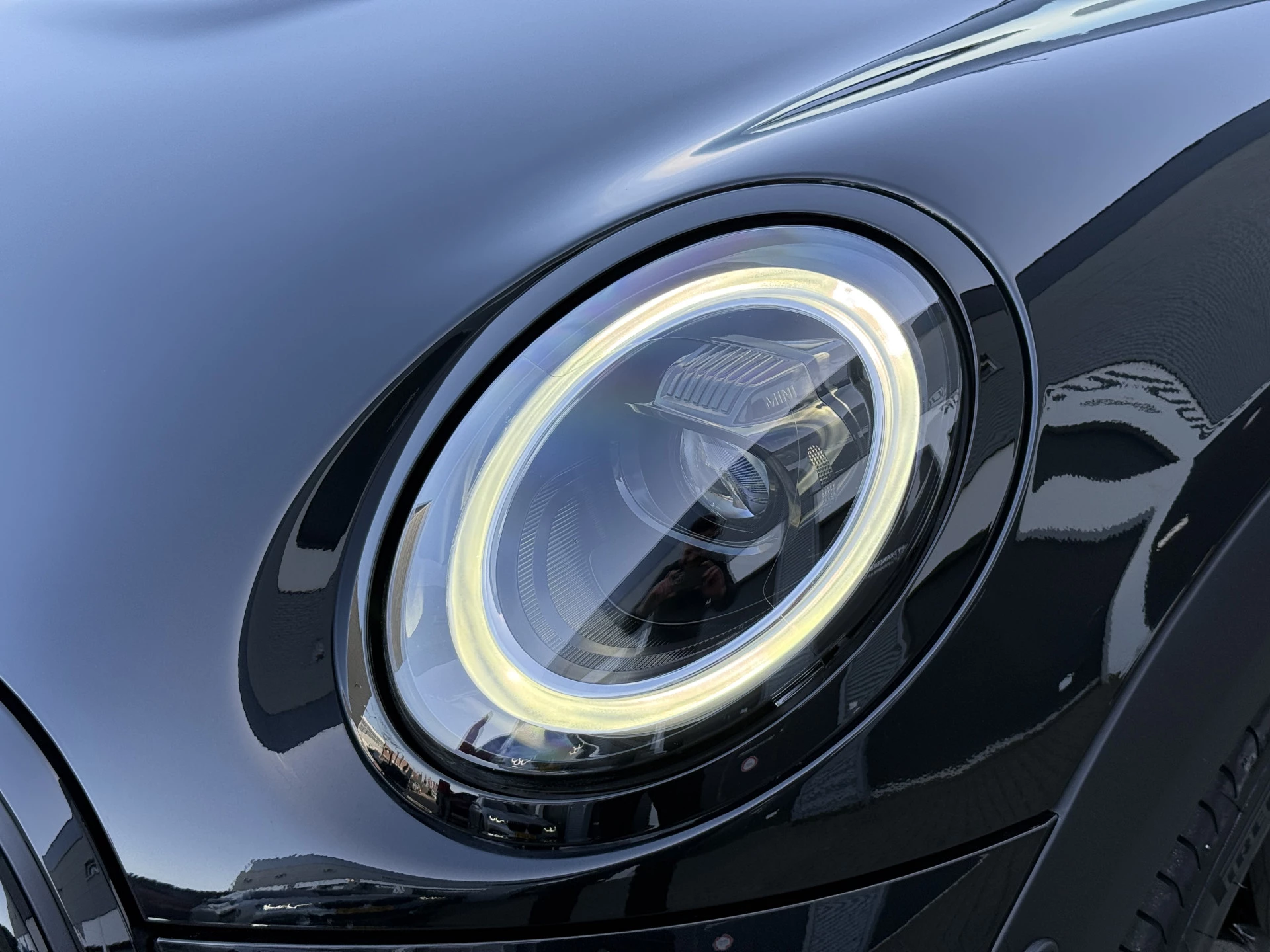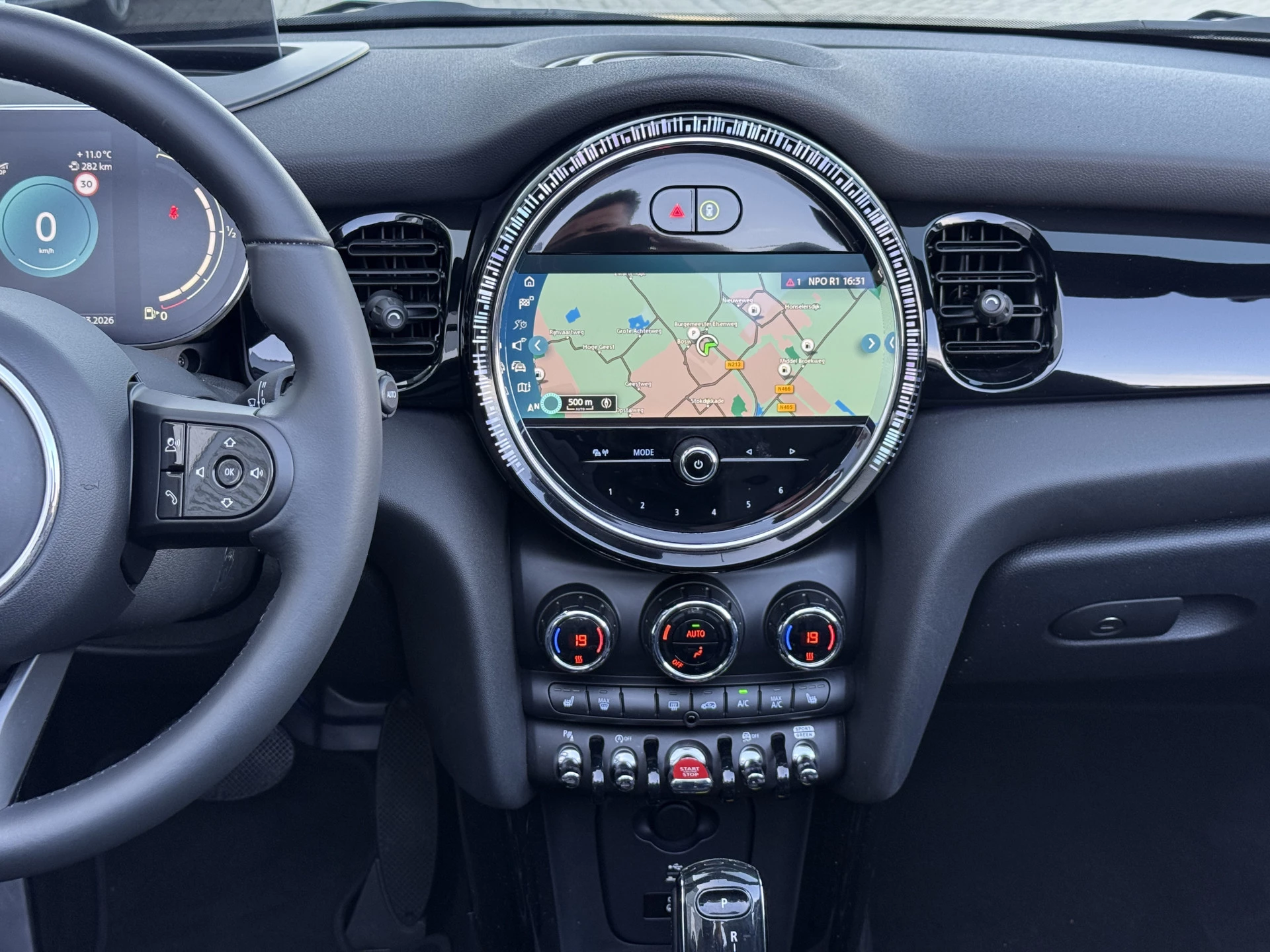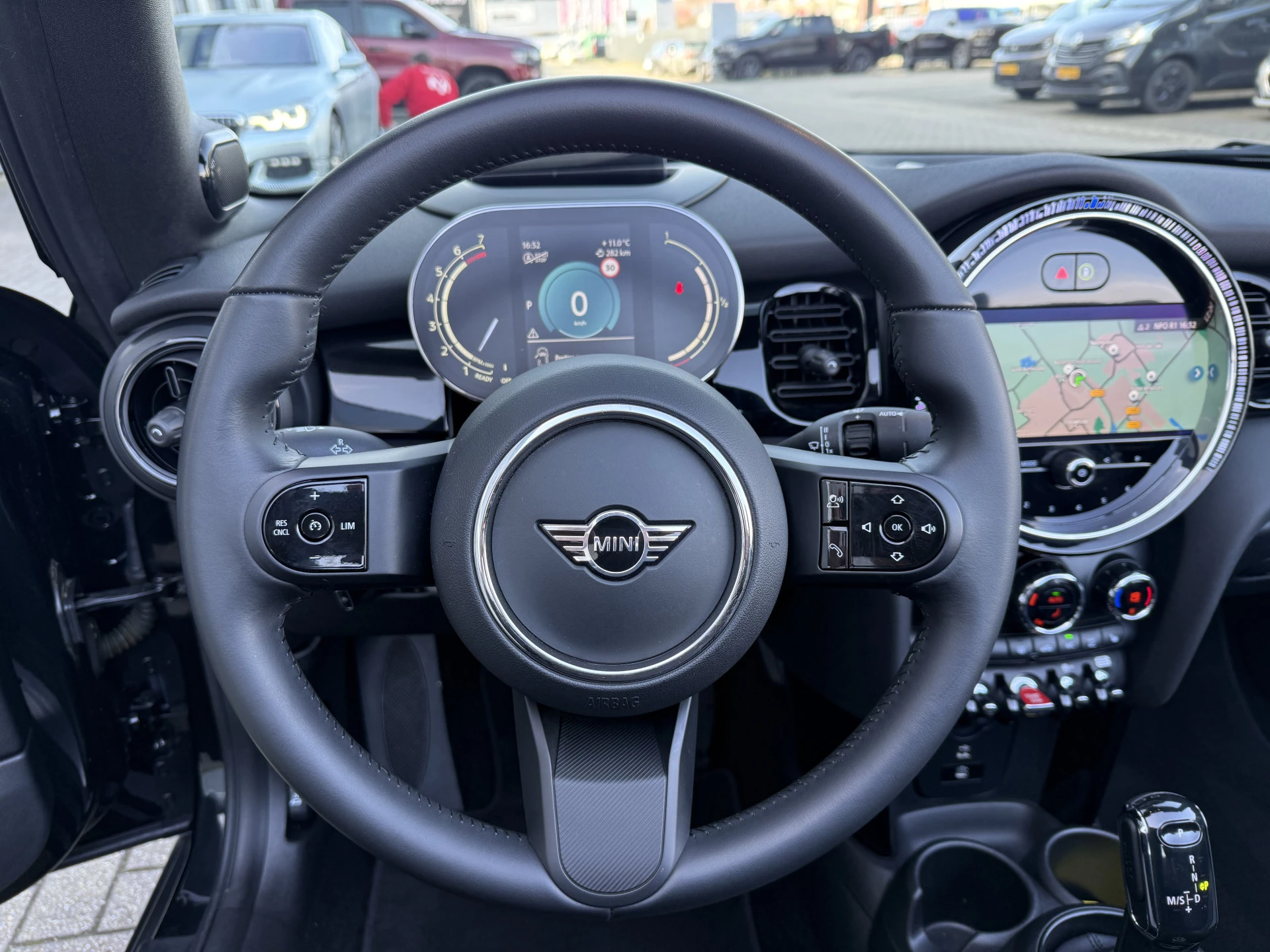 Schitterende Mini Cabrio Cooper automaat in Midnight Black metallic met Black Optic pakket en hoogglans zwarte lichtmetalen velgen met pas 9.888KM. De Mini is voorzien van veel mooie opties zoals: Achteruitrij camera, Harman Kardon Audio, lederen bekleding, sport-comfort stoelen, Navigatie, Apple Carplay, stoelverwarming, parkeersensoren, keyless entry and start, cruise control, virtuele cockpit, LED sfeer interieur verlichting, windscherm, etc..