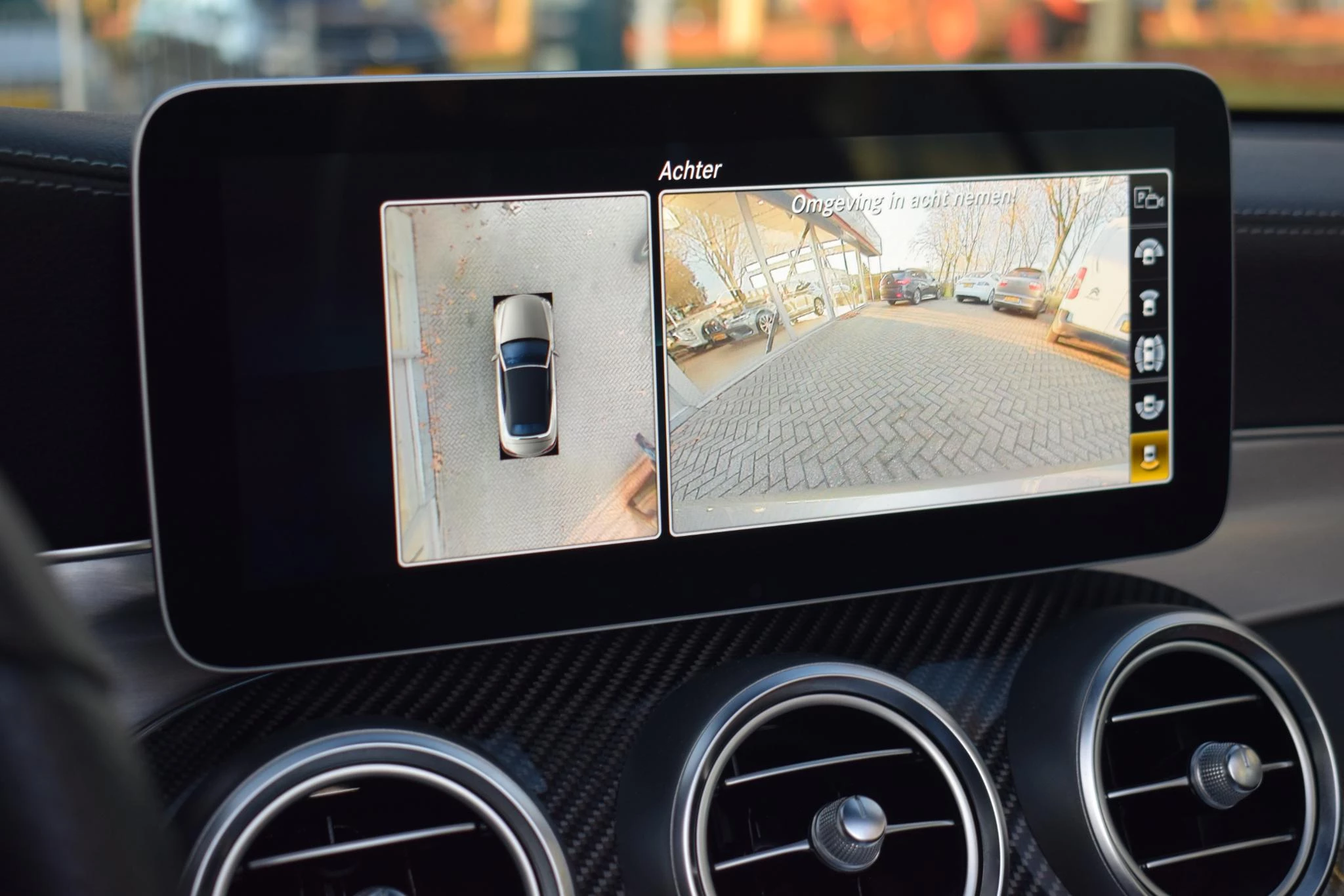 Zoals u mag verwachten van deze Mercedes-Benz C-klasse Cabrio is hij uitgerust met een reeks aan actieve veiligheidssystemen. Tijdens de rit hebt u altijd een bijrijder, want de verkeersbord-detectie leest de borden langs de weg en projecteert ze voor u op het instrumentarium. Forward collision warning helpt u om kop-staart aanrijdingen te voorkomen. In deze Mercedes-Benz vinden we verder een hill hold functie, autonoom remsysteem en bandenspanningcontrolesysteem.