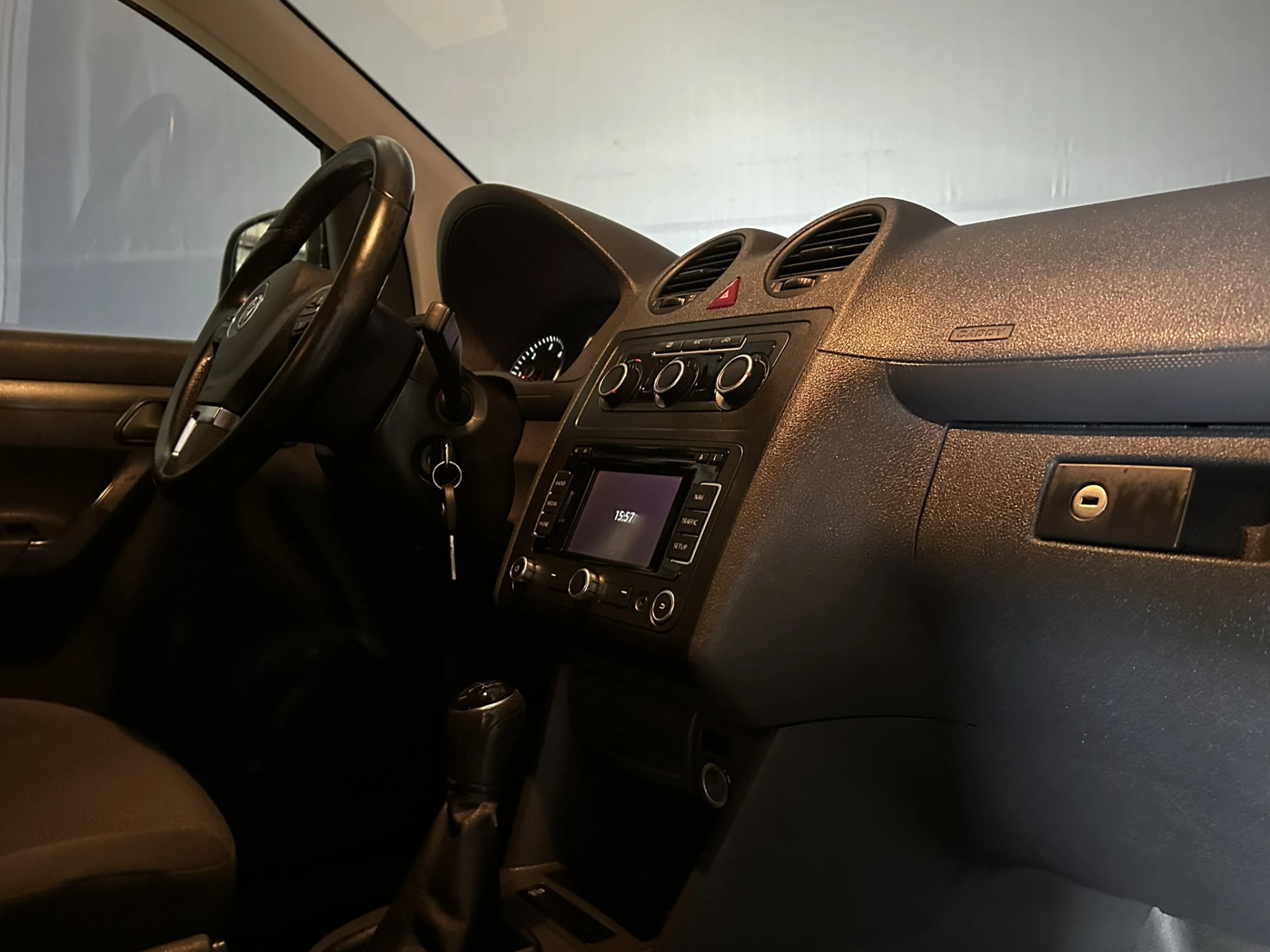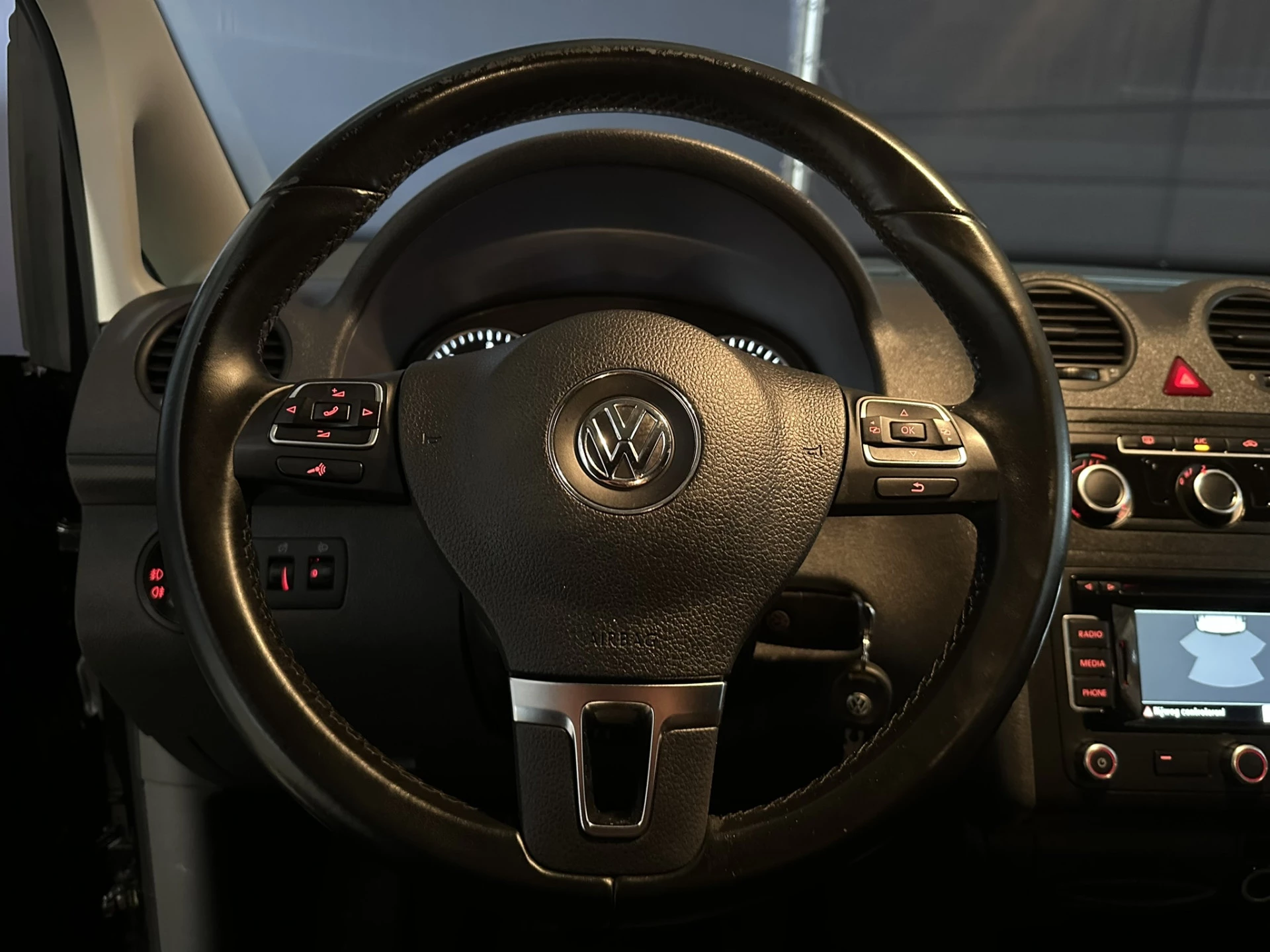 102pk sterke Volkswagen Caddy L1H1 met airconditioning en navigatie. Dealer onderhouden en uitgevoerd met cruisecontrol, lichtmetalen velgen, bumpers in de kleur, 1500kg trekhaak, parkeersensoren en bluetooth telefoonvoorbereiding.
