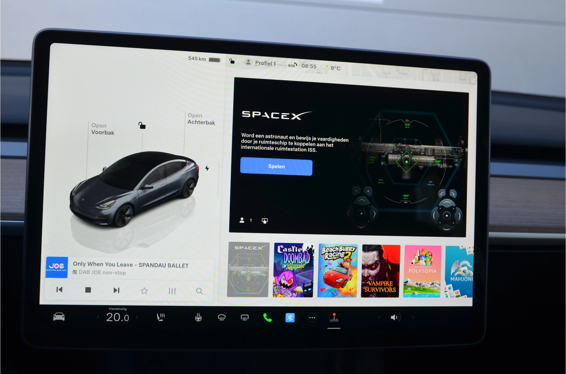Tesla App voor o.a. voorverwarmen/koelen, stand accu en automatisch openen/sluiten portieren