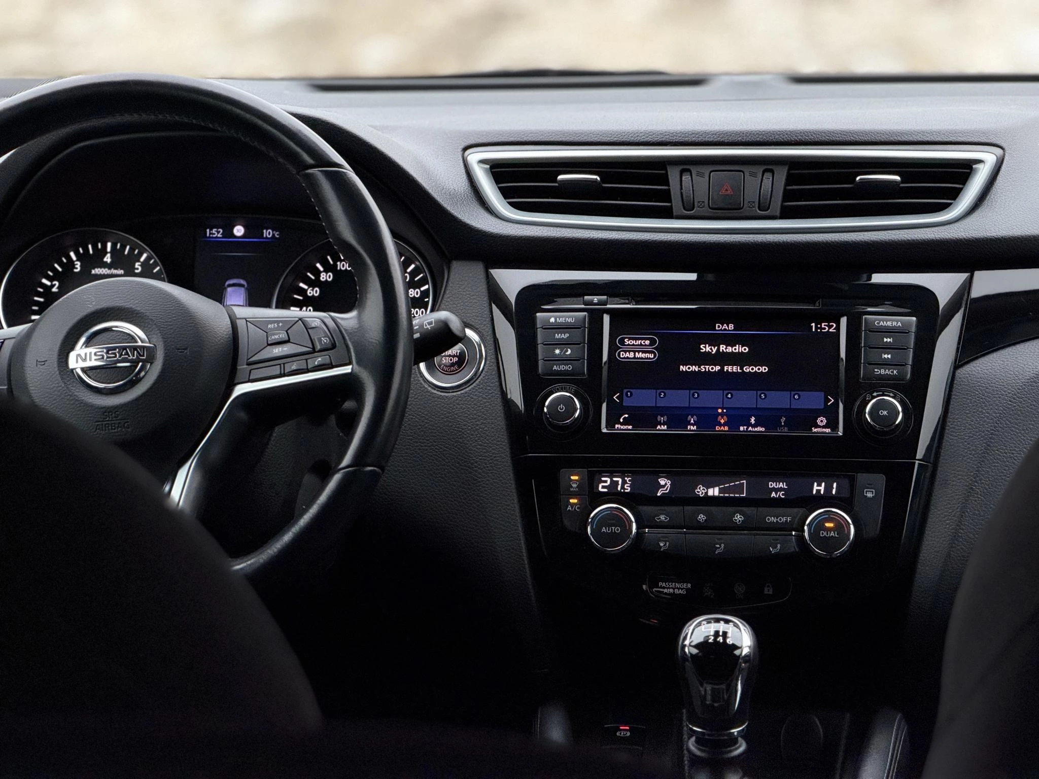 De 360 graden camera op deze auto biedt u een volledig, panoramisch zicht op de omgeving. Een goede veiligheidsvoorziening is de spraakbediening en stuurbediening voor belangrijke functies. De auto is natuurlijk voorzien van een full map navigatiesysteem en het audio-installatiesysteem biedt glasheldere geluidskwaliteit dankzij DAB-ontvangst. Dankzij automatische airconditioning is het interieur behaaglijk warm of verfrissend koel. Met de aanwezige parkeersensoren weet u altijd zeker of het past. Het luxeniveau in deze Nissan is niet alleen gericht op comfort, maar ook op uw veiligheid. Tal van sensoren helpen u om de omgeving in de gaten te houden. De automatisch inschakelbare verlichting zorgt dat automatisch de verlichting wordt ingeschakeld als het donker wordt, wat bijvoorbeeld in tunnels erg handig is. En de regensensor zet de ruitenwissers aan zonder dat u eraan hoeft te denken. De uitrusting van deze auto is met cruise control, keyless entry, automatisch dimmende binnenspiegel en lederen stuur en versnellingspook behoorlijk compleet.