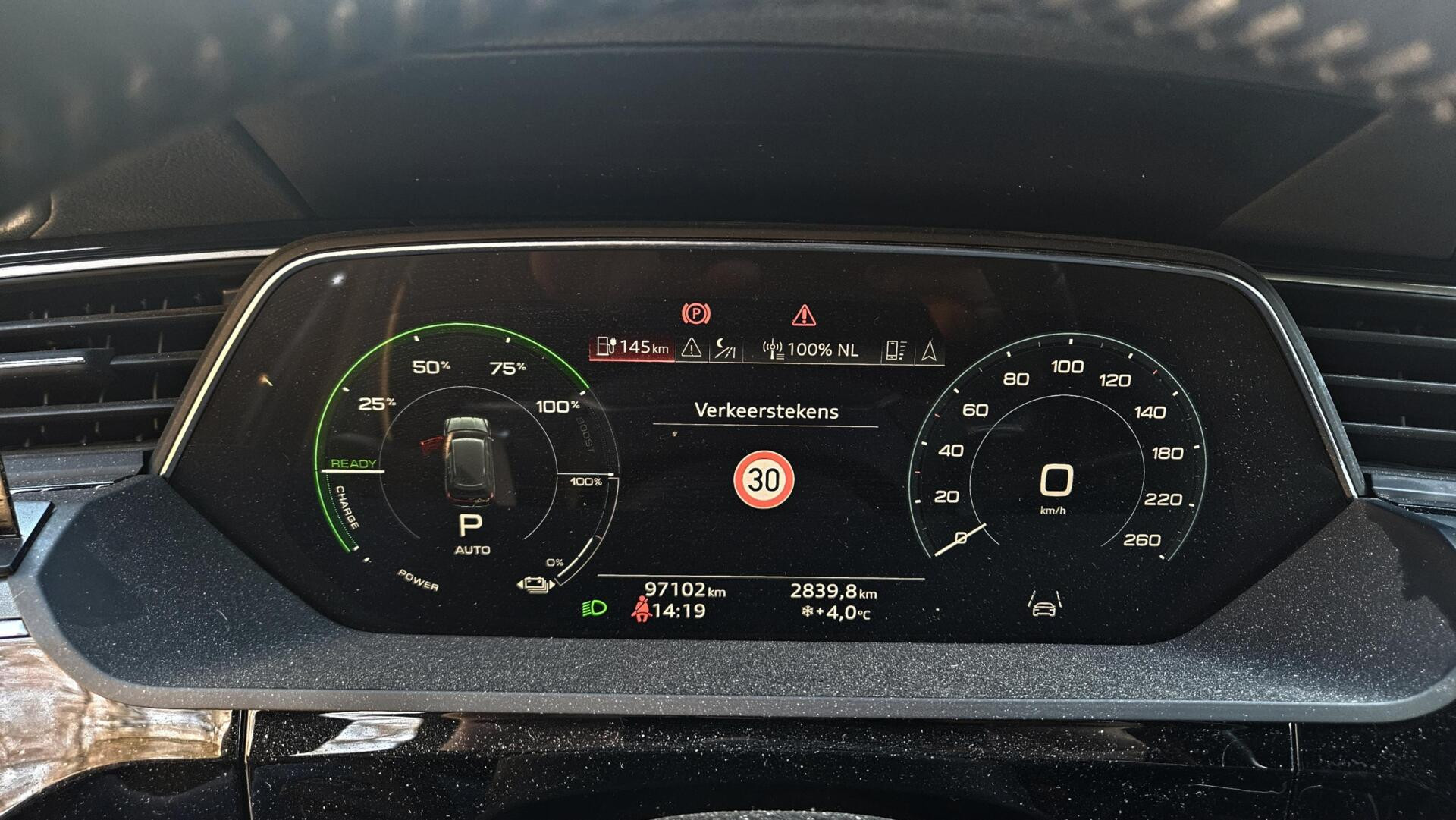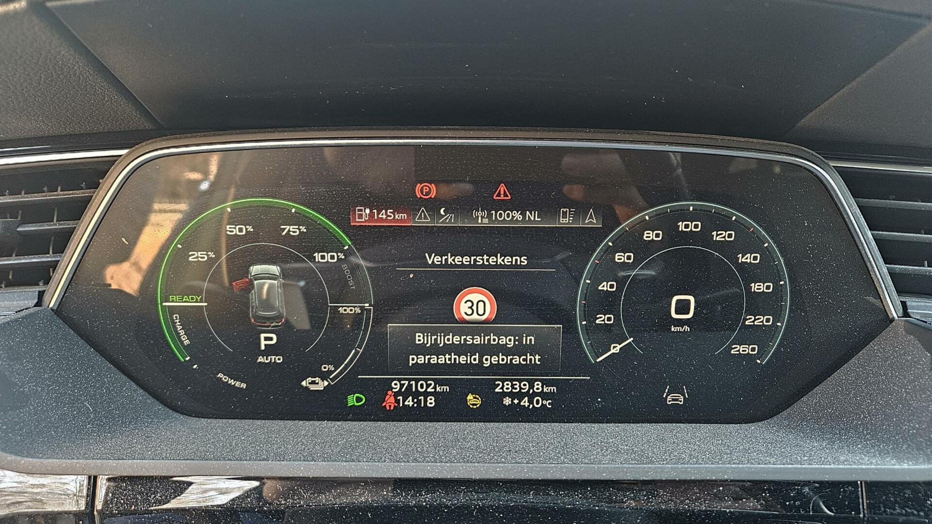 Zoals je mag verwachten van deze Audi e-tron Sportback is hij uitgerust met een reeks aan actieve veiligheidssystemen. Keep your lane? Het Lane-keeping systeem zorgt er automatisch voor. Forward collision warning waarschuwt voor een kop-staart botsing. In deze Audi vinden we verder een dodehoekdetectie, brake assist en bandenspanningcontrolesysteem.