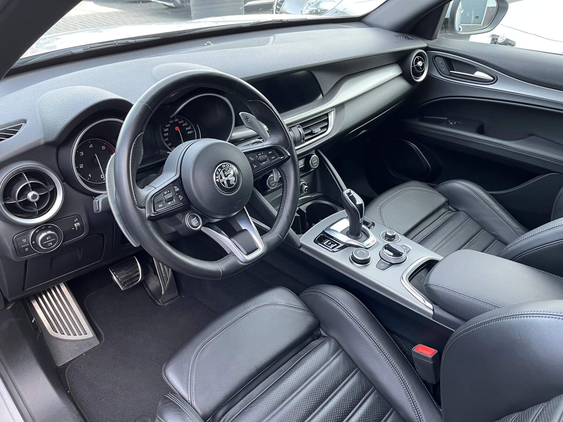 Niet alleen sportief dankzij de schakelflippers achter het stuur, maar ook luxueus uitgerust. Hieronder een overzicht van de luxe die deze Stelvio te bieden heeft:
