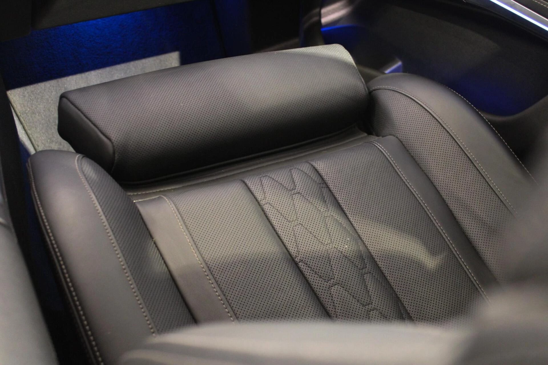 Vanbinnen is hij stijlvol afgewerkt met Individual lederen comfortstoelen met ruitstiksels en tal van andere opties: stoelverwarming voor én achter, stoelkoeling, stoelmassage, head-up display, memory-functie, een gestikt lederen dashboard, akoestisch glas, en om het helemaal af te maken: een Harman/Kardon geluidsinstallatie.