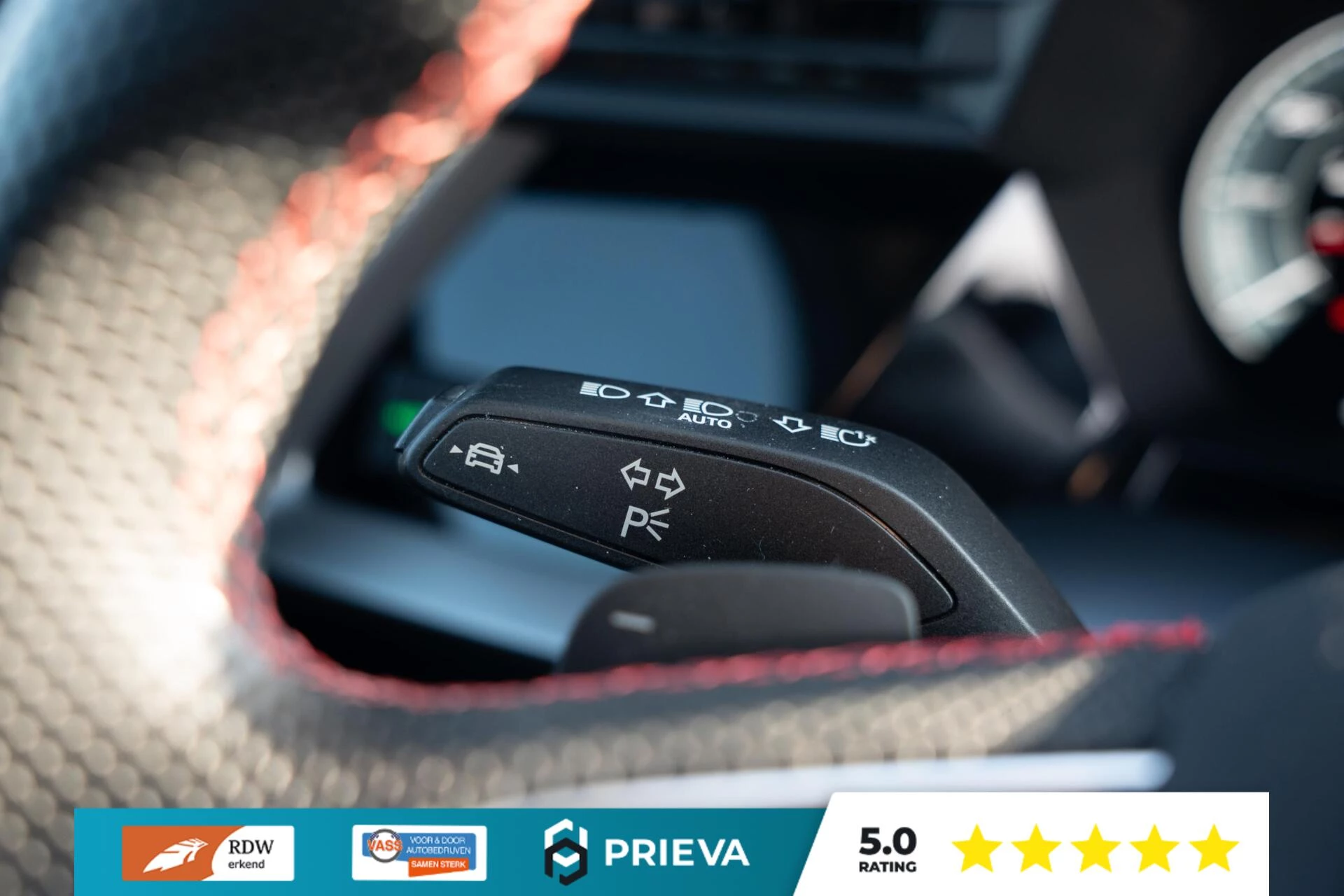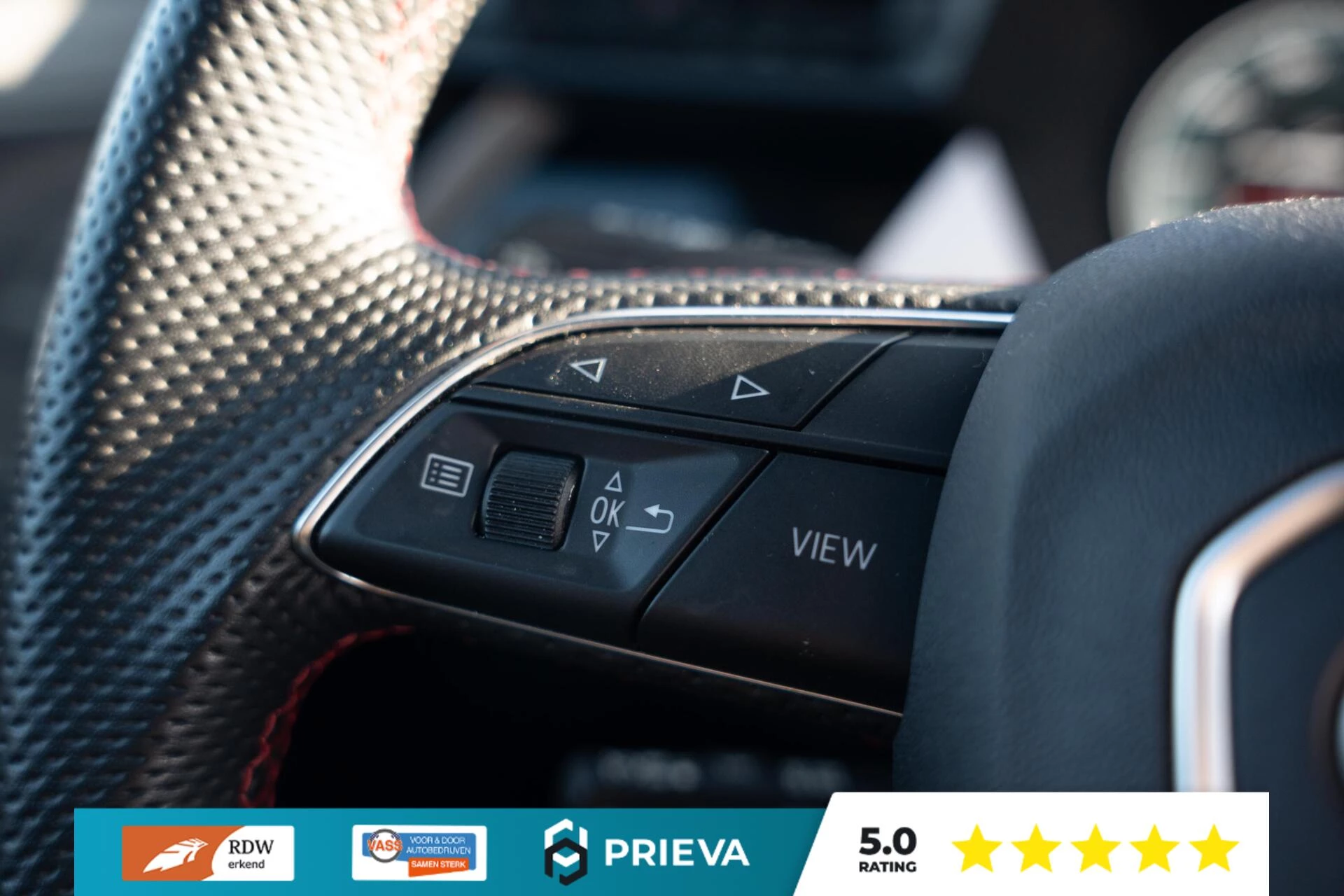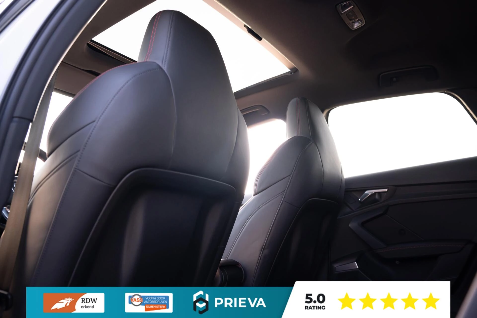 Binnenin wordt u ontvangen door de bekende RS-stoelen met uitgesproken sportieve vormgeving en perfecte zijdelingse steun. In combinatie met het volledig lederen interieur zorgen deze stoelen voor een premium en sportieve ambiance.