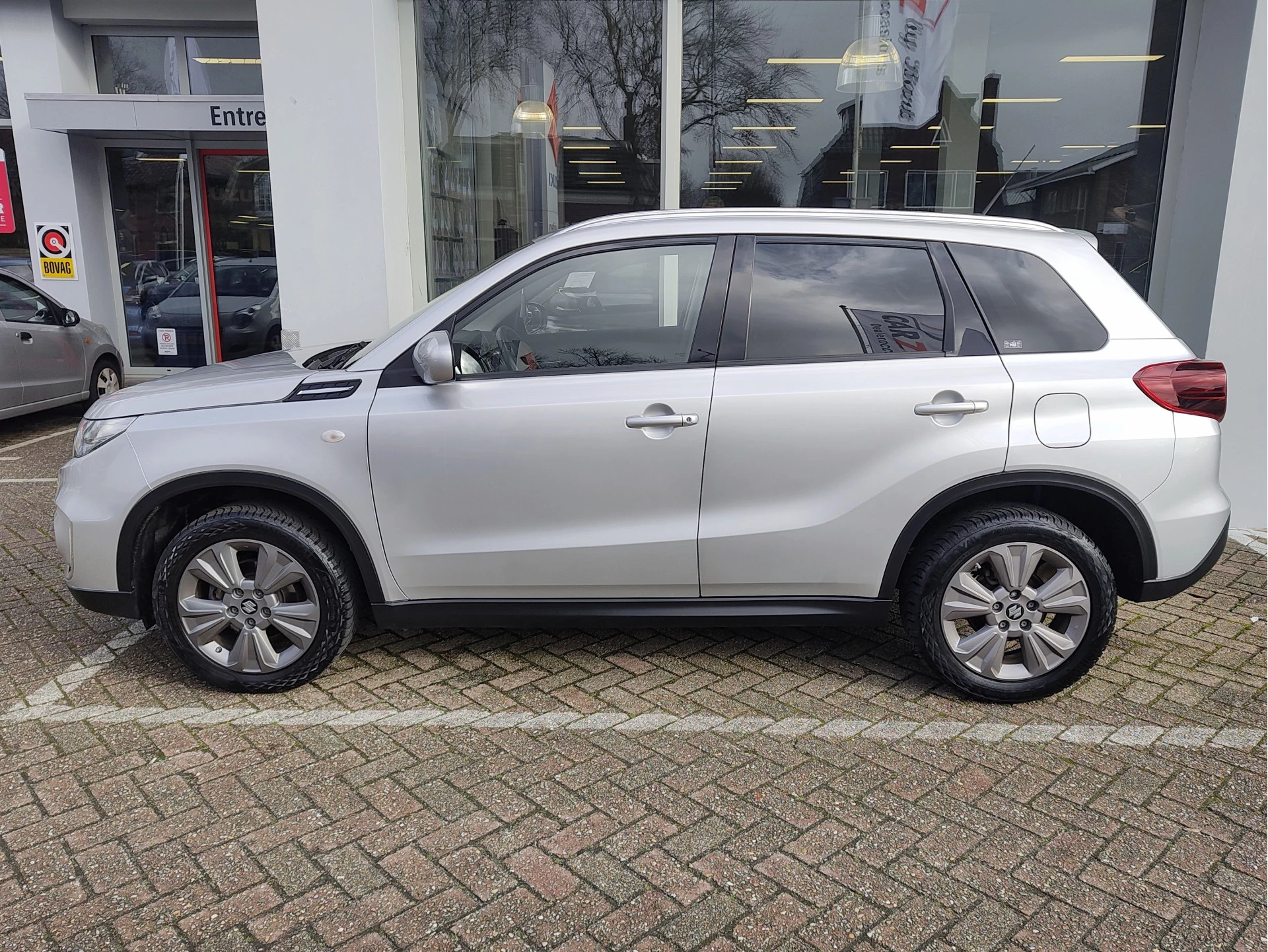 Als u onze verkoopadviseurs vraagt naar onze favoriete Vitara-kleuren, dan komt Silky Silver ongetwijfeld aan bod: wij vinden de Vitara erg chique en gestyleerd in deze mooie metallic lak! Zeer leuke en complete auto, voorzien van navigatie, een parkeercamera, adaptieve cruise control, dodehoeksensoren, stoelverwarming en nog veel meer. Goed onderhouden auto met een lage kilometerstand. De Vitara heeft een slim hybride-systeem aan boord. Wij leveren deze Vitara aan u af inclusief onderhoudsbeurt, APK, volle tank en 1 volwaardig jaar BOVAG garantie. Zonder meerprijs!