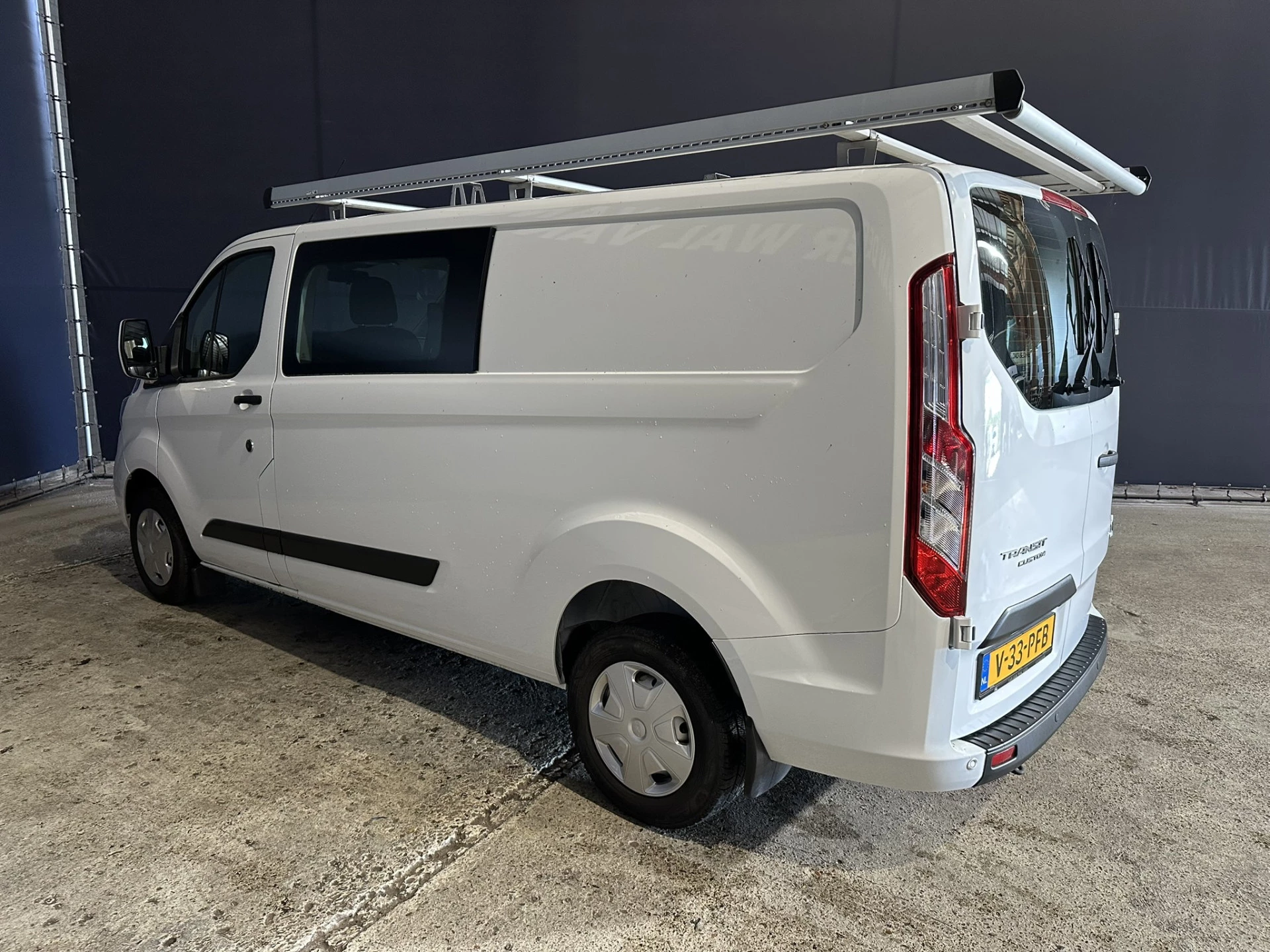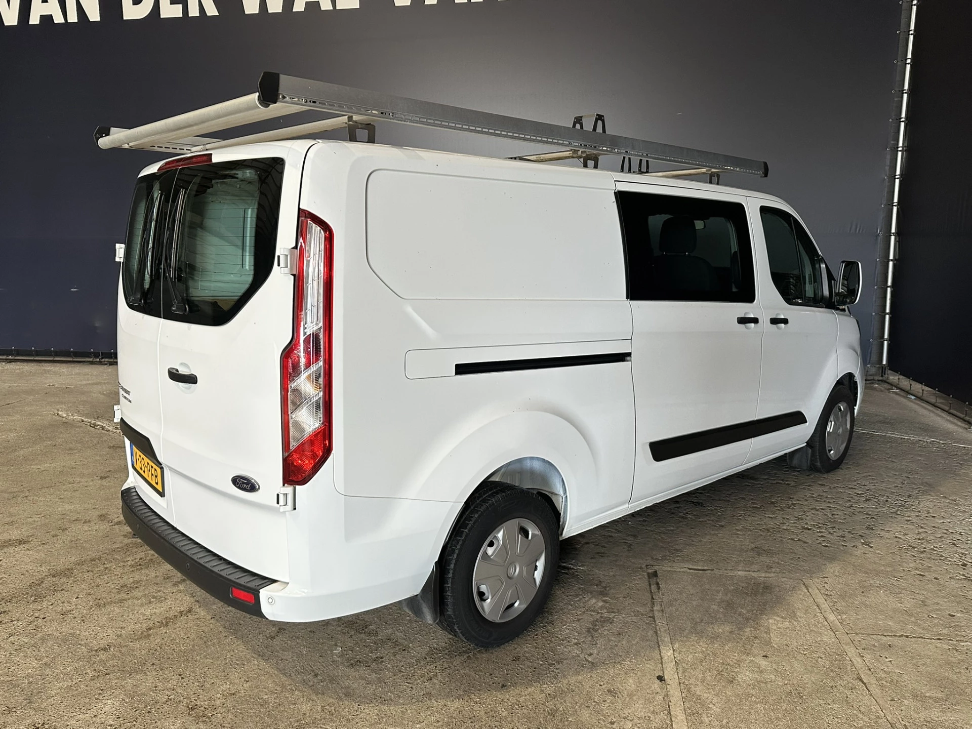 131pk sterke Ford Transit Custom L2H1 Euro6 dubbel cabine met airconditioning en 5 zitplaatsen. Dealer onderhouden en voorzien van imperiaal, LED, cruisecontrol, stoelverwarming, parkeersensoren en bluetooth telefoonvoorbereiding.