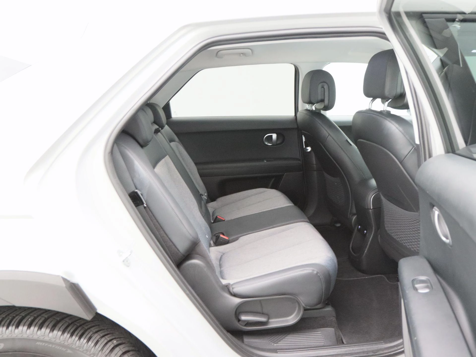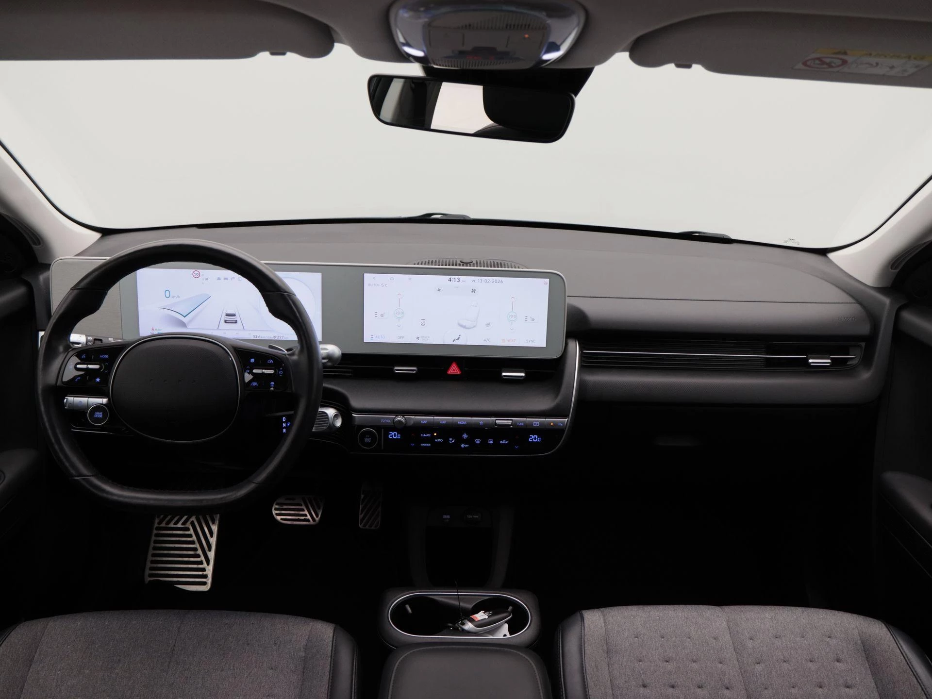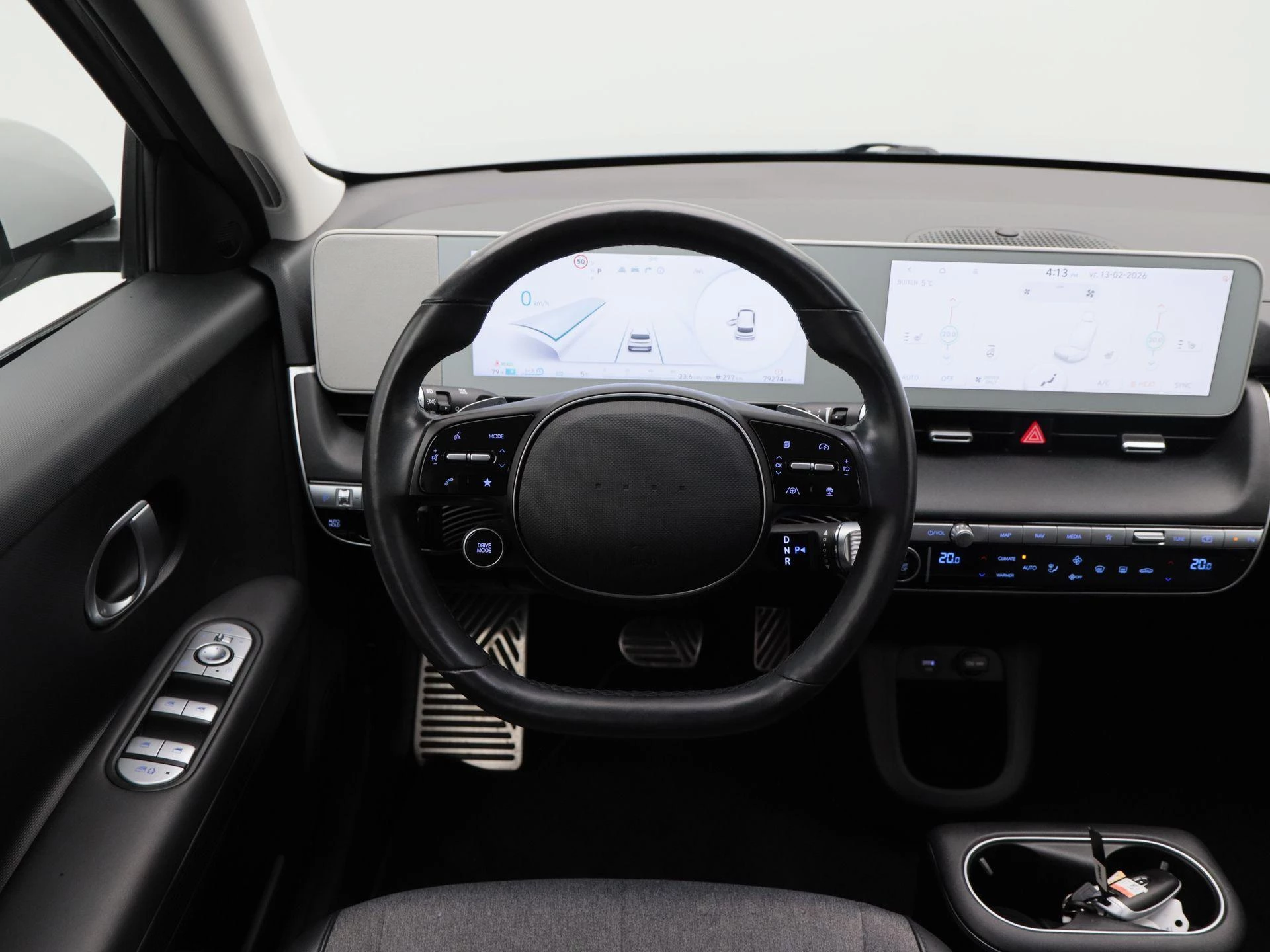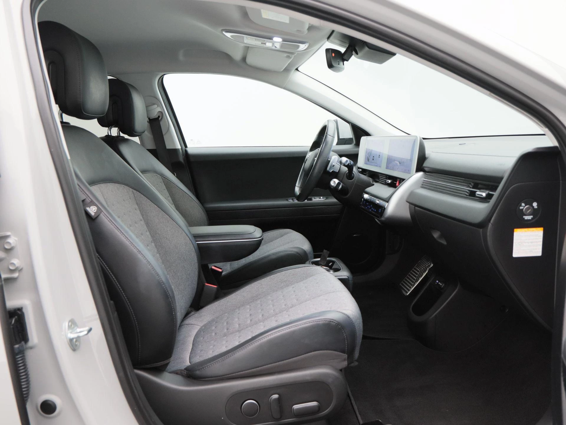 Binnenin biedt de IONIQ 5 een hoogwaardige en comfortabele omgeving. Het lederen stuurwiel ligt prettig in de hand en de elektrisch verstelbare stoelen vóór zorgen voor een optimale zitpositie. Stoelverwarming verhoogt het comfort, terwijl de Virtual Cockpit alle rij-informatie modern en overzichtelijk presenteert. Het Bose audio systeem zorgt voor een rijke en heldere geluidsbeleving. Met keyless entry, dodehoek sensoren, navigatiesysteem en Apple CarPlay is ook op technologisch vlak aan alles gedacht.