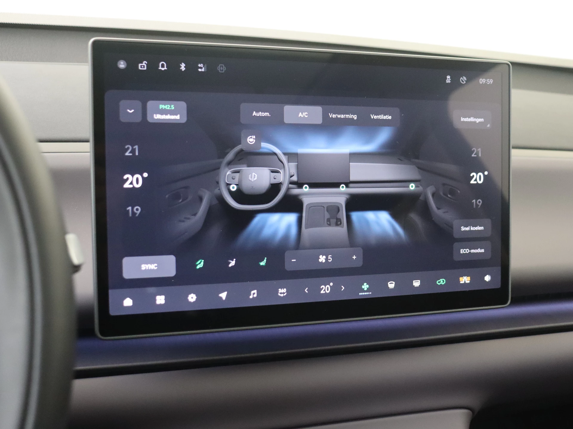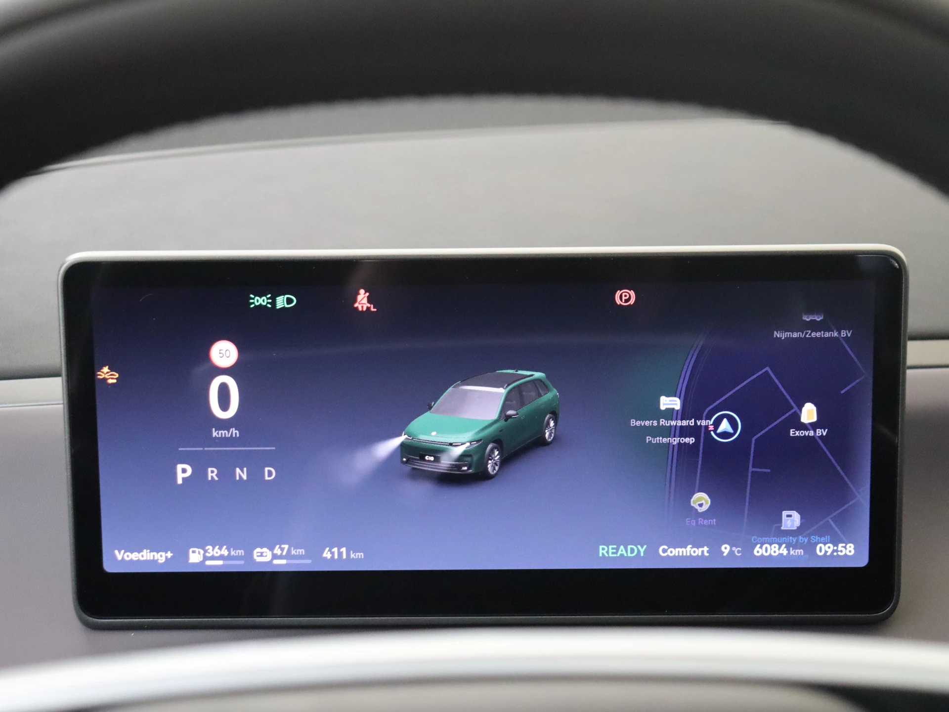 Je rit wordt comfortabel en veilig gemaakt door het digitale dashboard dat alles projecteert wat jij wenst in de digitale wereld van mobiliteit. Het gebruik van de 360 graden camera op deze auto helpt je bij het navigeren door lastige rijbanen en het drukke stadsverkeer. Adaptive cruise control is veilig en comfortabel. De snelheidsregelaar houdt automatisch afstand tot het voertuig dat voor je rijdt. De speciale app verbindt met Connected Services, die de status van vitale functies bijhoudt en waarschuwt als je bijvoorbeeld moet tanken, de bandenspanning moet controleren of olie moet bijvullen. Voor de veiligheid op de weg is het goed dat je je ogen op de weg kunt houden en jouw handen aan het stuur. Want het audio-installatiesysteem, met DAB-ontvangst, en het navigatiesysteem bedient je vanaf het stuurwiel en met spraakbediening. De uitrusting van deze Leapmotor is met WIFI-hotspot, achteropkomend verkeer waarschuwing, kruisend verkeer detectie, electronic climate control, draadloos opladen en lederen stuur behoorlijk compleet.