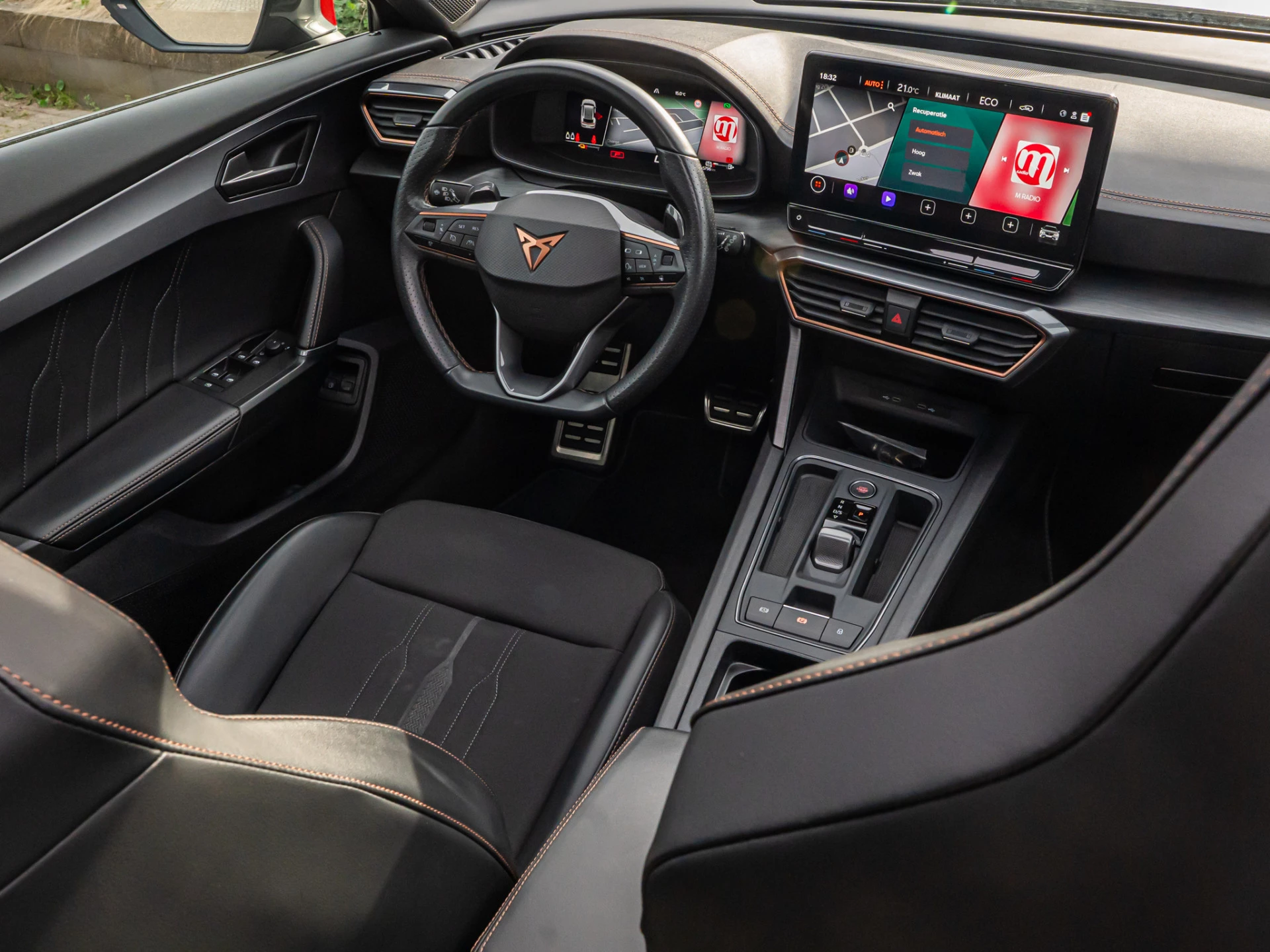 Zeer complete uitvoering met o.a: PANORAMADAK, SCHAALSTOELEN, BLACK OPTIC PAKKET, VIRTUAL DASBOARD, CAMERA ACHTER, PREMIUM AUDIO, 19 INCH ZWART / KOPER LICHT METALEN VELGEN, AUTOMATISCHE AIRCO, HALF LEDEREN BEKLEDING, LED VERLICHTING, ADAPTIEVE CRUISE CONTROL, LANE ASSIST, FRONT ASSIST, AMBIENTE VERLICHTING, ELEK ACHTERKLEP NAVIGATIE, DOORLOCK, ADAPTIEF SPORTONDERSTEL, DAB, PARKEERSENSOREN VOOR EN ACHTER, APPLE CARPLAY, , ZWARTE HEMEL, SPORTSTOELEN, ELEK. RAMEN, ELEK. SPIEGELS + INKLAPBAAR, ISOFIX, ETC. CUPRA-DEALER-ONDERHOUDEN!! En nog veel meer.