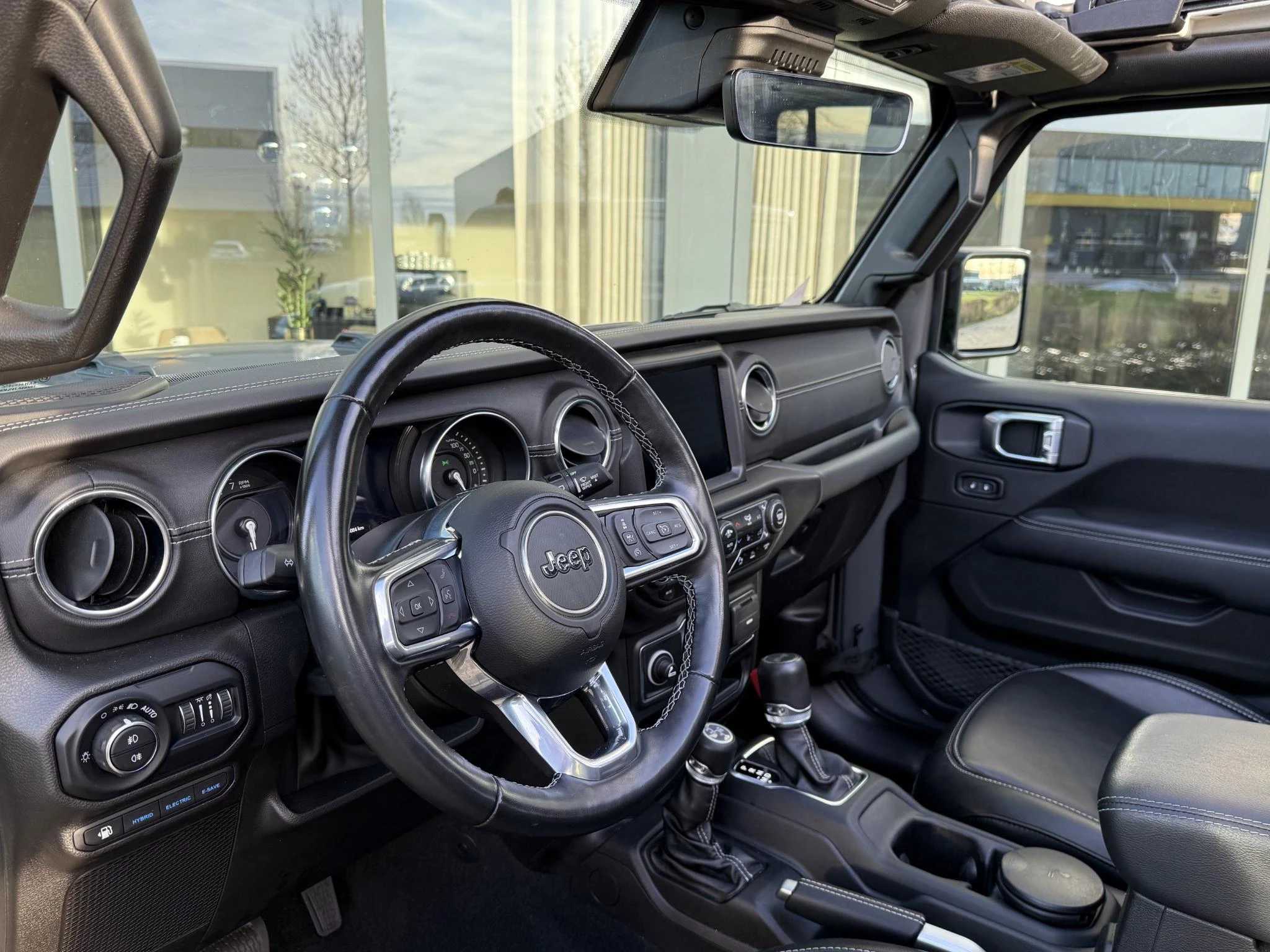 In absolute nieuwstaat verkerende en van eerste eigenaar afkomstige Jeep Wrangler. 4xE Plug in Hybride met open sky panoramavouwdak, afneembare trekhaak, stuurwielverwarming, stoelverwarming, navigatie, parkeercamera, originele hoogglans zwarte Jeep velgen, volledig lederen bekleding, LED verlichting, key less entry & go, incl laadkabel, 2 x sleutel, alarm systeem, etc. etc. TOPSTAAT!