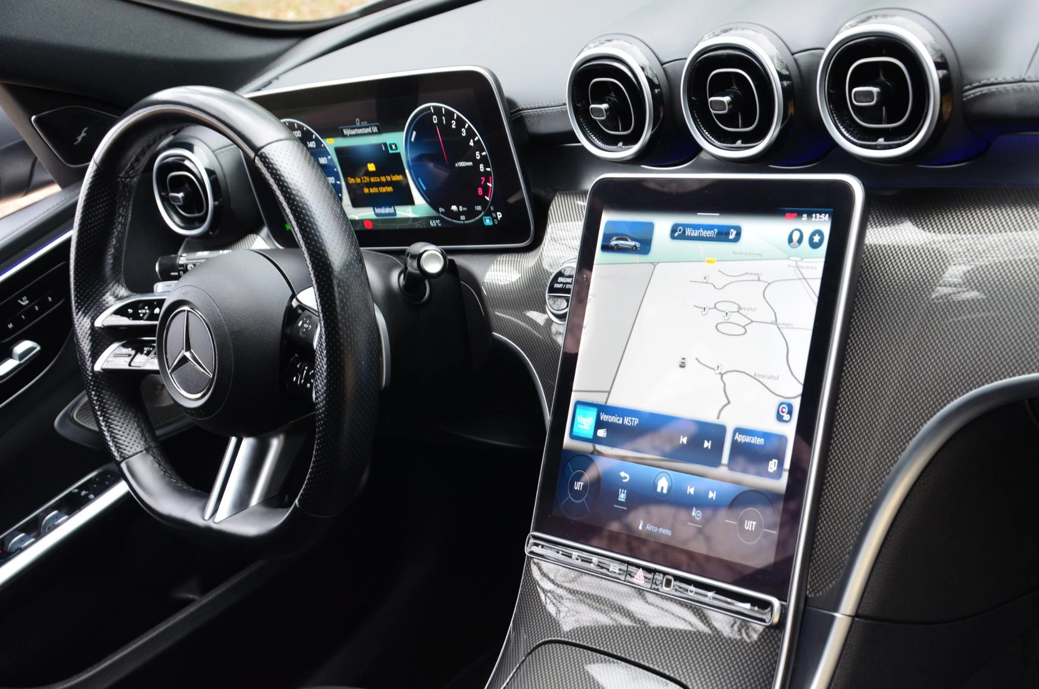 In de Mercedes-Benz C-klasse Estate heeft uw veiligheid en die van uw omgeving prioriteit. Verkeersborddetectie herkent tijdelijke en permanente verkeersborden langs en boven de weg. Het Lane-keeping systeem let constant op en waarschuwt of corrigeert als u onoplettend over de lijnen van de rijstrook gaat. Forward collision warning waarschuwt bij een dreigende aanrijding met een voorligger. De veiligheid van deze auto wordt verder verhoogd door dodehoekdetectie, brake assist en bandenspanningcontrolesysteem.
