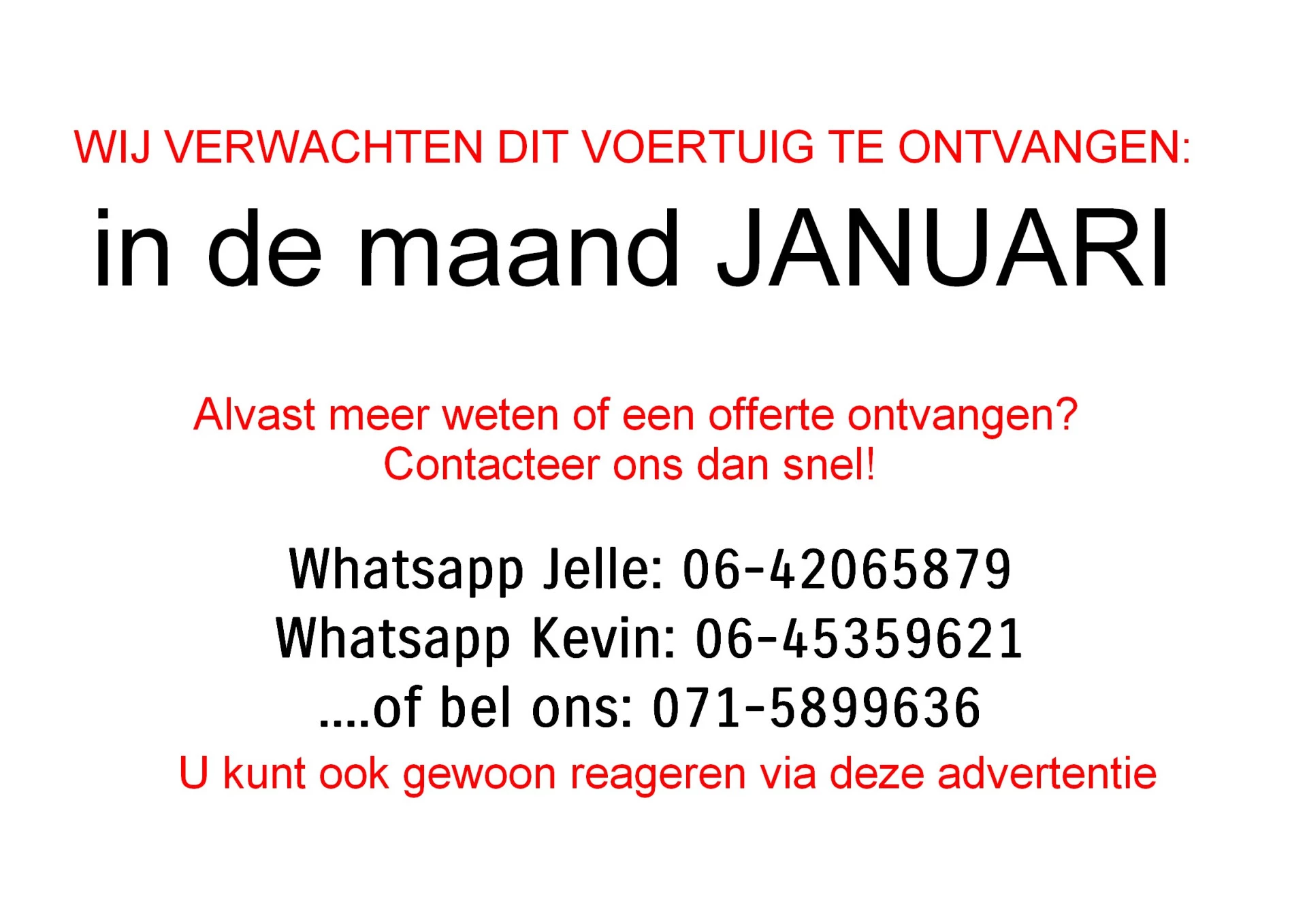 LET OP! Deze auto is nog niet aanwezig. Wij verwachten dit voertuig in januari binnen te krijgen. Wilt u niet te laat zijn en alvast contact met ons over de auto? Stuur ons dan een bericht! We helpen u graag verder.