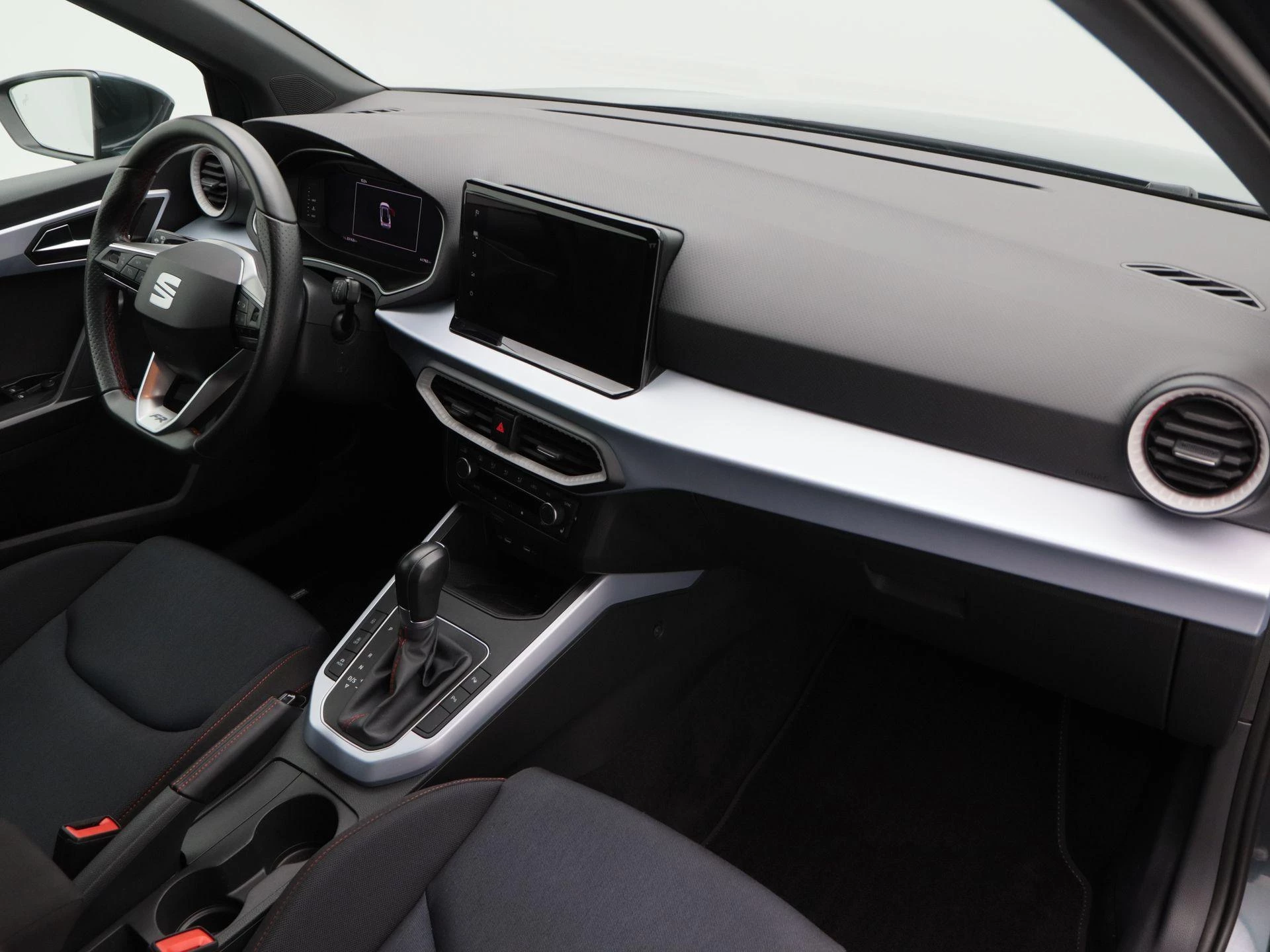 Binnenin draait alles om beleving. De sportstoelen in zwart stof, het lederen sportstuur, de digitaal cockpit en de hoogwaardige afwerking zorgen voor een moderne en energieke sfeer. De stoelverwarming, climate control, keyless entry & start en Apple CarPlay-integratie verhogen het comfortniveau, terwijl de achteruitrijcamera en parkeersensoren het manoeuvreren eenvoudig maken.