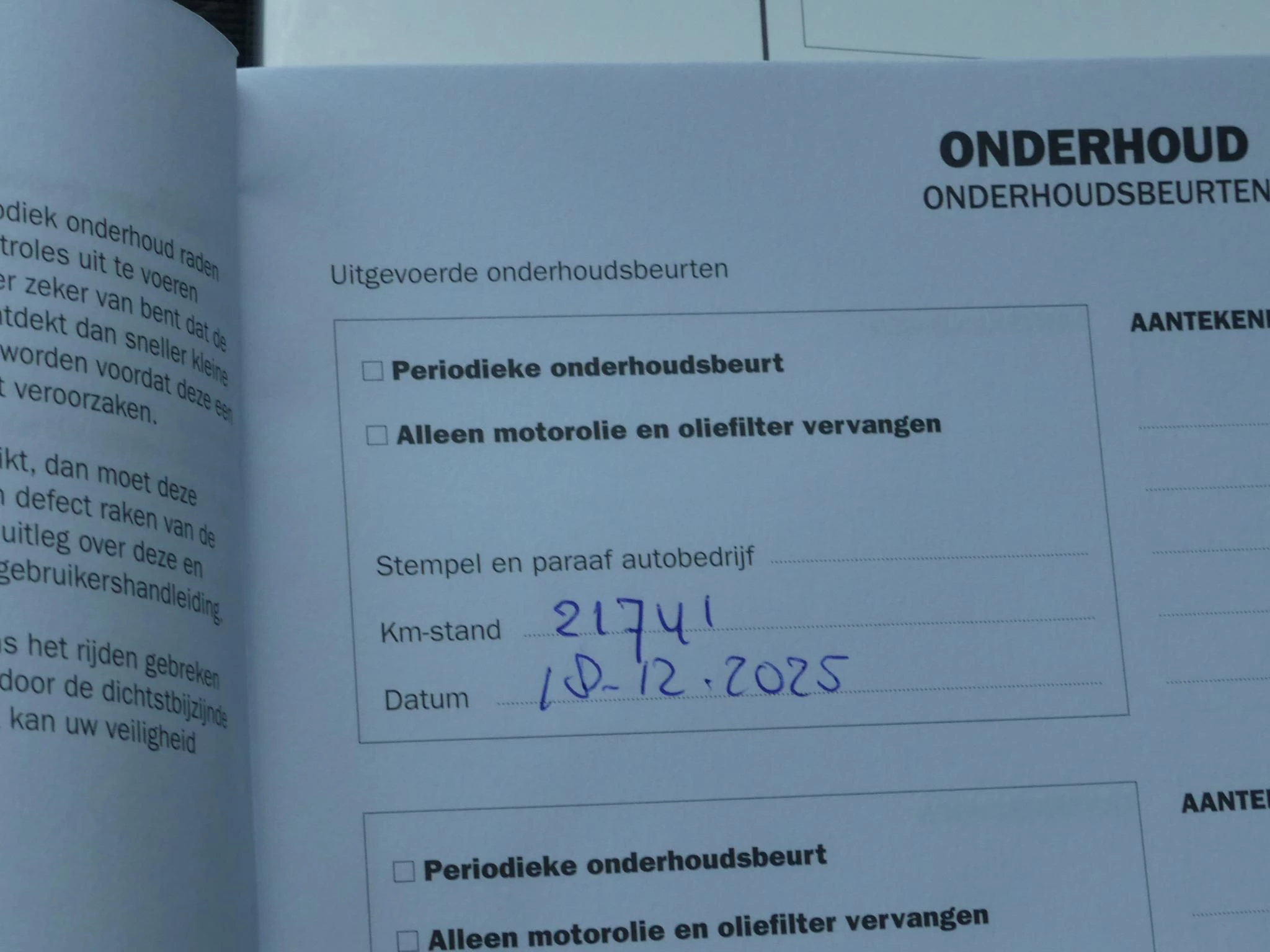 - Onderhoudsbeurt volgens fabrieksvoorschriften.