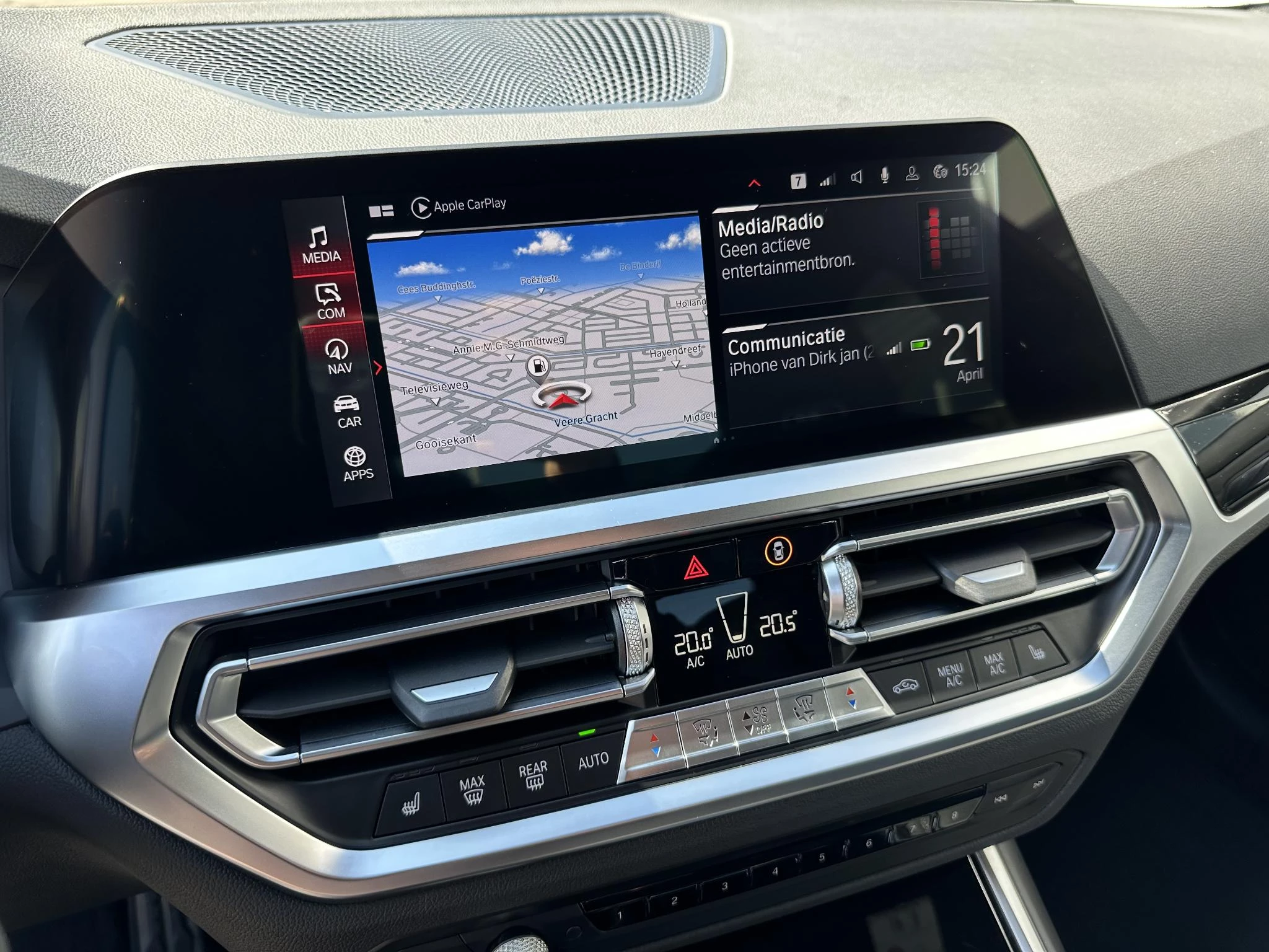 Het eigentijdse interieur wordt natuurlijk helemaal volmaakt met het digitale dashboard. Spraakbediening verhoogt de veiligheid en het gebruiksgemak. De auto luistert naar uw instructies en volgt ze op. Dankzij Connected Services weet u precies waar uw auto geparkeerd staat. Ook andere functies, zoals bandenspanning en brandstofniveau, zijn via de app altijd onder handbereik. Nooit meer de weg kwijt: daarvoor zorgt het onboard navigatiesysteem met harde schijf. Ook over uw schouder ziet u onderweg niet alles wat er aan de achterzijde gebeurt. Daarom heeft deze BMW 3-serie een achteropkomend verkeer waarschuwing. Wat u ook in deze auto kunt vinden zijn electronic climate control, sportstuur met schakelpaddels, DAB ontvangst, parkeersensoren achter, regensensor en cruise control.