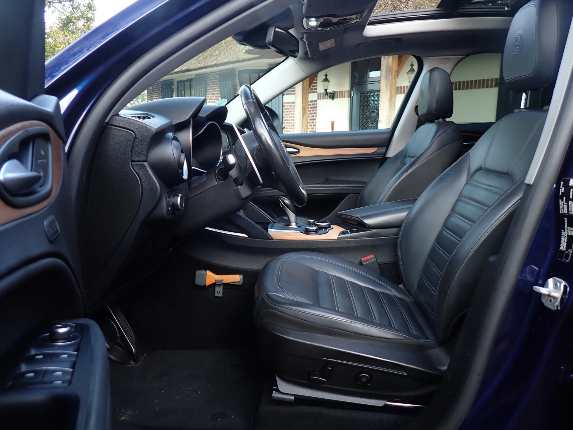 Luxe stuurwiel met 'Pieno Fiore' leder en stiksels in zwart