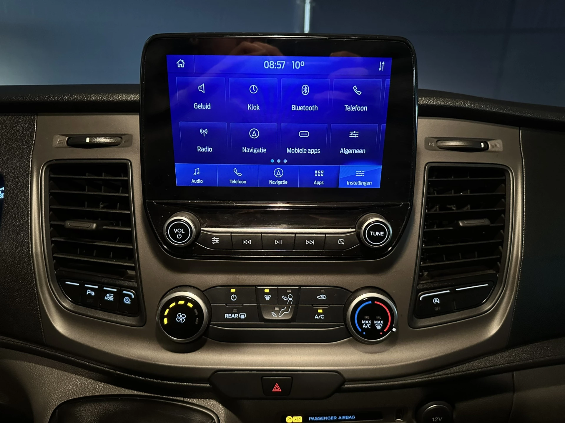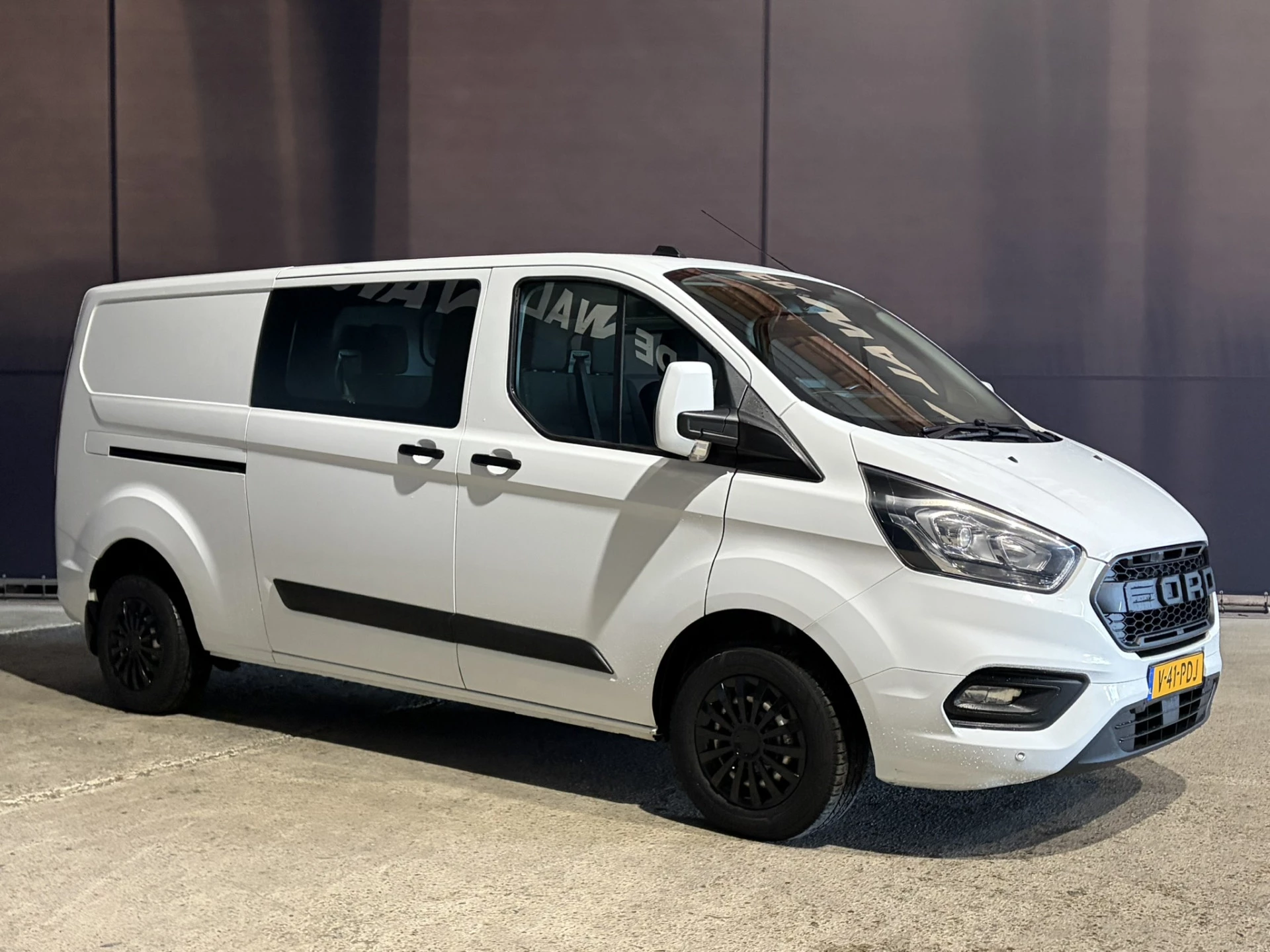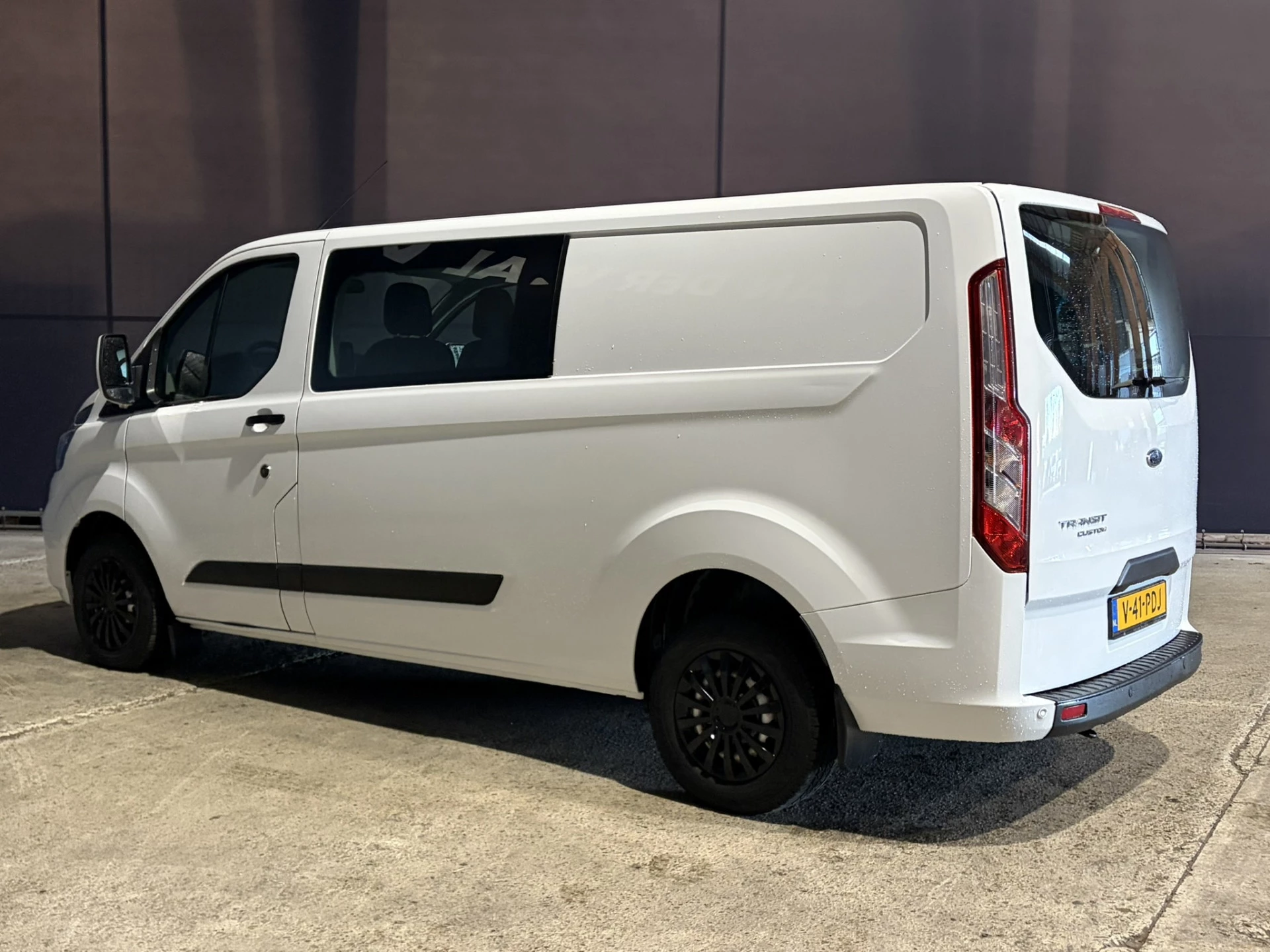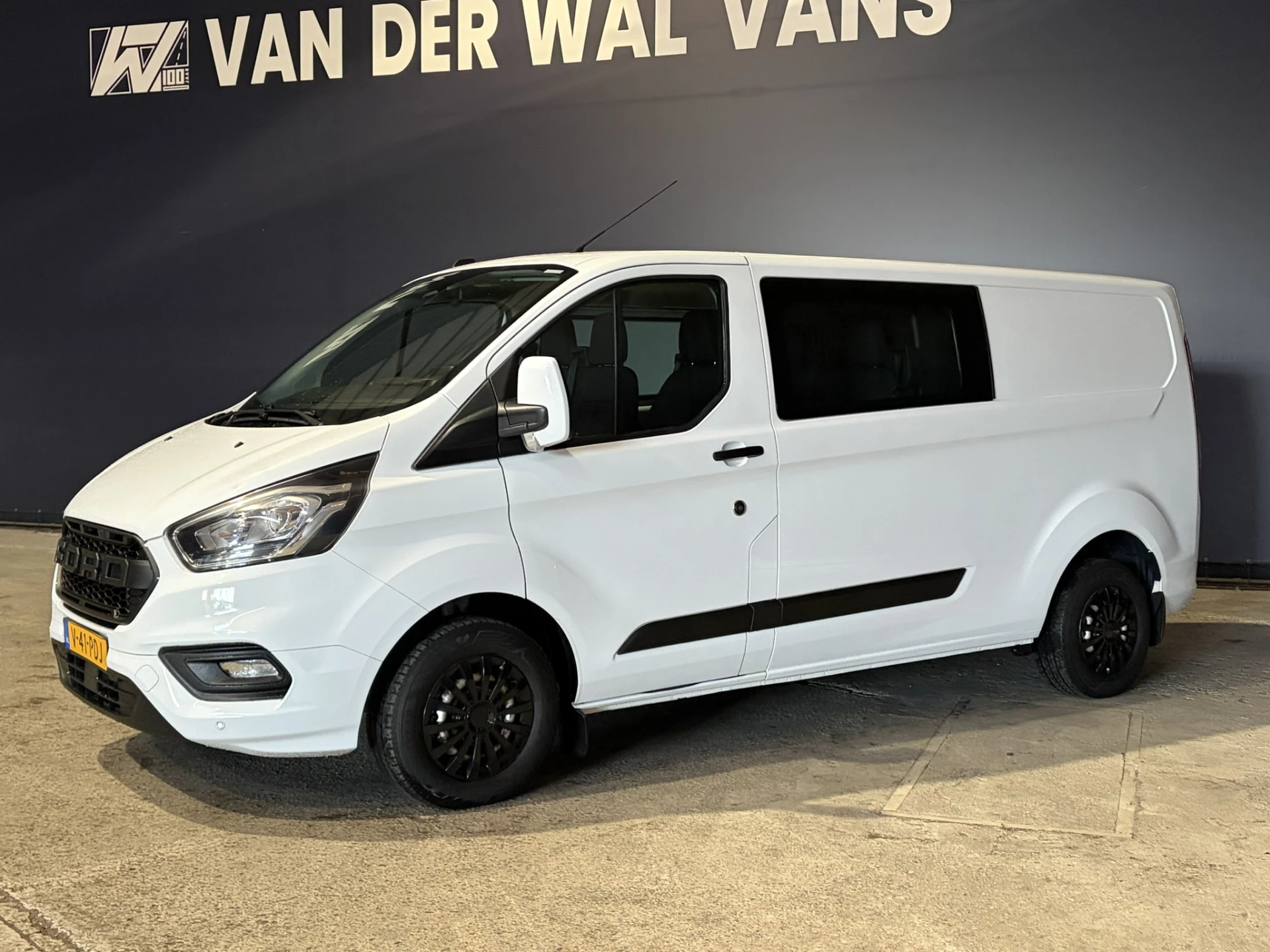 131pk sterke Ford Transit Custom L2H1 Euro6 dubbel cabine met airconditioning, 6 zitplaatsen en navigatie. Dealer onderhouden en voorzien van LED, Apple Carplay, Android Auto, cruisecontrol, parkeersensoren, achterklep, 2800kg trekvermogen en bluetooth telefoonvoorbereiding.
