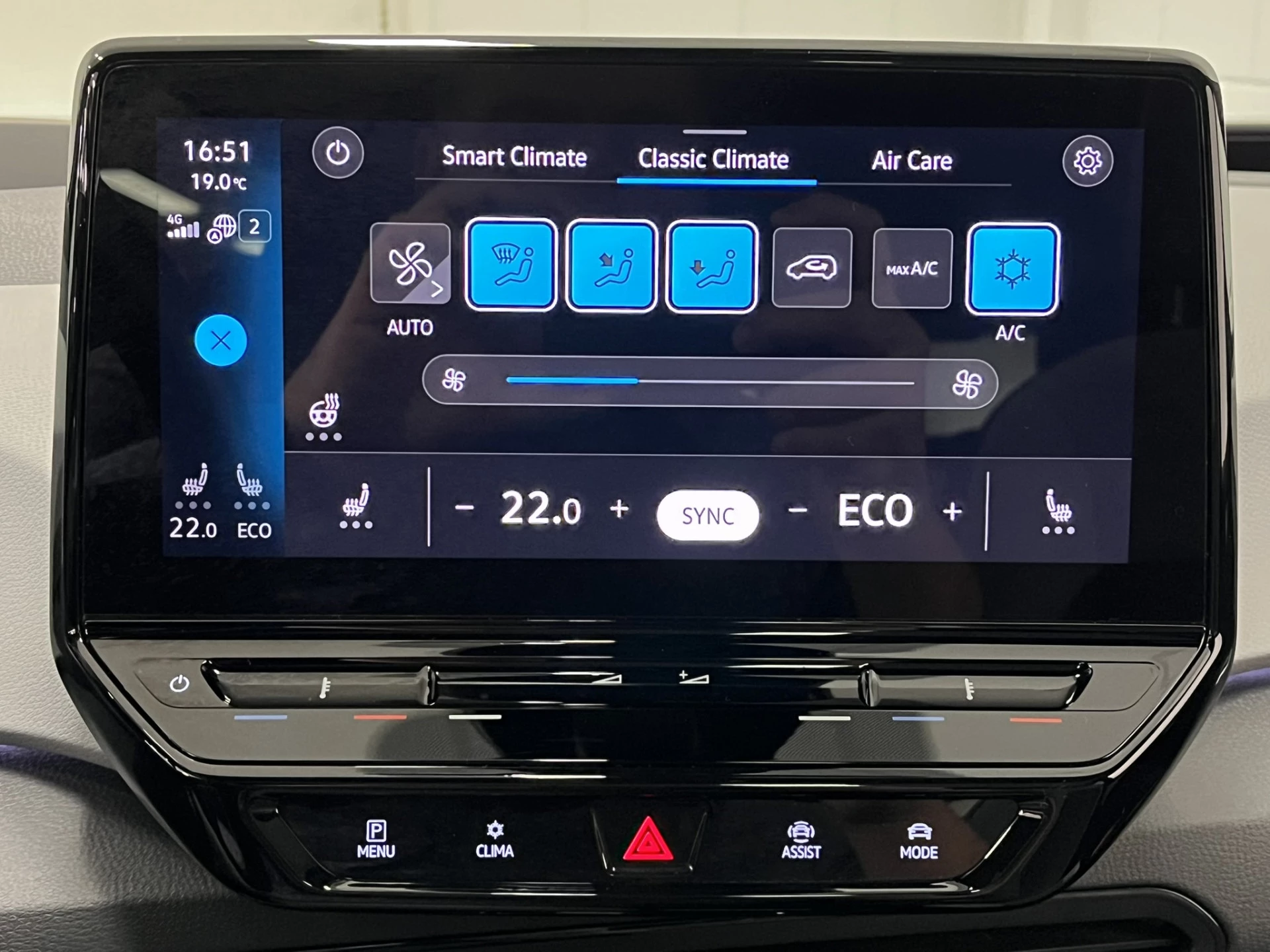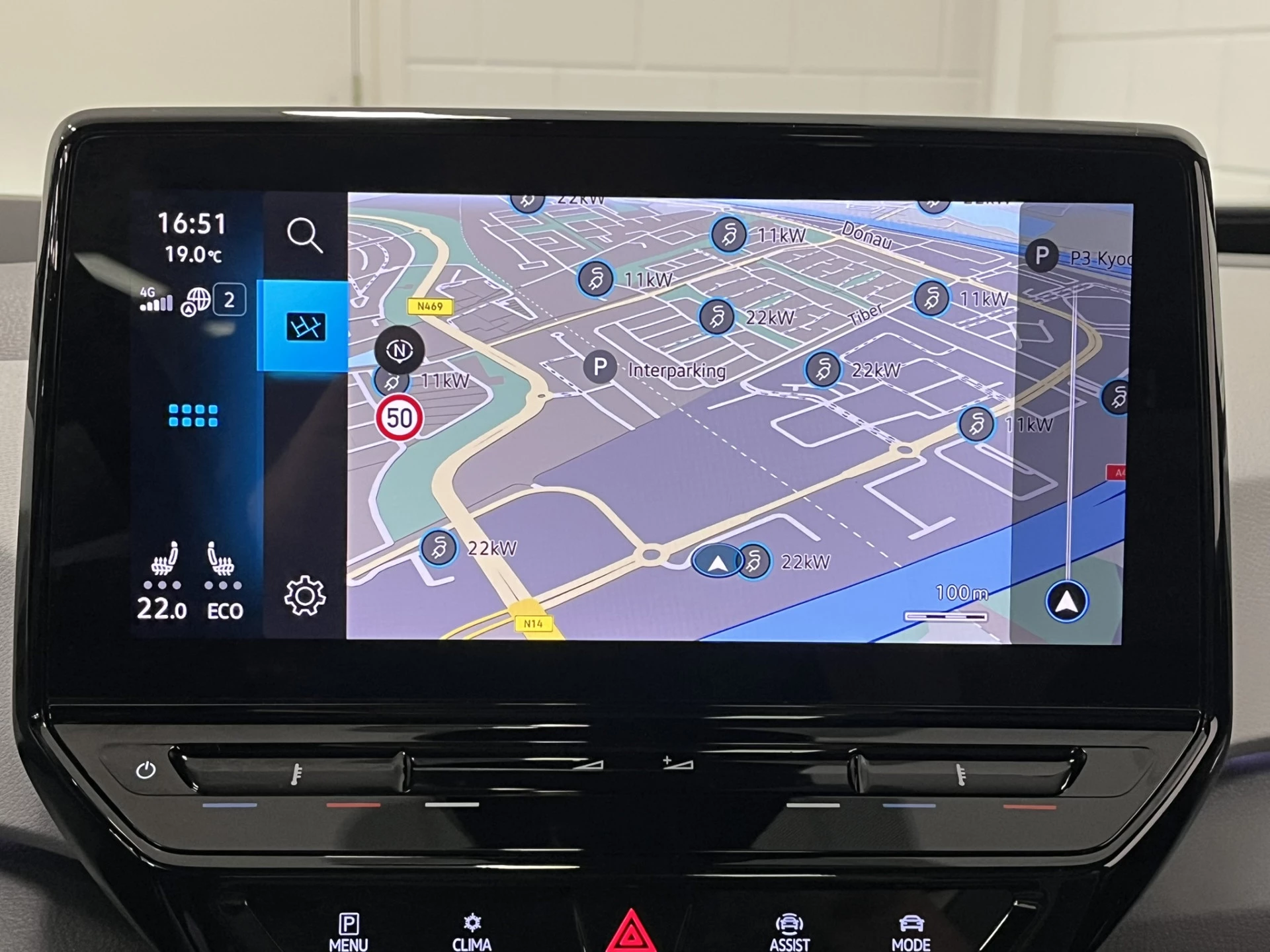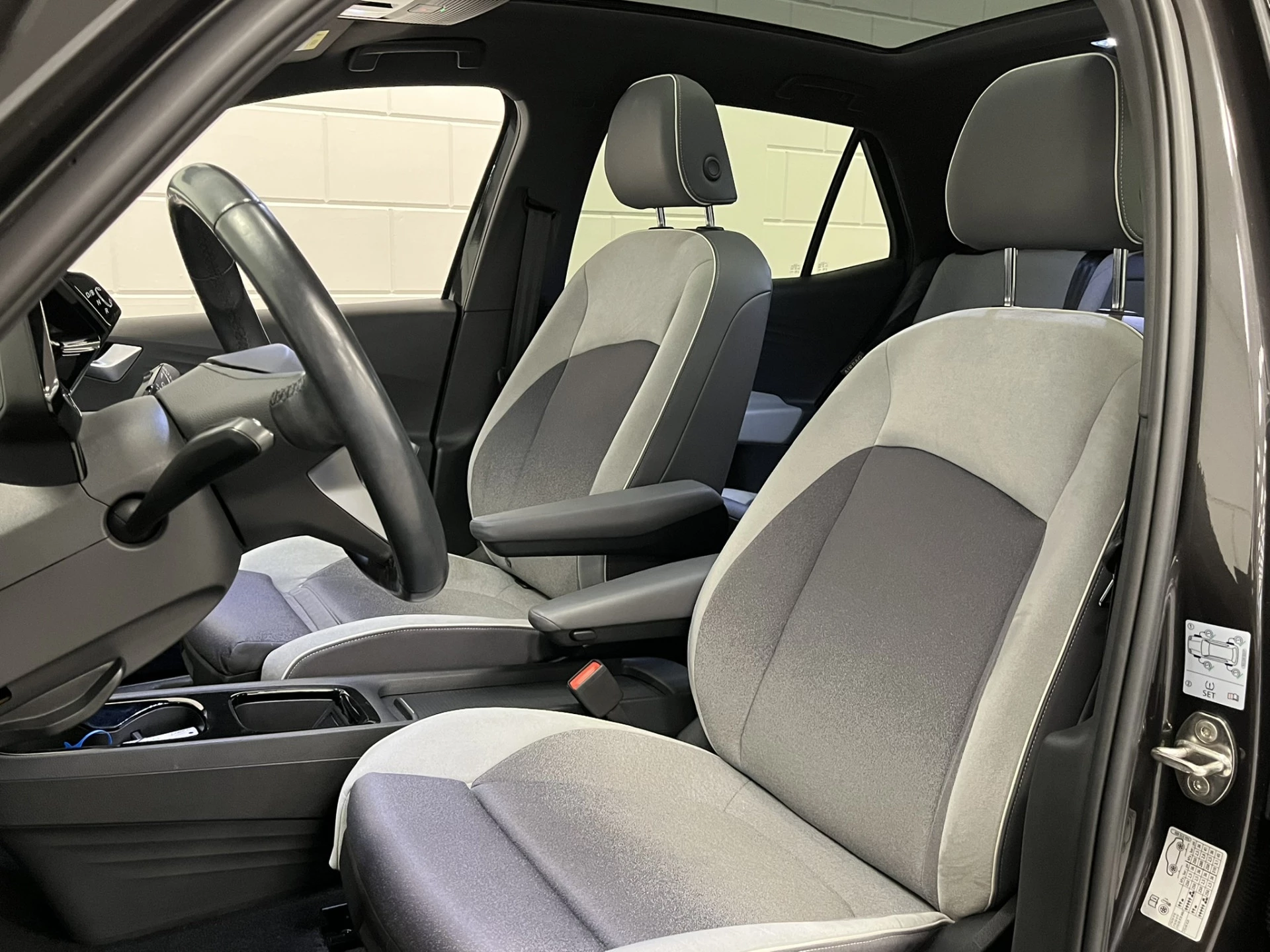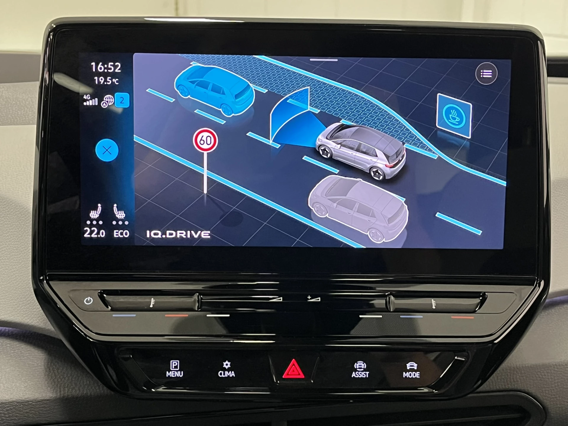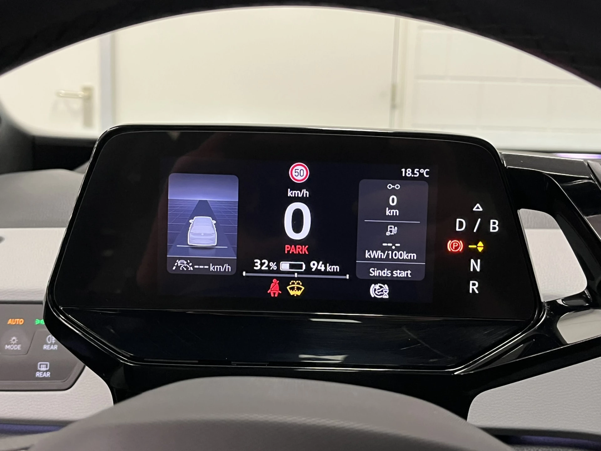 Zoals je mag verwachten van deze Volkswagen ID.3 is hij uitgerust met een reeks aan actieve veiligheidssystemen. Dat de auto steeds meer taken van de bestuurder overneemt, merk je bijvoorbeeld aan het systeem voor verkeersbord-detectie in deze auto. Het Lane-keeping systeem zorgt voor een automatisch constante positie binnen de rijstrook. Afdwalen is uitgesloten. Het systeem van forward collision warning, of in gewoon Nederlands 'botswaarschuwing', treedt in werking als de sensor te weinig afstand signaleert met een voor- of tegenligger. Bovenop deze veiligheidsfeatures heeft deze Volkswagen bovendien head-up display, dodehoekdetectie, hill hold functie, vermoeidheidsherkenning, autonoom remsysteem en bandenspanningcontrolesysteem.