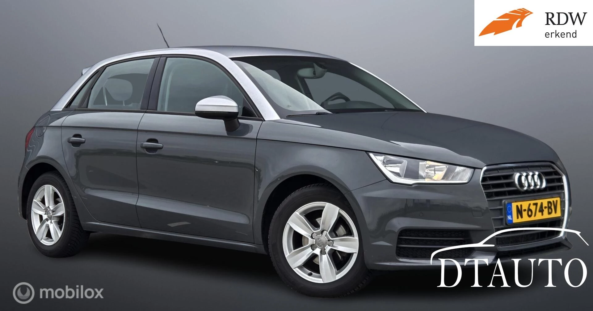 Door inruil verkregen ieen in zeer goede staat verkerende Audi A1 Sportback 1.0 TFSI in Nardo Grey V.v. O.a.Navigatie, Parkeersensoren, Bluetooth, Climate Control