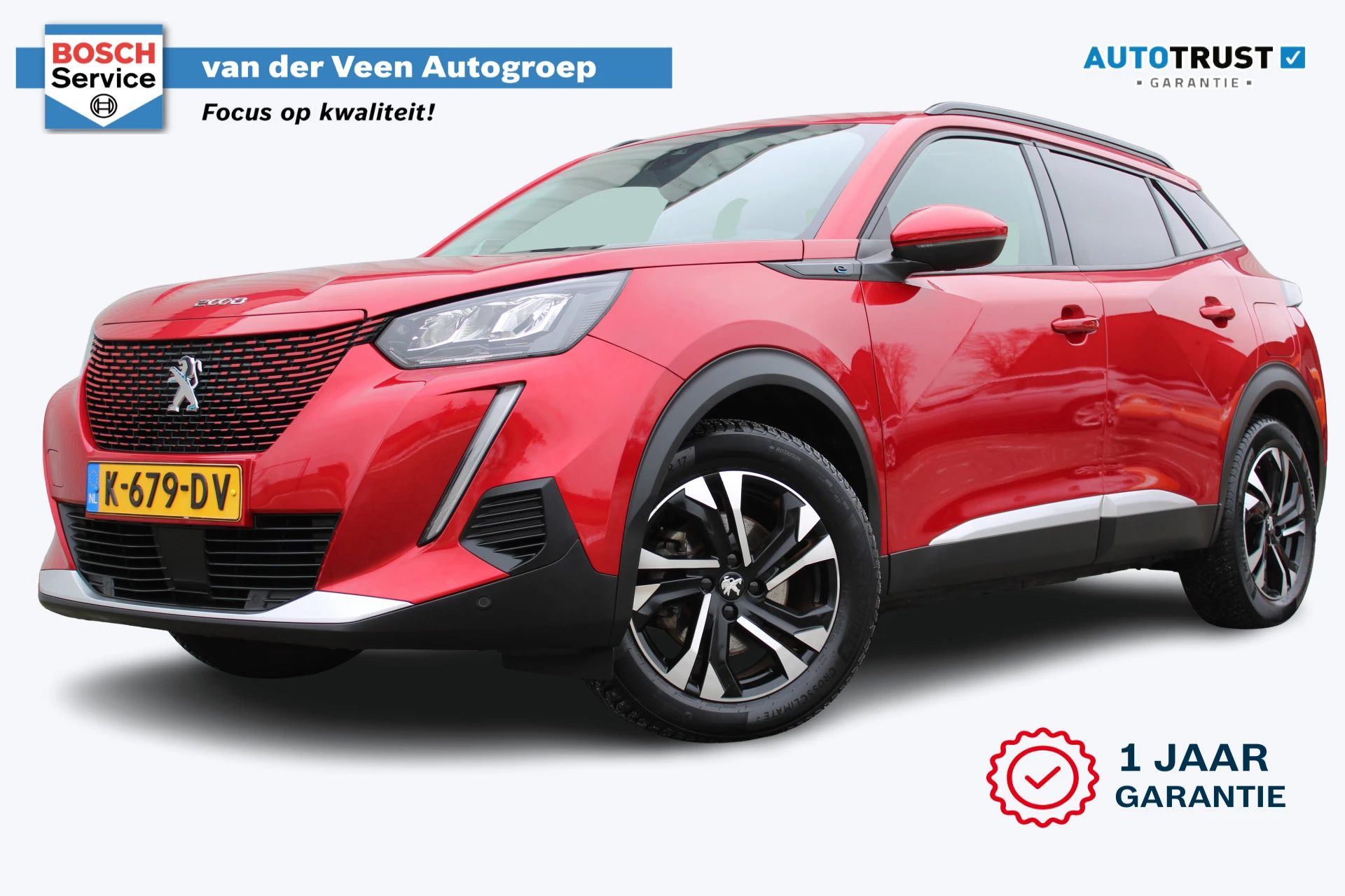 De nieuwste veiligheidssystemen komen in deze Peugeot e-2008 samen. In het instrumentarium laat de verkeersborddetectie de actuele verkeersborden zien. Met het Lane-keeping systeem komt u nooit per ongeluk buiten de rijstrook. Veel aanrijdingen bestaan uit kop-staartbotsingen. De forward collision warning reduceert dat risico aanzienlijk. Dankzij veiligheidsvoorzieningen als hill hold functie, vermoeidheidsherkenning, autonoom remsysteem en bandenspanningcontrolesysteem, bent u steeds veilig onderweg.