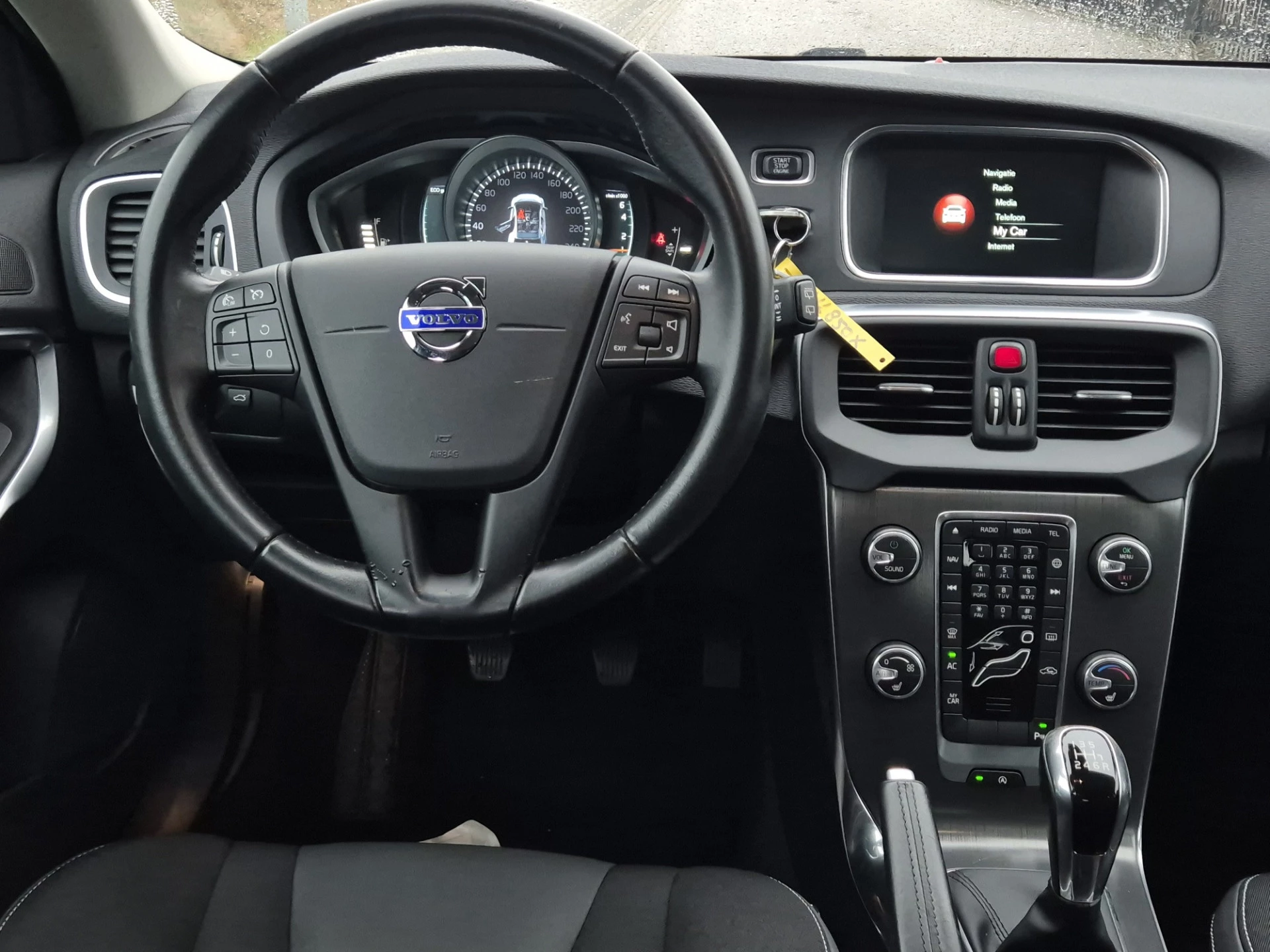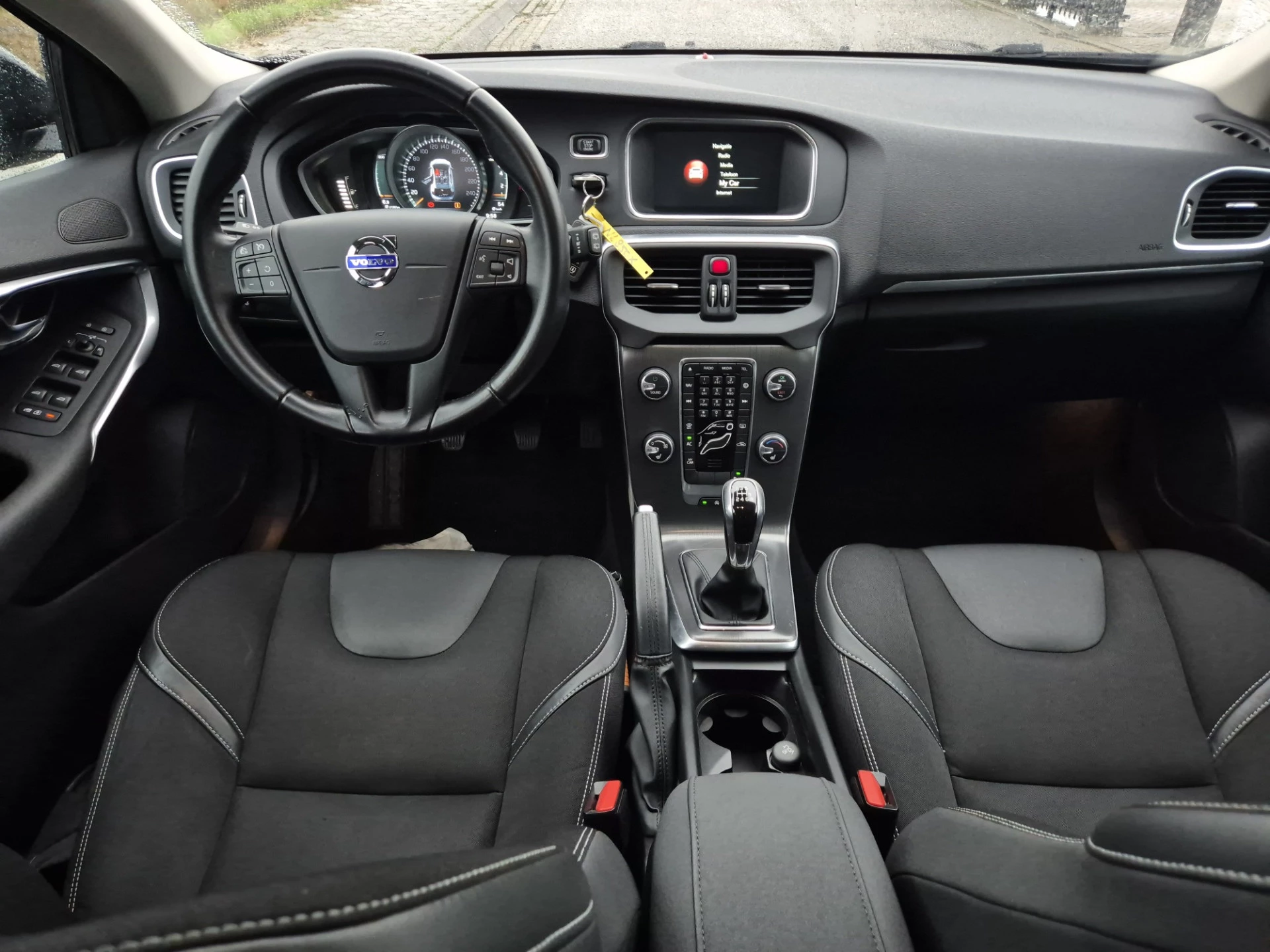 De V40 staat op prachtige lichtmetalen wielen die het sportieve karakter extra benadrukken. Binnenin word je verwelkomd door een mooie stof/leder bekleding, die comfort en luxe perfect combineert. Lange ritten worden een plezier dankzij de cruise control, terwijl de navigatie je altijd soepel naar je bestemming begeleidt. De trekhaak maakt deze Volvo bovendien praktisch voor een fietsendrager of aanhanger – ideaal voor weekendjes weg of extra gemak.