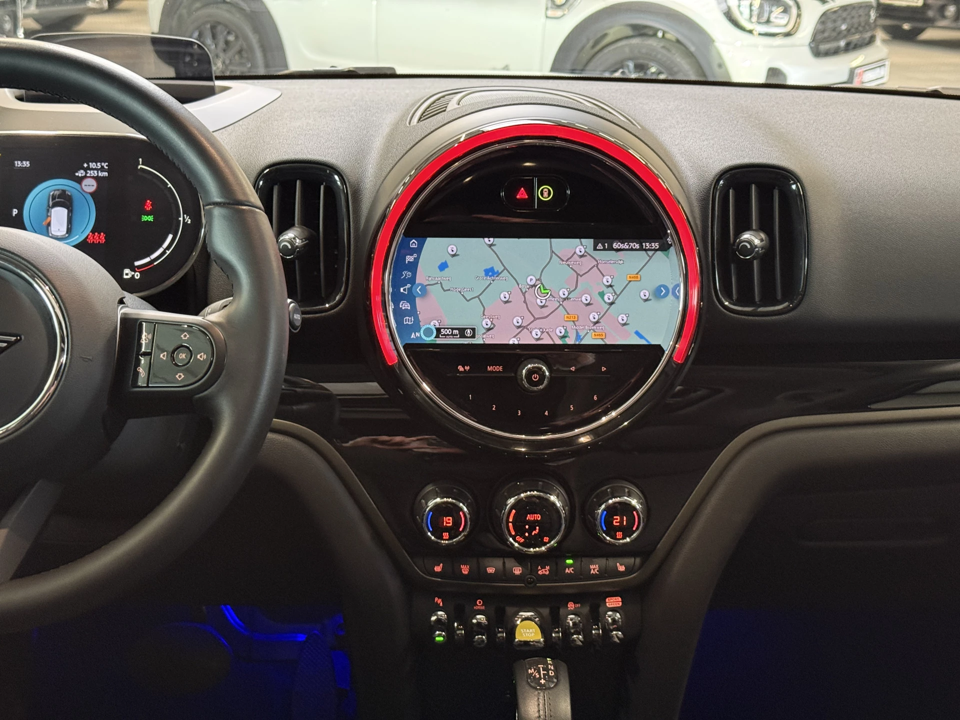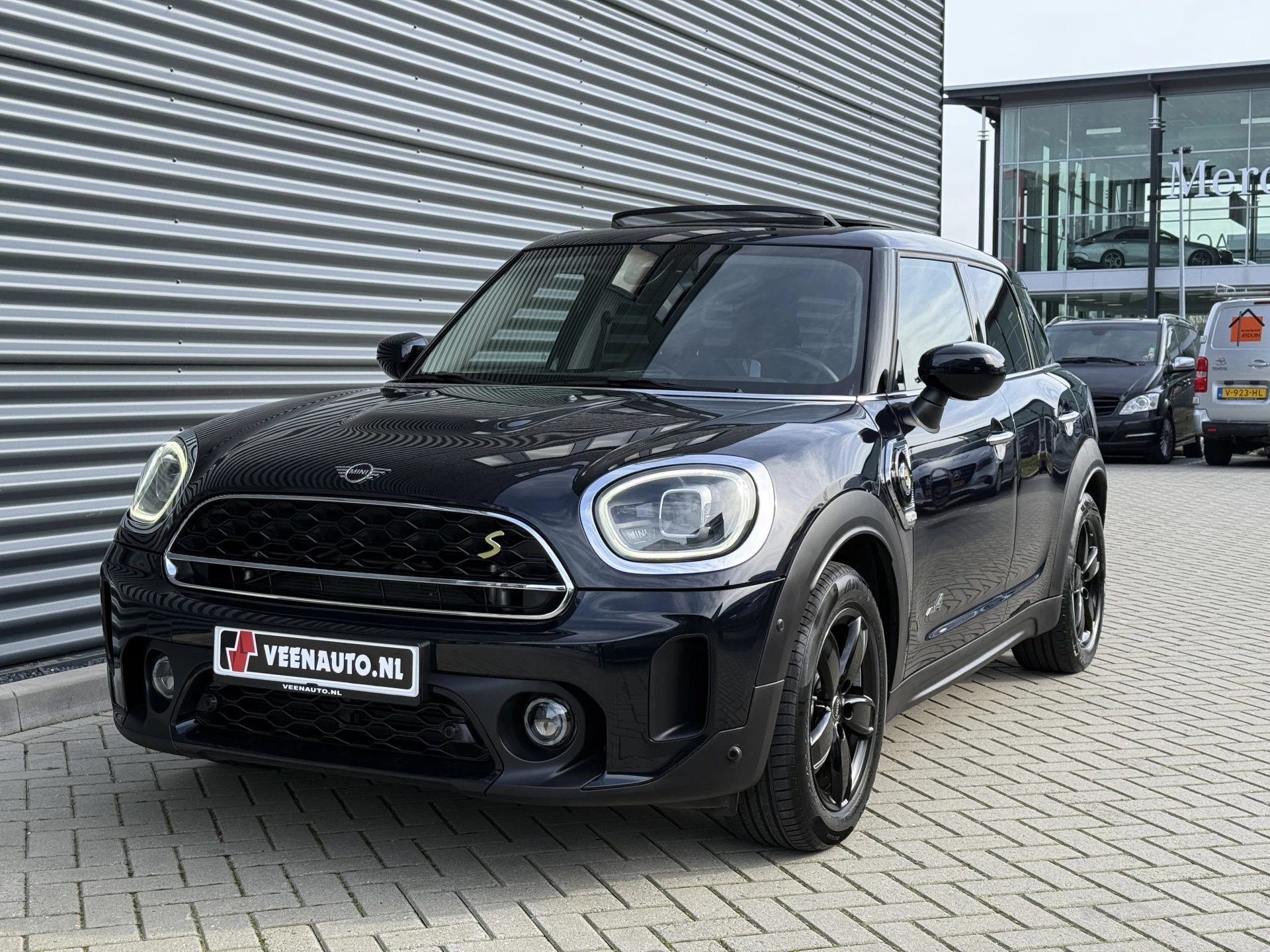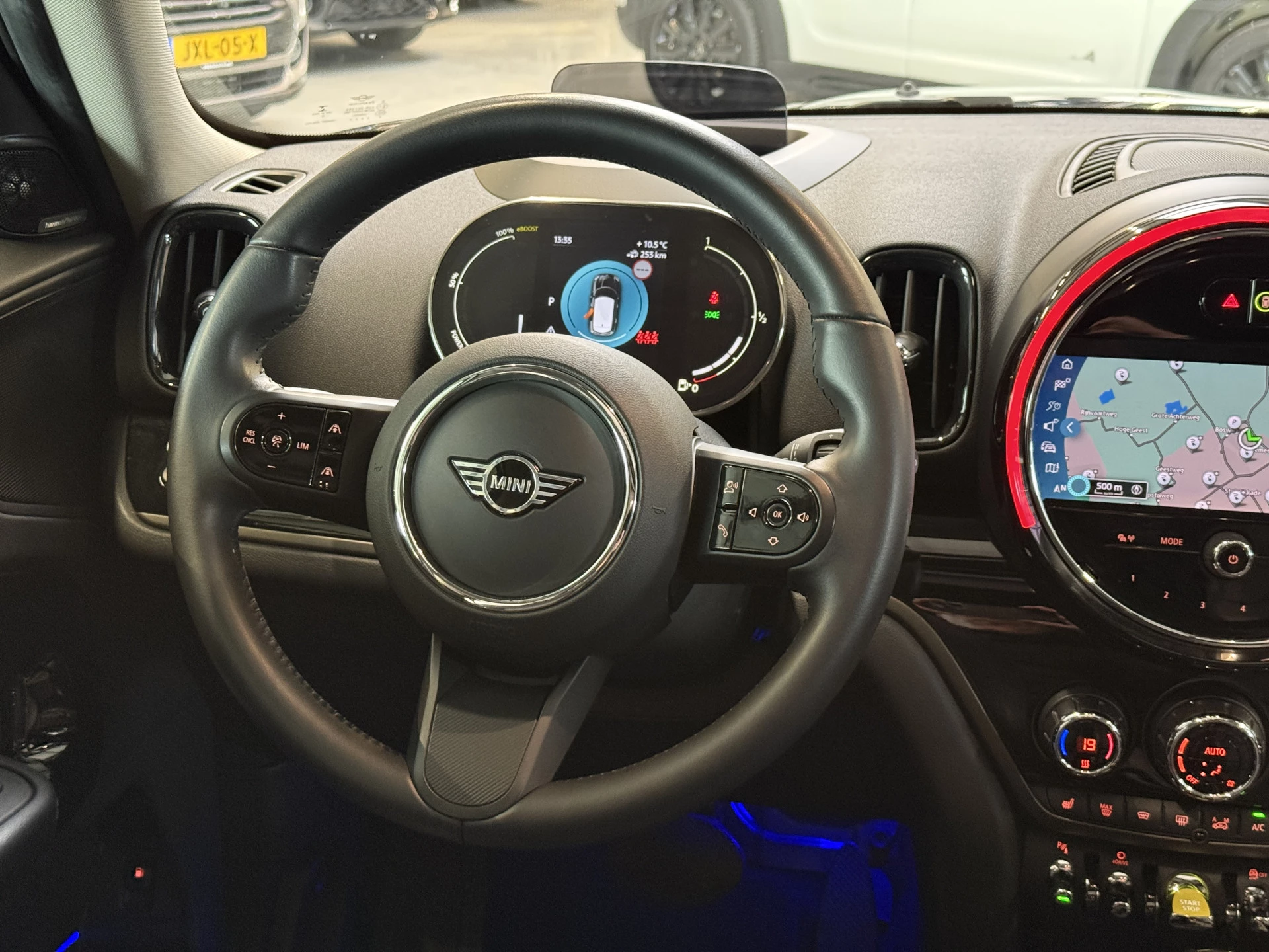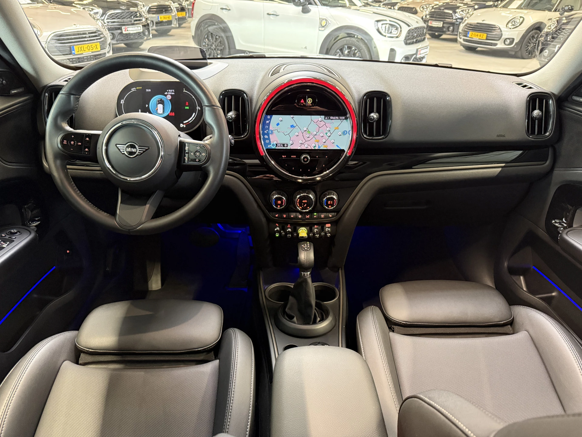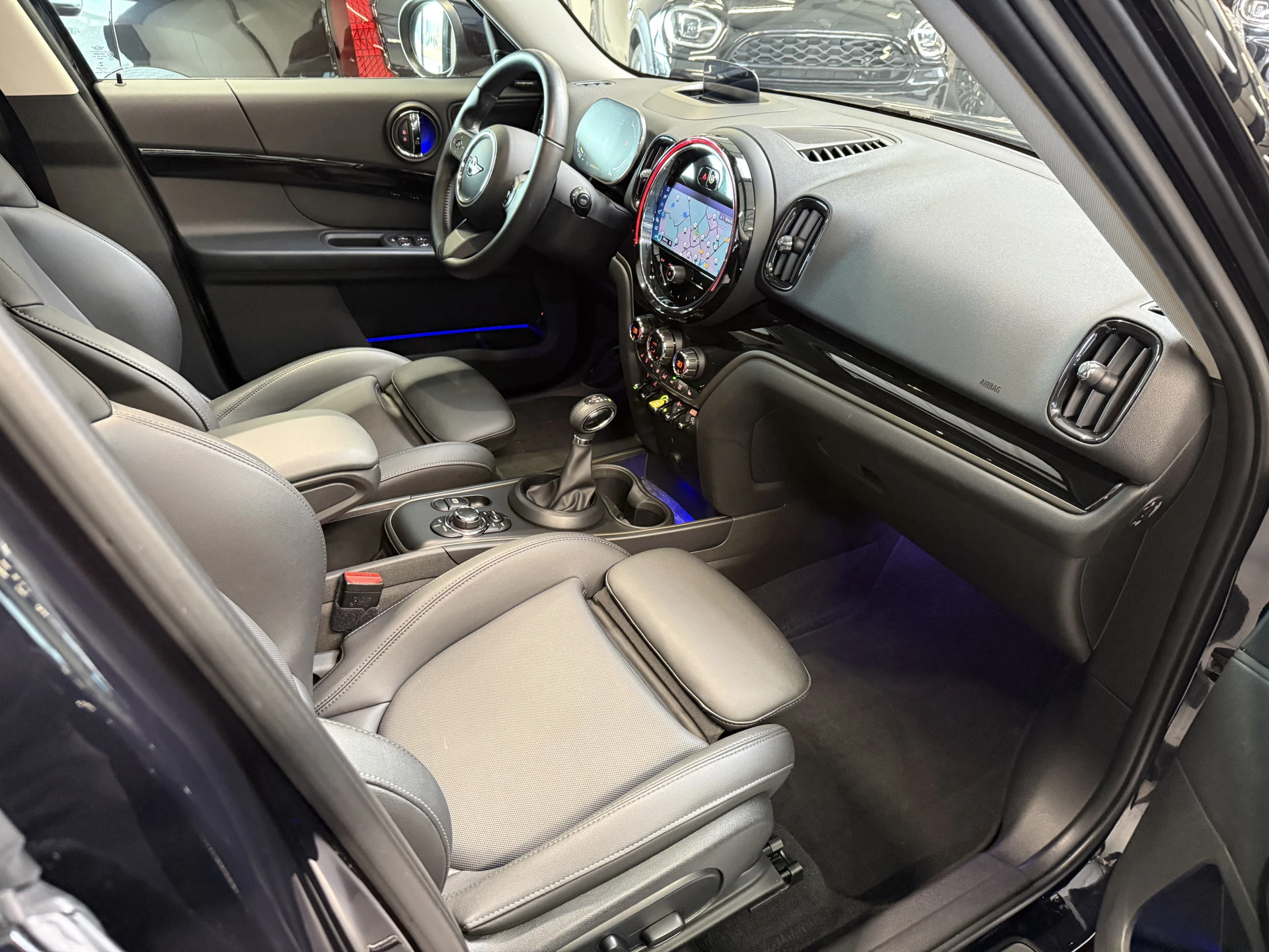 Schitterende Mini Countryman 2.0 Cooper SE ALL4 Plug in Hybrid in Enigmatic Black metallic met hoogglans zwarte licht metalen velgen. Deze Mini is bijzonder compleet uitgerust met onder andere de volgende opties: Panorama dak, Harman Kardon Audio, stoelverwarming, lederen sport-comfort stoelen elektrisch bedienbaar met memory, Apple Carplay, achteruitrijcamera, navigatie, virtuele cockpit, Head Up display, adaptieve cruise control, keyless entry, parkeersensoren voor + achter met parkeer assistent, etc..