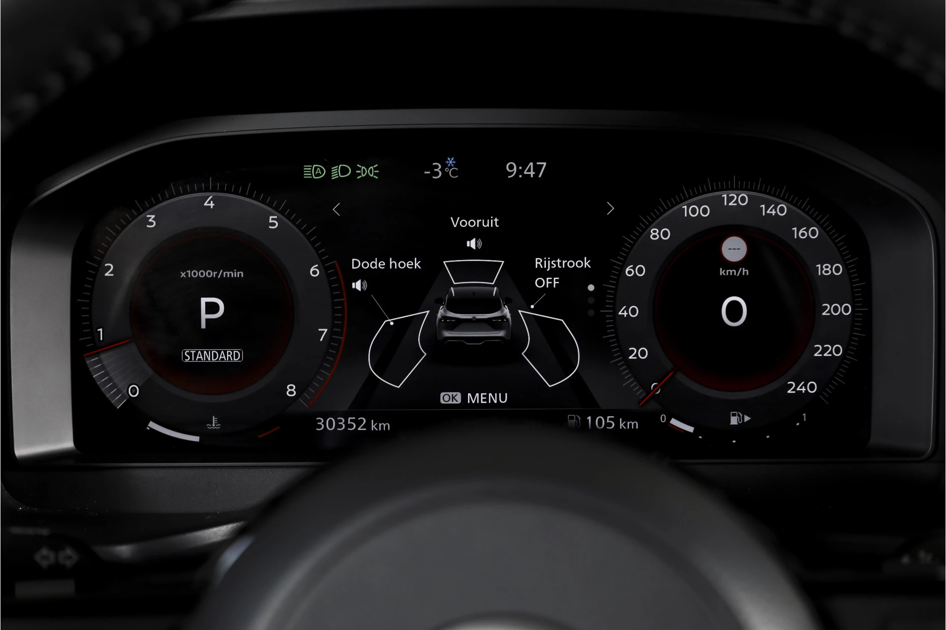 Ook op het gebied van veiligheid en zichtbaarheid is deze uitvoering sterk. De matrix led koplampen bieden uitstekend zicht zonder tegenliggers te hinderen, terwijl dodehoekdetectie met correctie extra ondersteuning geeft tijdens het wisselen van rijstrook. Inparkeren gaat eenvoudig dankzij parkeersensor voor en parkeersensor achter.