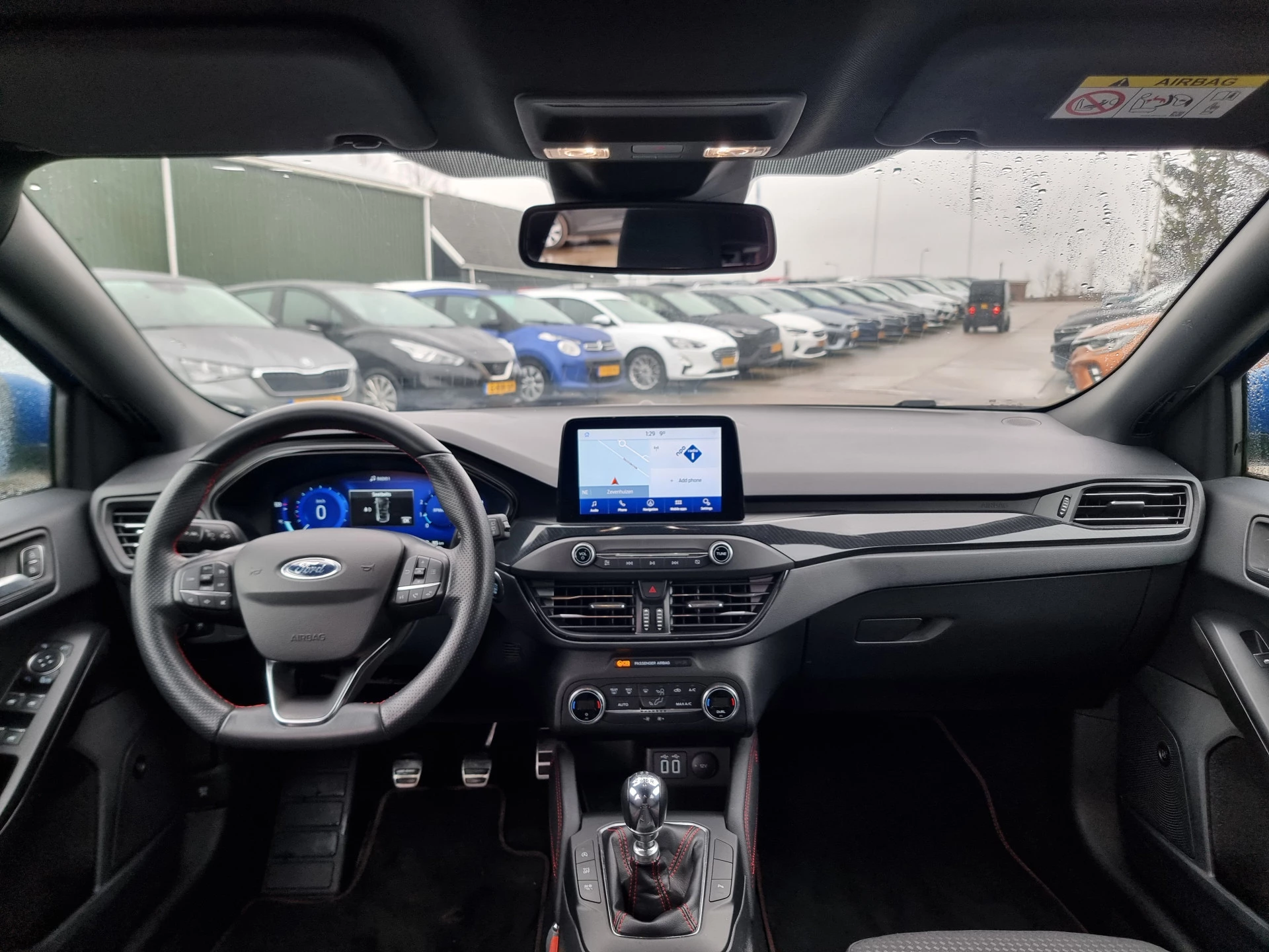 Binnenin geniet je van sportstoelen, sportstuur, 8 inch touchscreen met navigatie (SYNC 3.2), Apple CarPlay/Android Auto, achteruitrijcamera, parkeersensoren voor en achter, draadloze telefoonlader, keyless entry & start en automatische airco. Ook op het gebied van veiligheid is hij compleet met onder andere rijstrooksensor met correctie, Pre-Collision Assist, verkeersherkenning en cruise control.