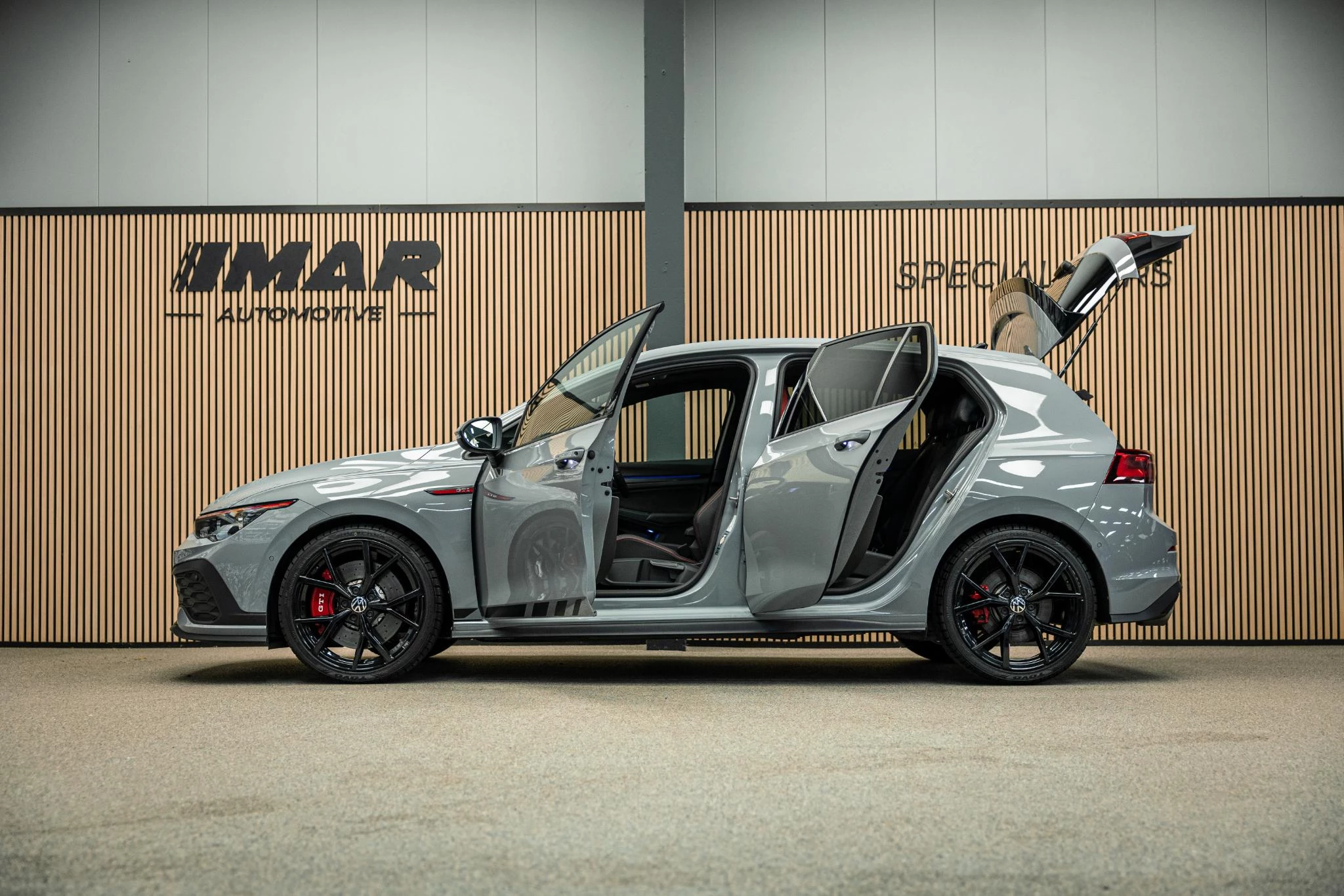 Deze Clubsport is uitgevoerd met onder meer een Harman/Kardon audiosysteem, panoramadak en een Akrapovic uitlaatsysteem, wat zowel het comfort als het sportieve karakter versterkt. De Moonstone Grey lak in combinatie met het zwart/rode interieur geeft de auto een onderscheidende en dynamische uitstraling.