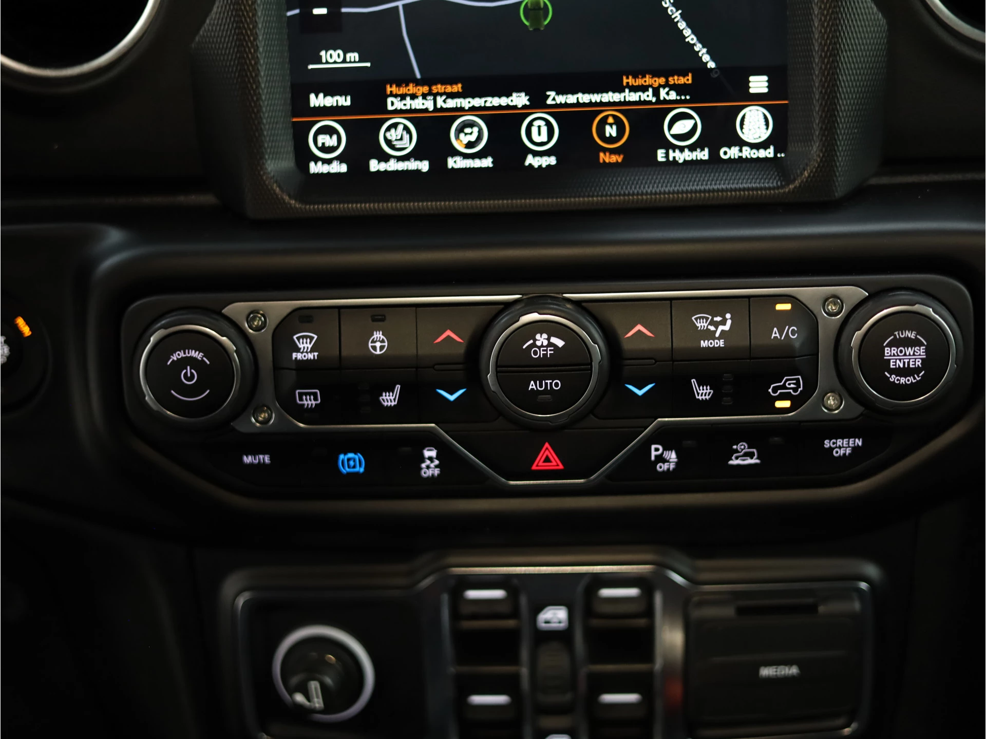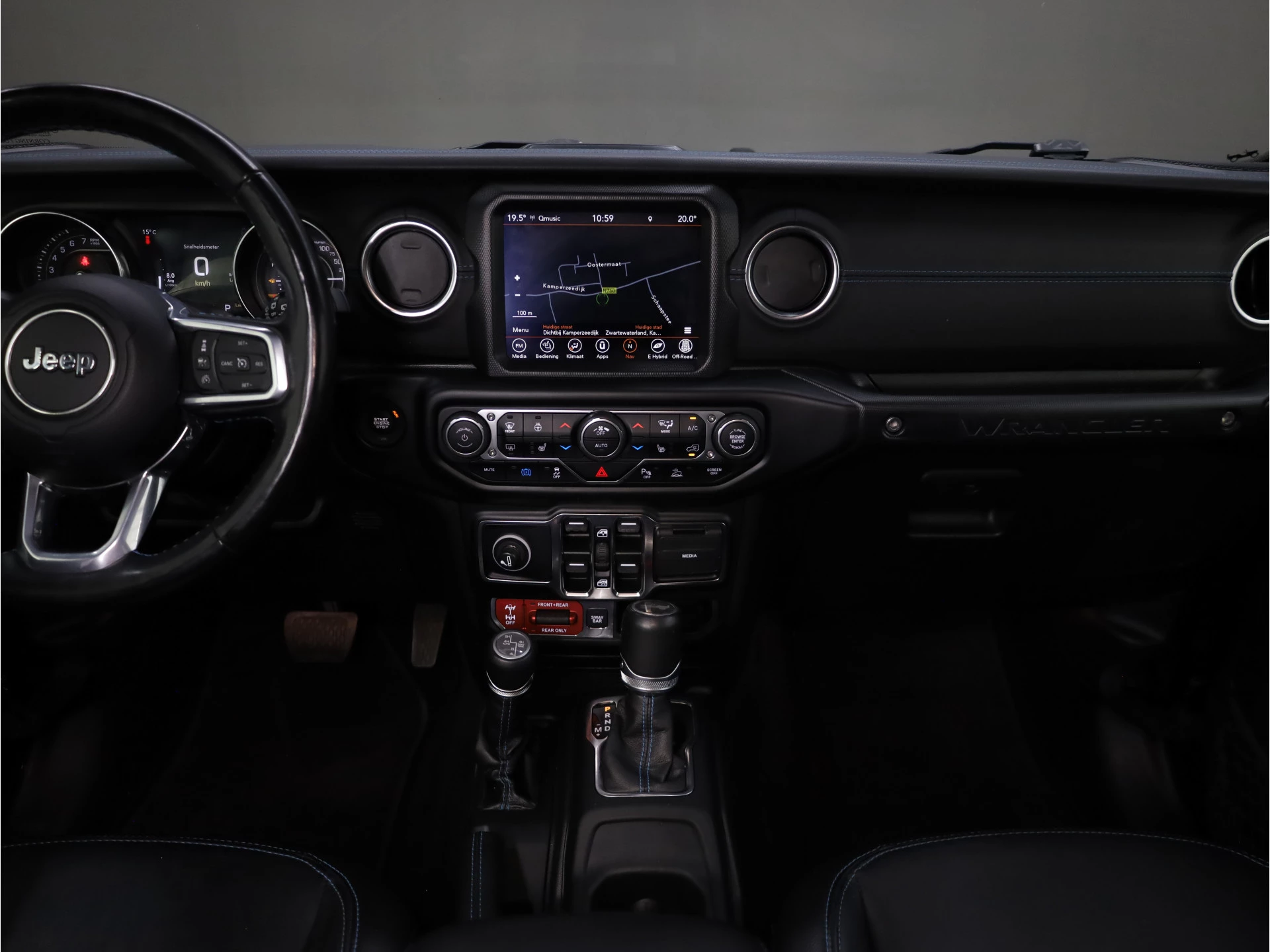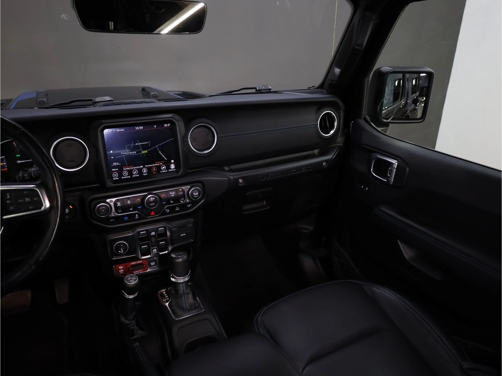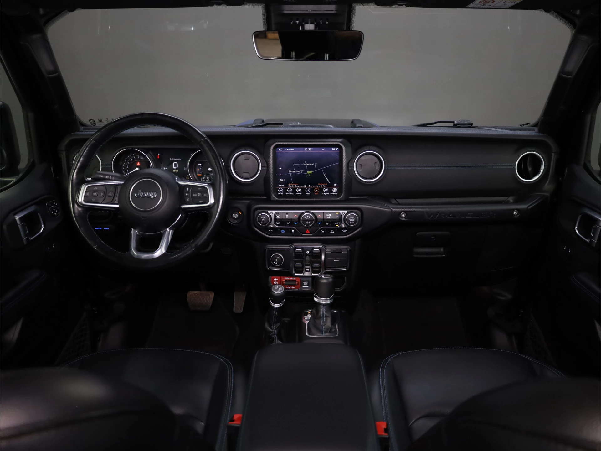 Inparkeren? Met de achteruitrijcamera heeft u er geen omkijken meer naar! Adaptive cruise control houdt de ingestelde snelheid vast en houdt automatisch afstand tot uw voorligger. Als u 'm vraagt 'hoe gaat het?' geeft deze auto zelf het antwoord. Via de app op uw smartphone. U checkt de meters waar u maar wilt, of activeert diverse functies alvast. In deze Wrangler Unlimited vindt u schakelaars op het stuur om het audio-installatiesysteem te bedienen en het navigatiesysteem. Ook is de auto voorzien van automatische airconditioning. Met keyless entry, automatisch dimmende binnenspiegel en lederen versnellingspook is deze Jeep helemaal compleet.