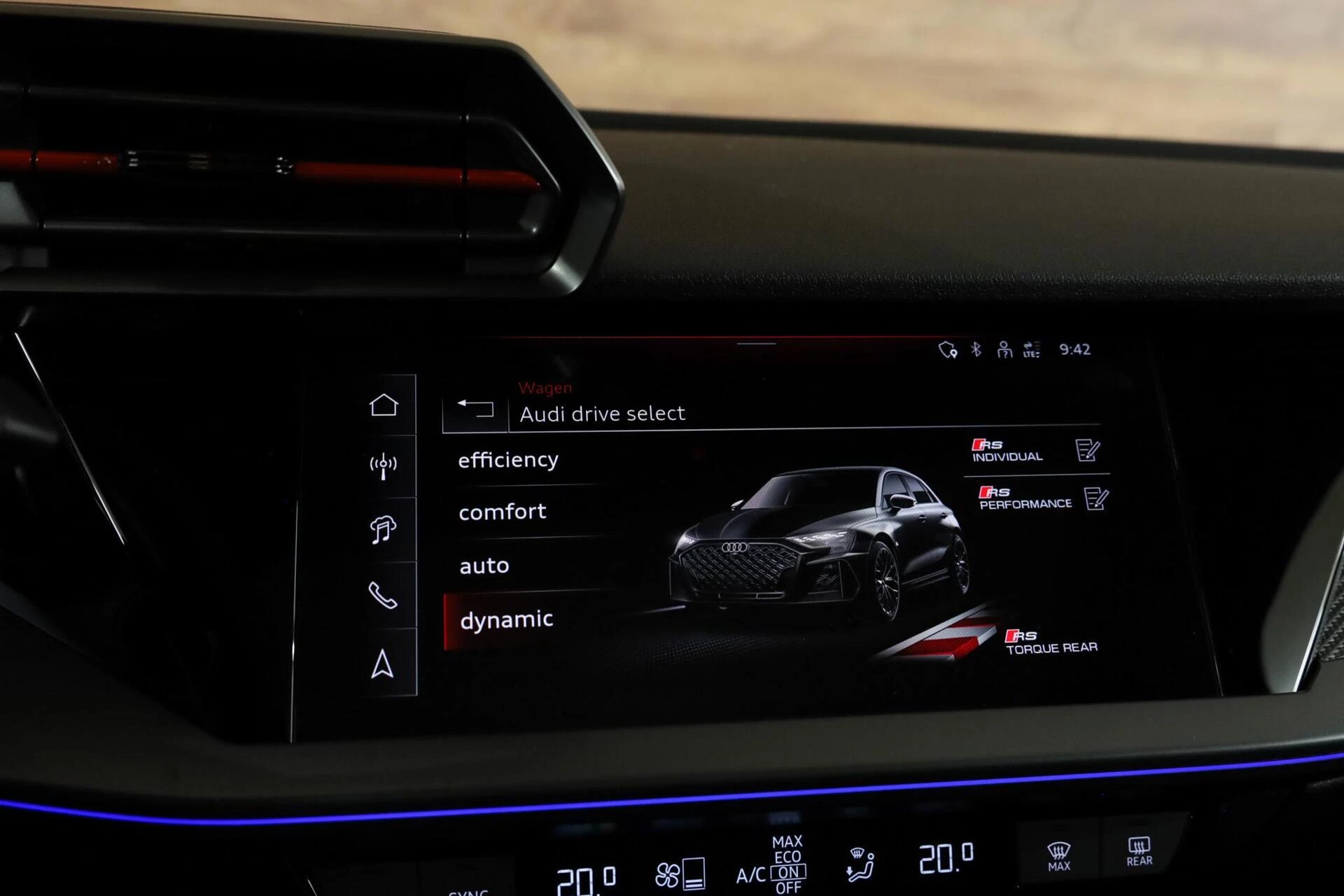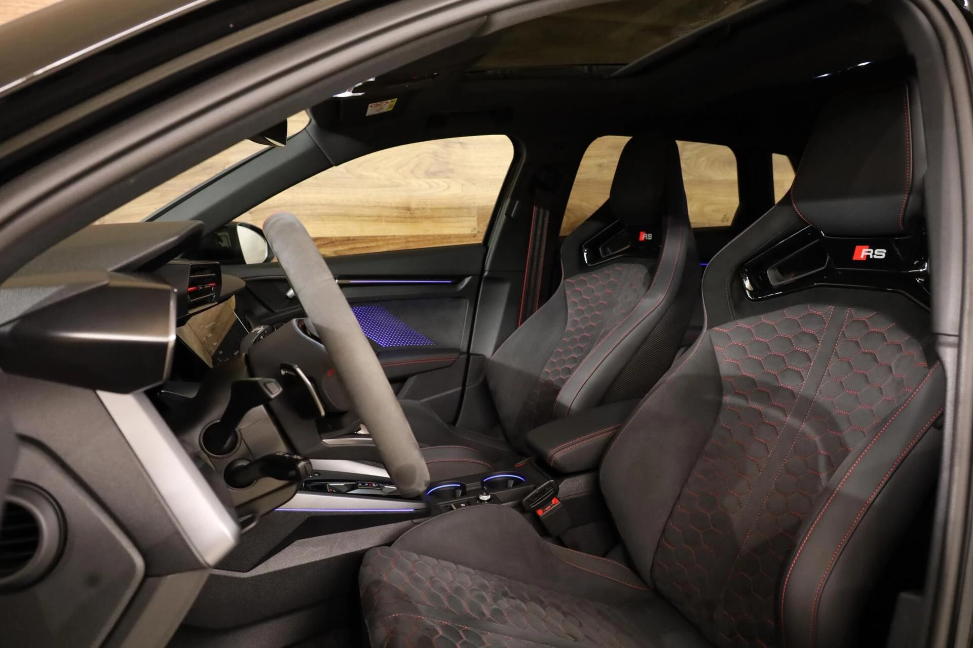 Deze schitterende Audi RS3 beschikt over alle denkbare opties, zoals: Carbon kuip RS Zetels met honingraat patroon, Panorama schuif kantel dak, Keyless Entry, Stoelverwarming, Climate control, Sonos surround sound, Parkeersensoren voor en achter, Achteruitrijcamera, 19-inch licht metalen velgen, Schakelmogelijkheid aan stuurwiel, Afgevlakt Alcantara Sportstuur,