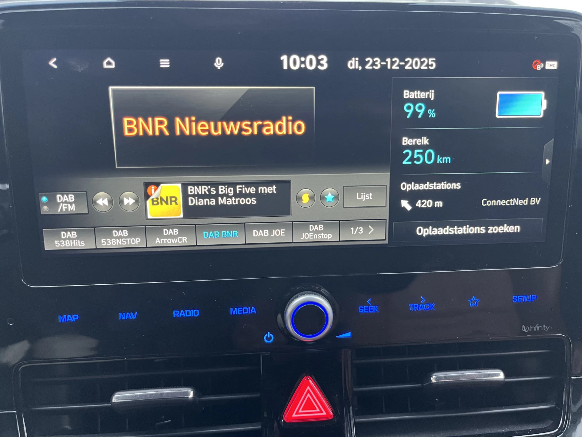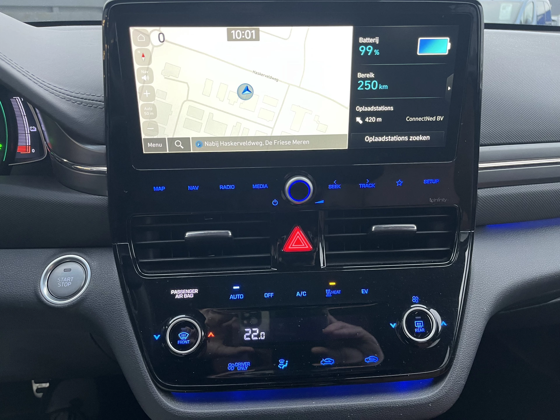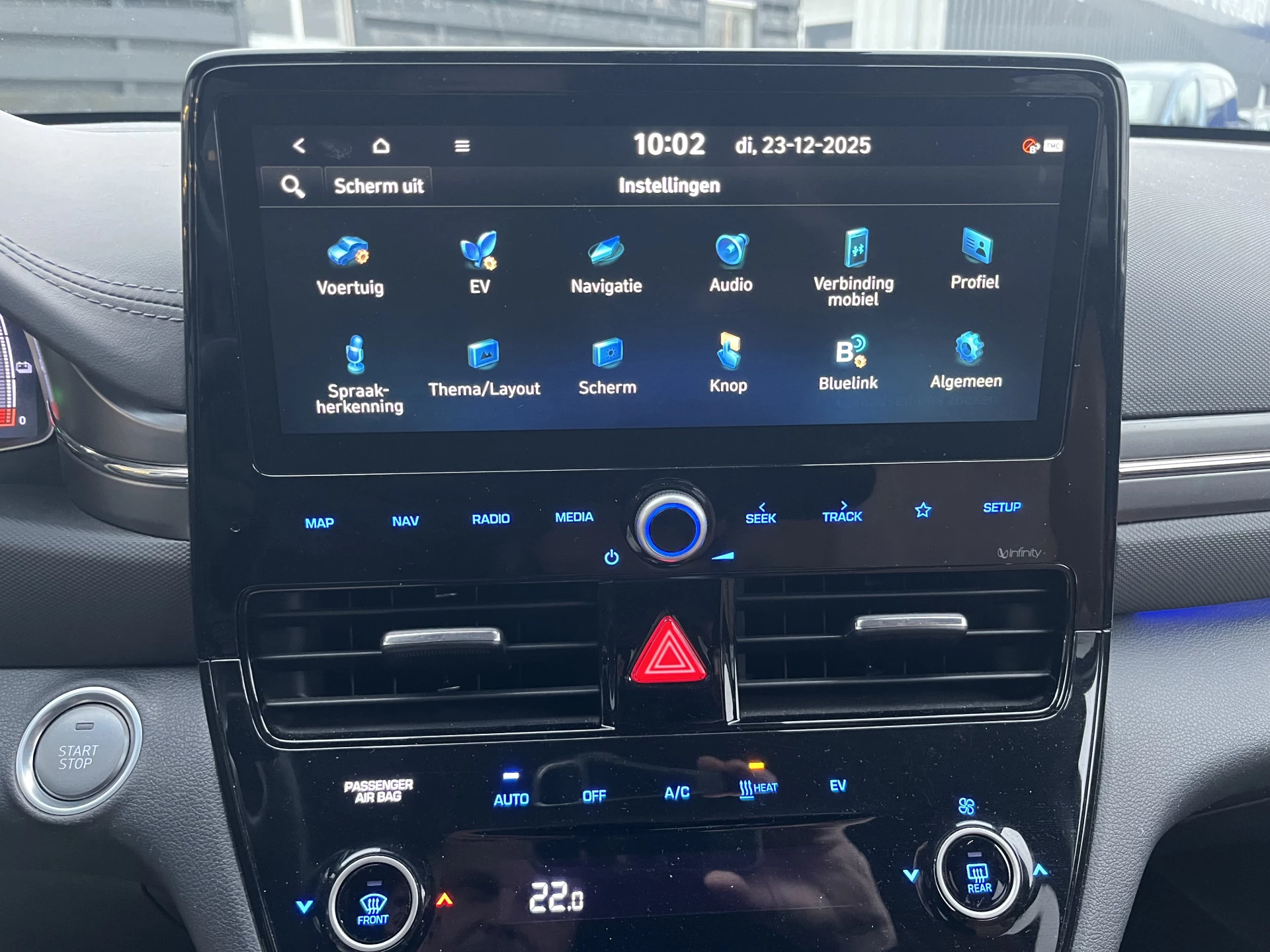 Altijd achter zicht, nooit meer nekkramp! De achteruitrijcamera maakt het supermakkelijk. Adaptive cruise control is veilig en comfortabel. De snelheidsregelaar houdt automatisch afstand tot het voertuig dat voor u rijdt. Als u 'm vraagt 'hoe gaat het?' geeft deze auto zelf het antwoord. Via de app op uw smartphone. U checkt de meters waar u maar wilt, of activeert diverse functies alvast. Voor een krachtige en natuurlijke geluidsweergave zorgt het high performance audiosysteem. Is uw smartphone geschikt voor snoerloos opladen? Dan zorgt de draadloze oplaadmogelijkheid voor telefoons weer voor een volle accu zonder snoeren en stekkers. U bent in deze Hyundai ook voorzien van full map navigatiesysteem, automatische airconditioning, schakelpaddles aan het stuur, DAB ontvangst, regensensor en keyless entry.