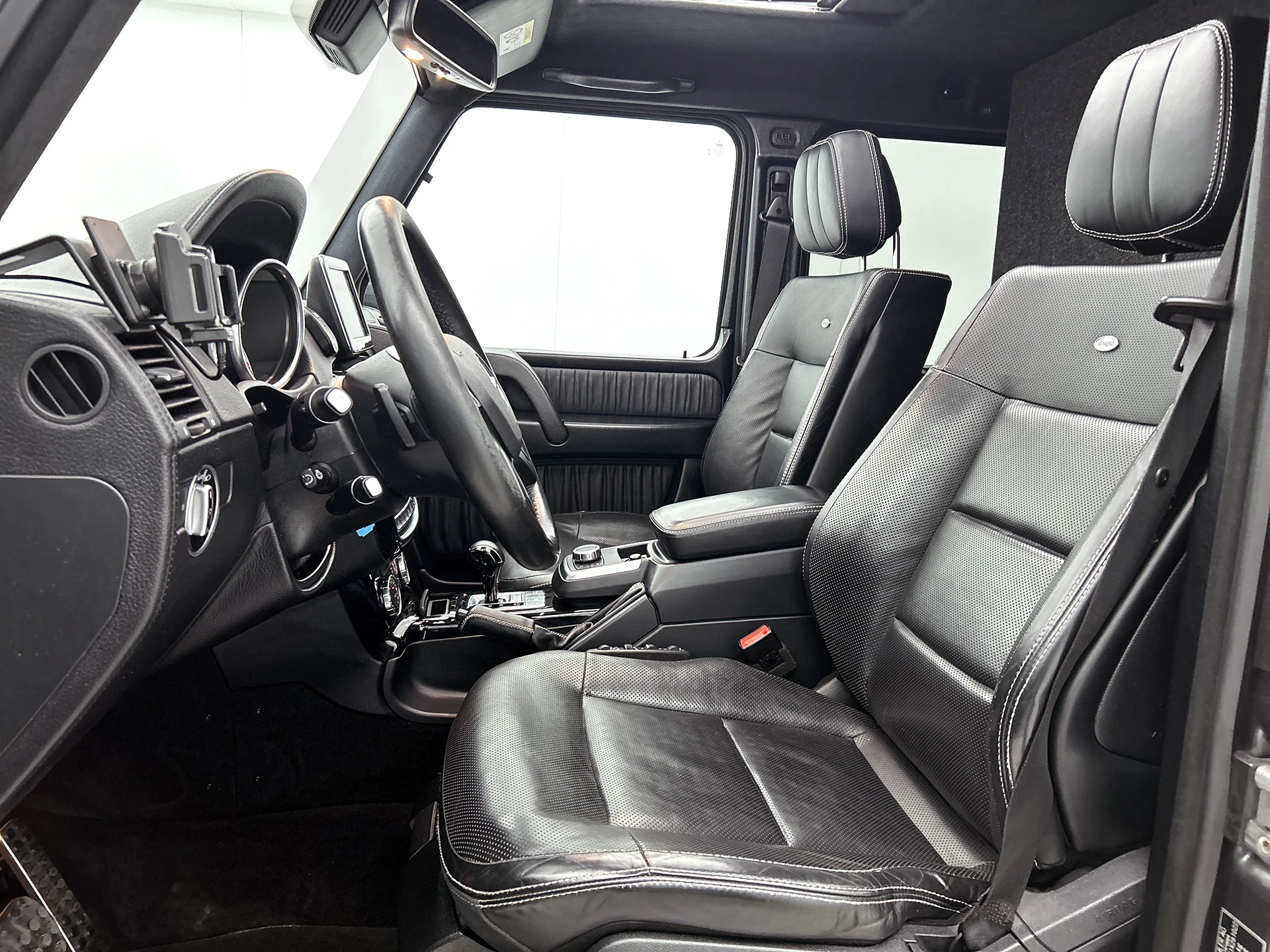 Laat u niets wijsmaken, deze Mercedes-Benz G-klasse biedt alles wat u van een auto verlangt. Deze auto komt uit 2017. In deze auto vindt u een dieselmotor en een automatische transmissie. Van de diverse pluspunten is ook het lederen interieur het noemen waard. Neem plaats op de comfortabele stoelen. Dankzij de elektrische bediening en het geheugen is het eenvoudig om hierin de beste zitpositie te vinden. Zon en frisse lucht krijgen vrij spel dankzij het elektrisch bediende glazen panoramadak. Stramme vingers krijgen 's winters een VIP-behandeling van het verwarmd stuurwiel. U wordt in deze auto ook getrakteerd op 19 inch lichtmetalen velgen, warmtewerend glas, LED-dagrijverlichting, zwarte hemelbekleding, elektrisch inklapbare buitenspiegels en treeplanken.
