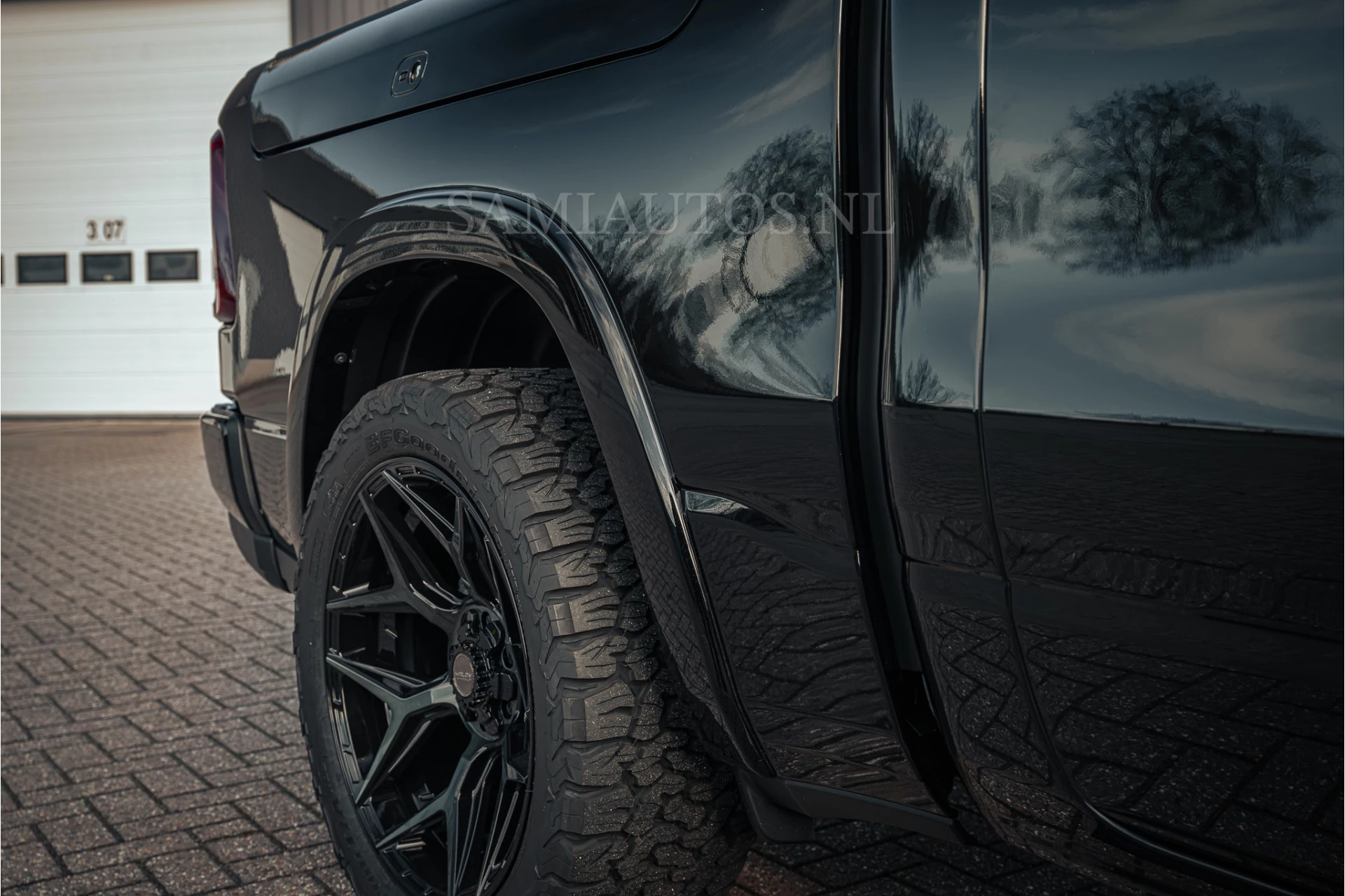 ✔ WideBody ✔ Bredere wielen zo afgebeeld ✔ Striping ✔ Tinten ✔ Bedstep ✔ Divider en de remklauw kleur