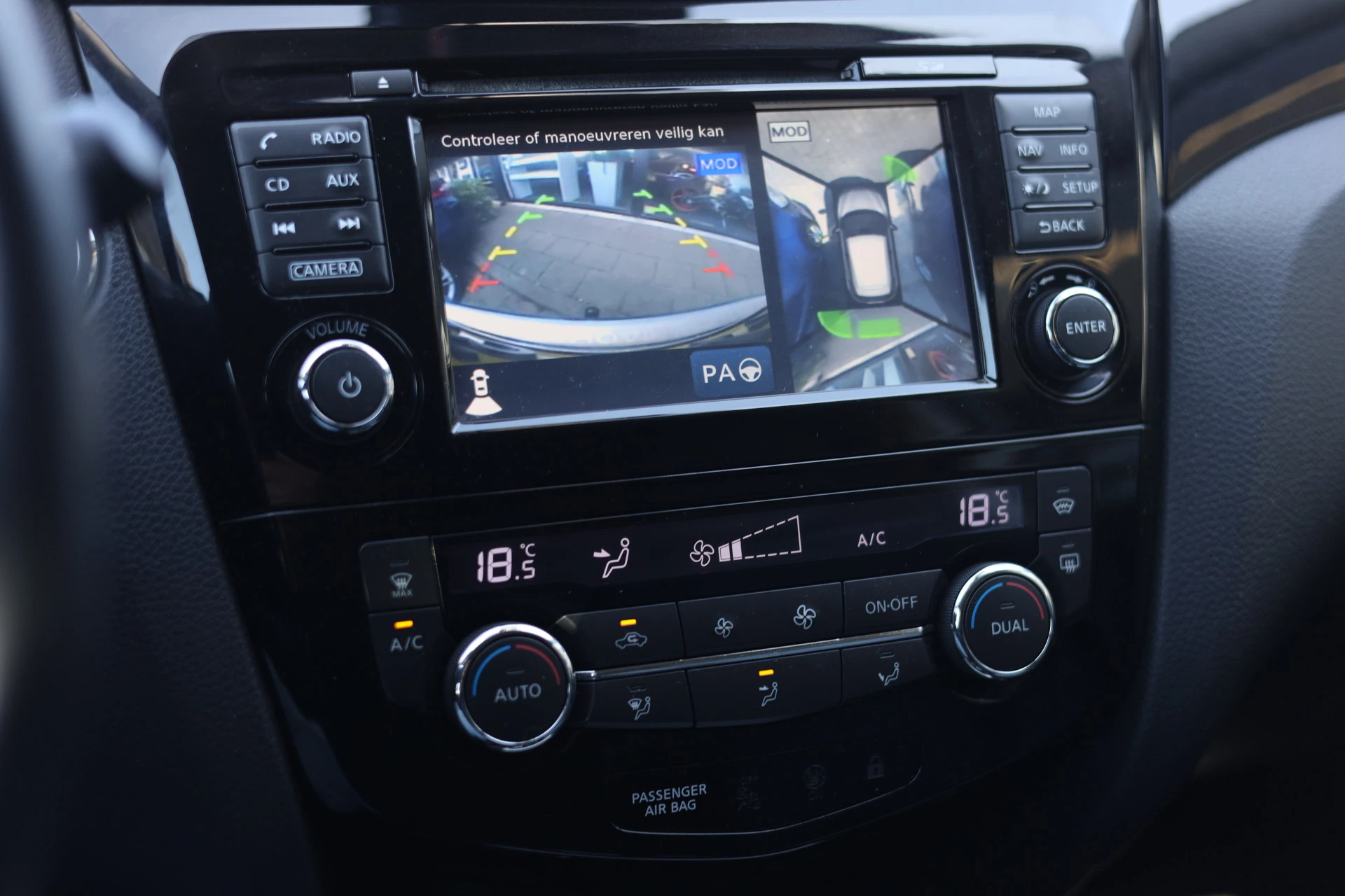 De 360 graden camera op deze auto biedt u een volledig, panoramisch zicht op de omgeving. Automatische airconditioning verwarmt of koelt het interieur met een druk op de knop. U kunt bij het inparkeren natuurlijk niet aan alle kanten ogen hebben. Daarom is deze Nissan Qashqai voorzien van parkeersensoren! De cruise control zorgt voor zorgeloos, ontspannen en zuinig rijgedrag. Altijd uw handen vrij om deuren of bagageklep te openen, dankzij de keyless entry. De Nissan is standaard voorzien van: navigatiesysteem, DAB ontvangst en automatisch dimmende binnenspiegel.