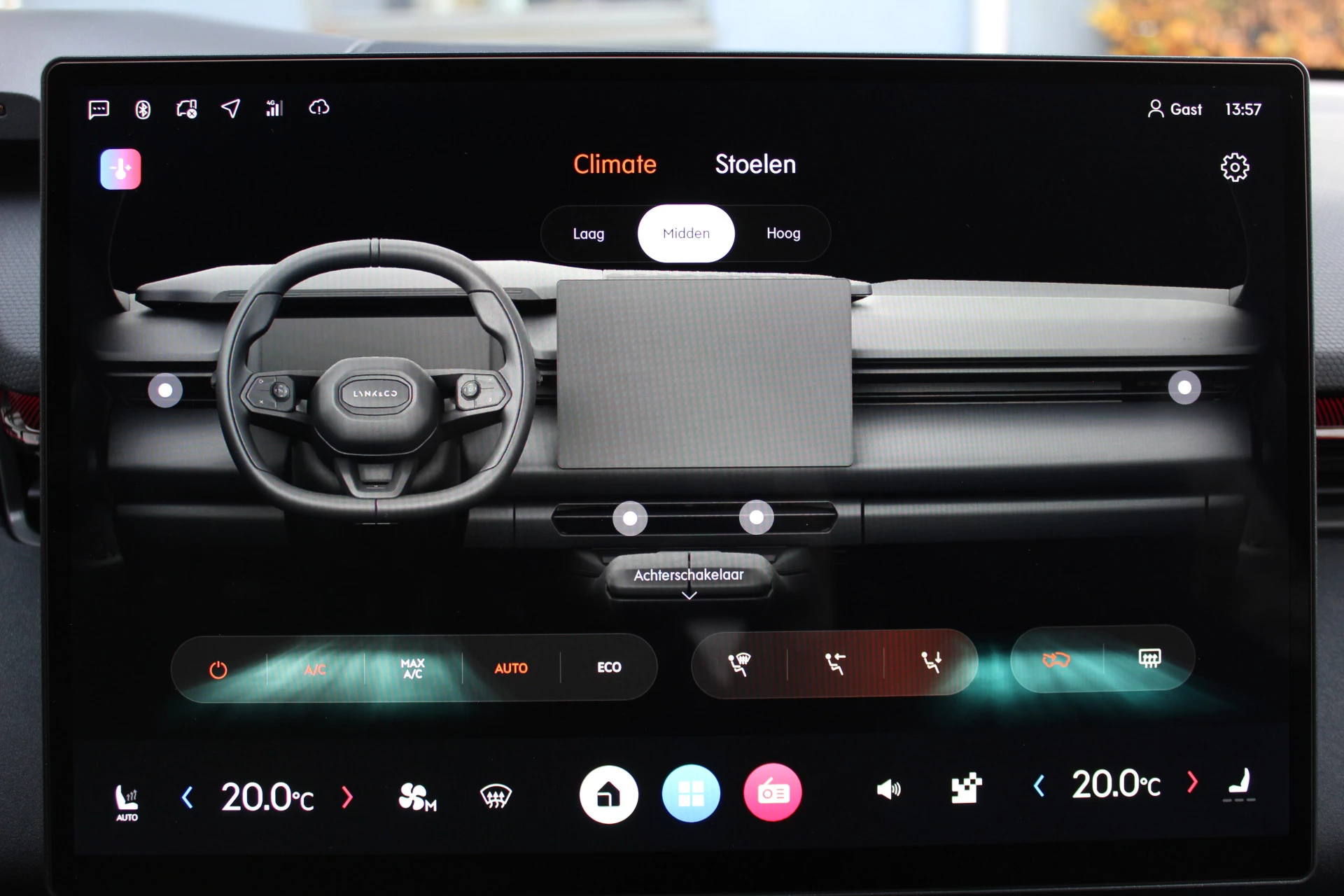 Dat u het milieu wilt sparen, wil nog niet zeggen dat u aan rijcomfort moet inleveren. De Lynk & Co 08 is een comfortabele en ruime hybride auto. Deze goed onderhouden Lynk & Co heeft slechts 10 kilometer gelopen, het bouwjaar is 2025. De elektromotor zorgt voor snel en traploos optrekken bij ieder stoplicht. Een van de vele voordelen van deze hybride auto. De verwarmbare voorstoelen zijn voorzien van een massagefunctie, een weldaad voor rug en schouders in elk seizoen. Met een druk op de knop gaat de elektrische achterklep open. Een heerlijke hoeveelheid daglicht zorgt voor een riant en ruimtelijk effect door het glazen panoramadak. De behaaglijkheid van de verwarmde achterbank zal ook uw passagiers bevallen. Daglicht bij nacht? De koplampen met matrix LED-verlichting zorgen ervoor. Ook is de auto voorzien van: 21 inch lichtmetalen velgen, geluidsisolerende ramen, trailer assistent, in delen neerklapbare achterbank, verstelbare lendensteunen en snelheidsafhankelijke stuurbekrachtiging.