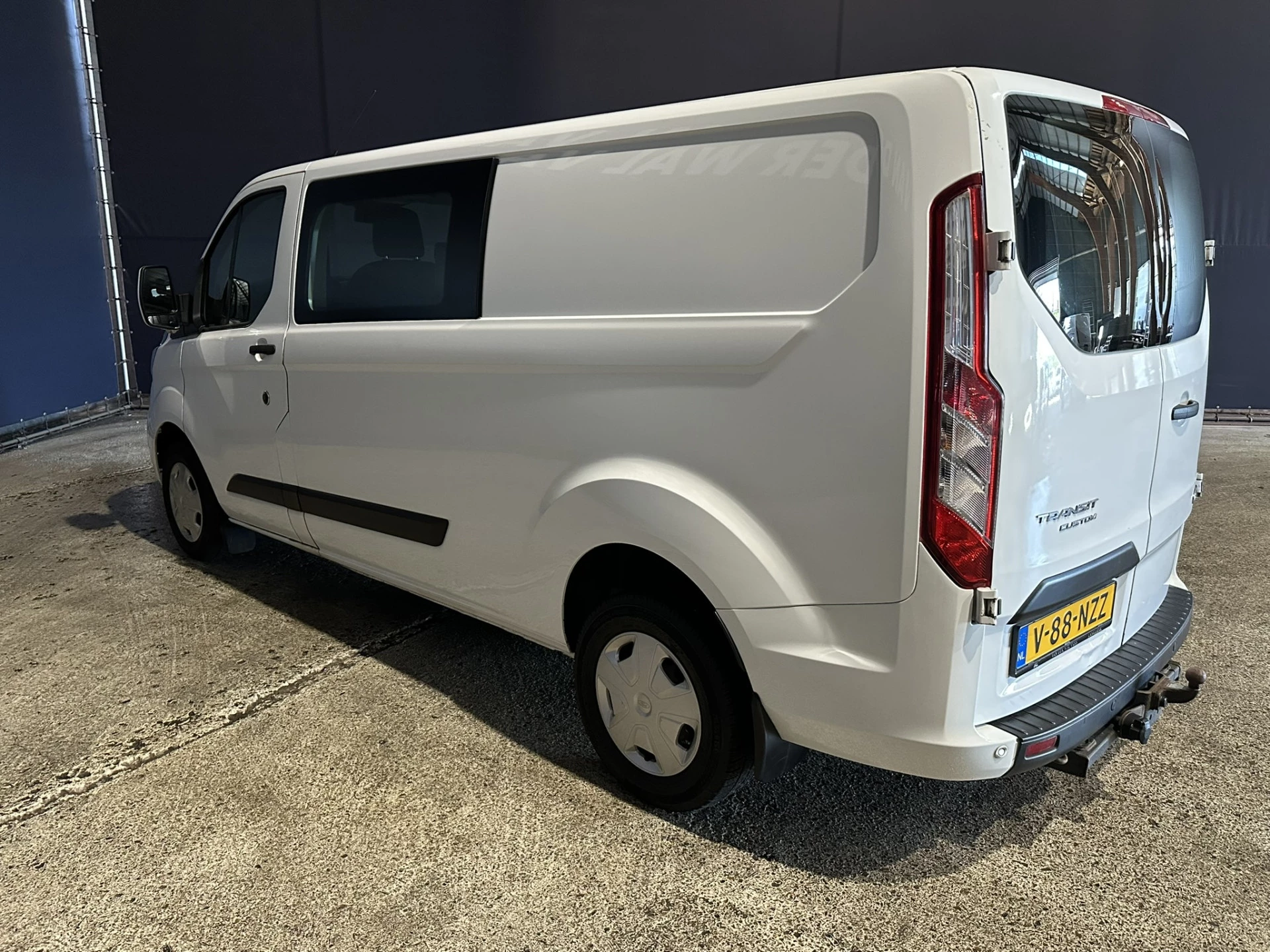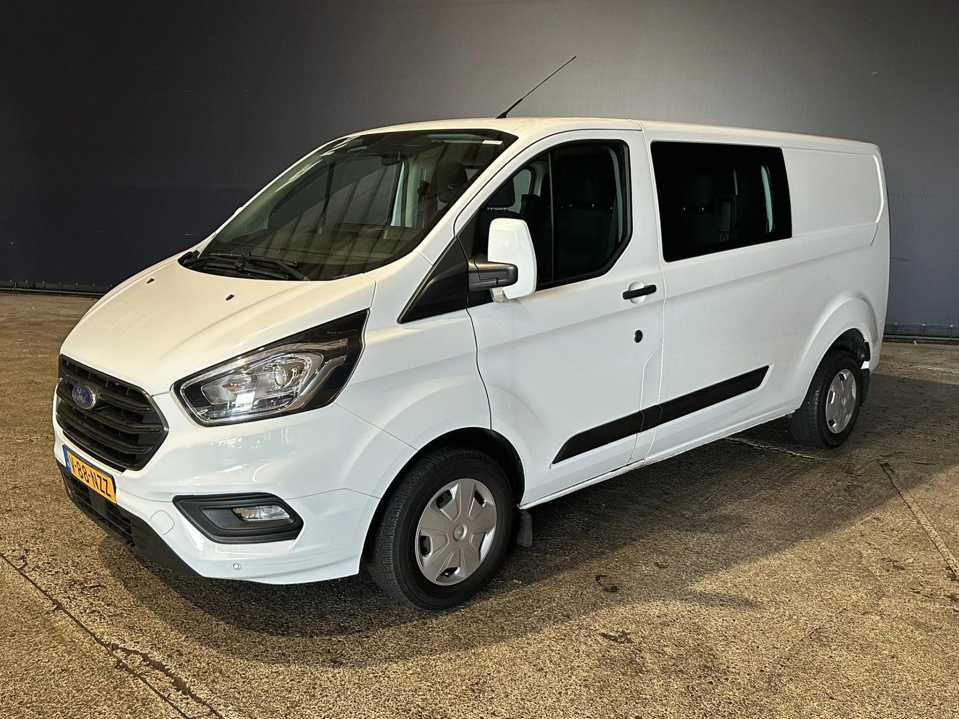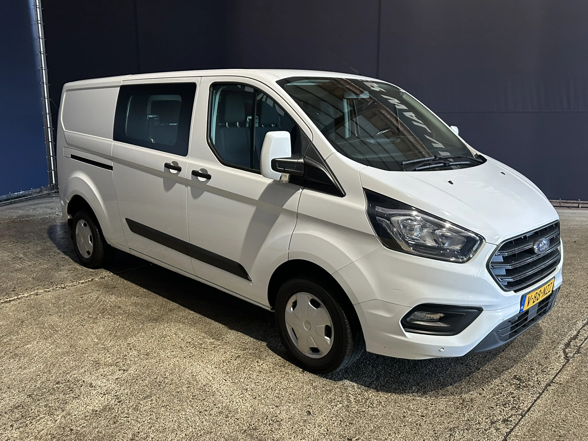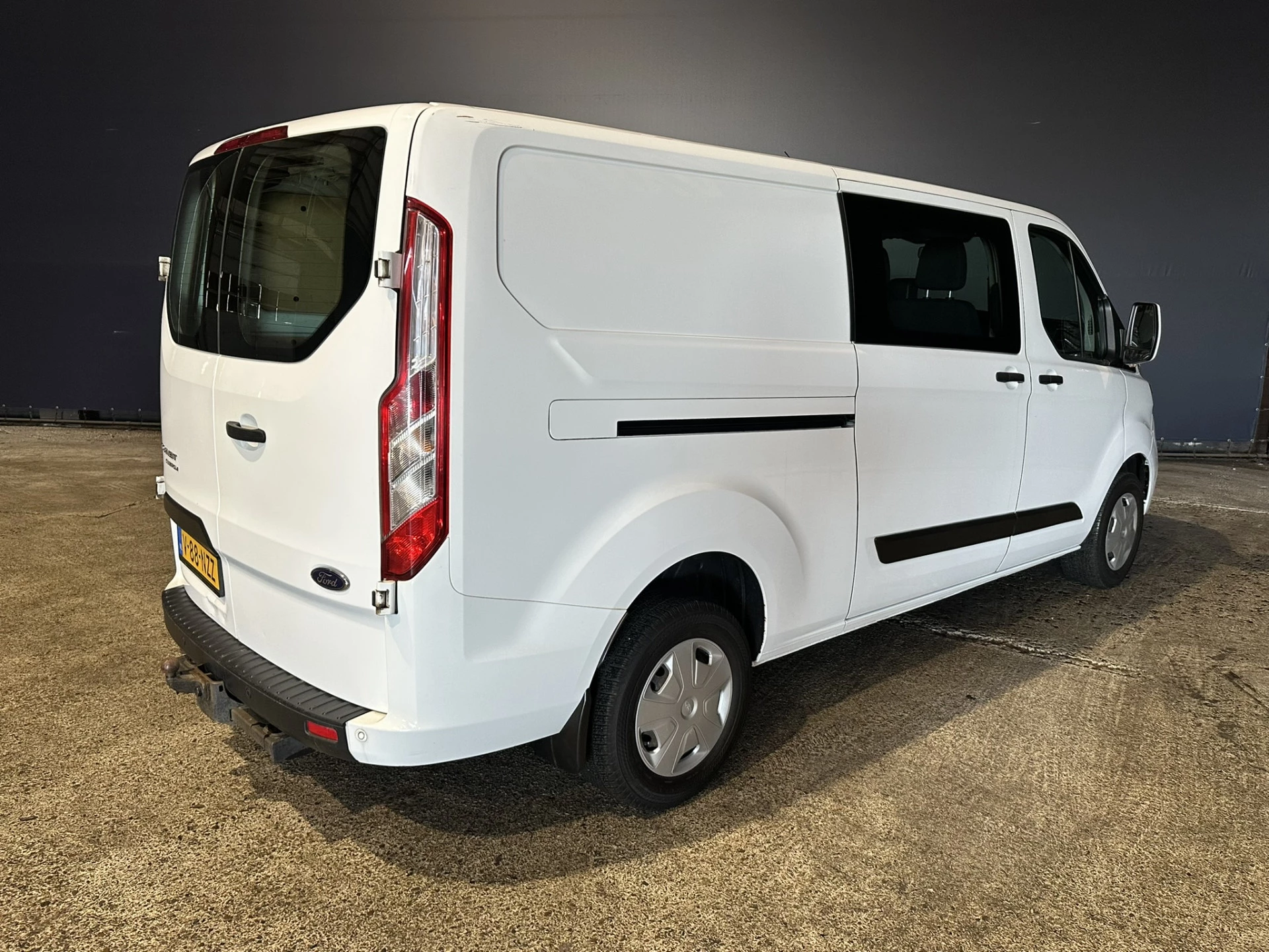 131pk sterke Ford Transit Custom L2H1 Euro6 dubbel cabine met airconditioning, 6 zitplaatsen en LED. Dealer onderhouden en voorzien van cruisecontrol, 2800kg trekhaak, parkeersensoren, stoelverwarming en bluetooth telefoonvoorbereiding.