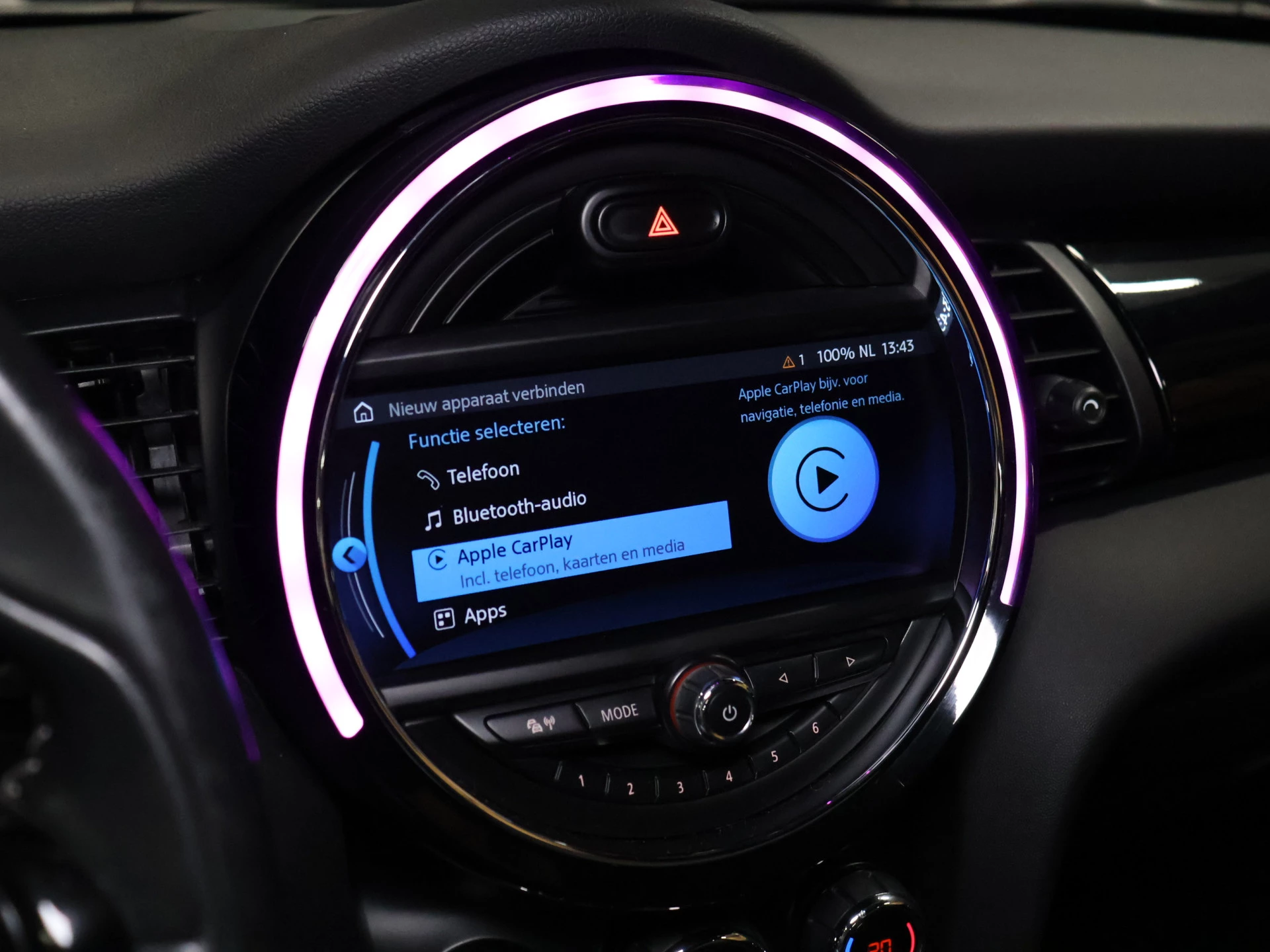 Slimme spraakbesturing herkent gesproken opdrachten en voert ze uit. Hoe is het met de banden, de accu en andere onderdelen? Connected Services maakt het inzichtelijk, 24/7 via de app. Op elk volume een royale geluidservaring: dat biedt het Harman/Kardon audiosysteem! Kaartlezen is verleden tijd, dankzij het aanwezige navigatiesysteem met harde schijf. Te weinig afstand tussen u en de achterligger? De sensoren registreren het direct en de achteropkomend verkeer waarschuwing geeft een signaal. Deze MINI is voorzien van Harman Kardon-audiosysteem, automatische airconditioning, draadloos opladen, parkeersensoren voor en achter, regensensor en cruise control.