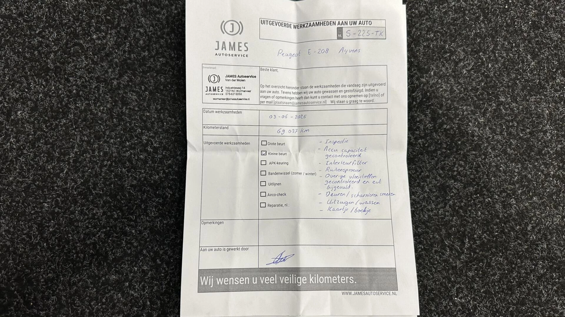 Inclusief onderhoudsbeurt.
