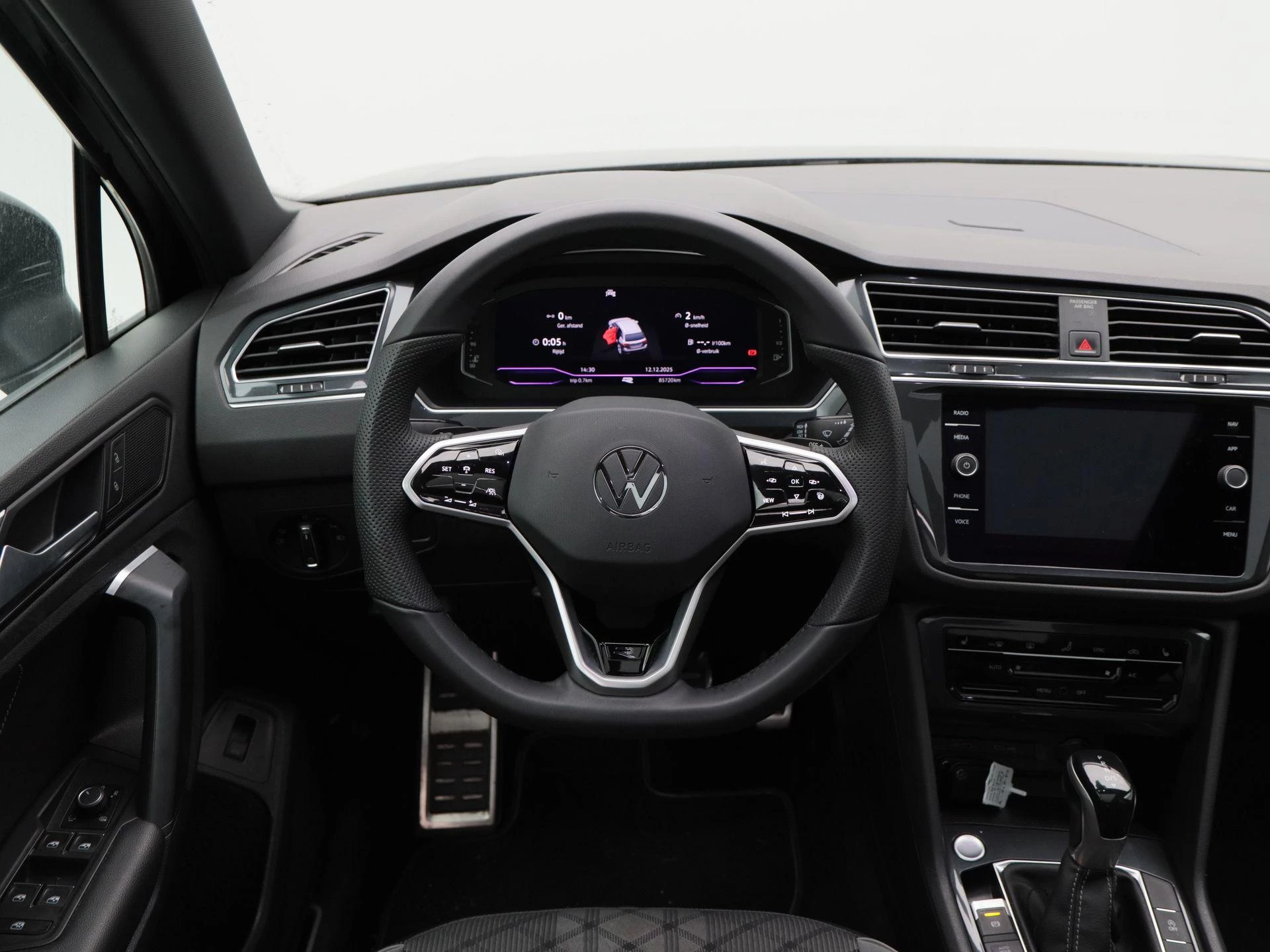 Binnenin biedt de Tiguan een hoogwaardige en comfortabele rijomgeving met stof/leder bekleding, stoelverwarming, elektronische climate control (ECC) en een lederen stuurwiel. De Virtual Cockpit zorgt voor een moderne, overzichtelijke weergave van alle rijinformatie.
