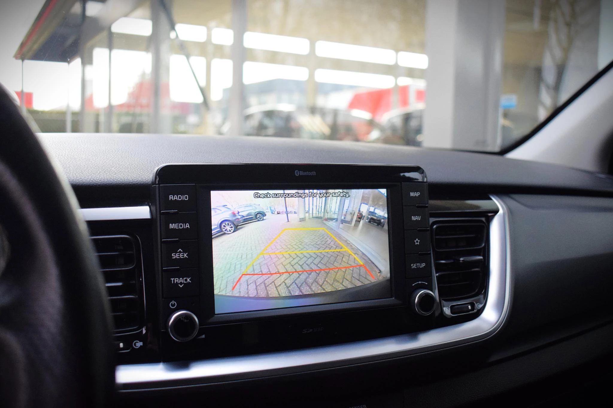 Overzichtelijk en veilig parkeren met de achteruitrijcamera. Overal en altijd. Het full map navigatiesysteem en het audiosysteem (met DAB-ontvangst!) bedient u met knoppen op het stuur. Een heerlijke egale snelheid? Even de cruise control inschakelen! Het spreekt voor zich dat u in deze auto ook airconditioning aantreft. De uitrusting van deze auto is met lederen stuur en versnellingspook en centrale deurvergrendeling met afstandsbediening behoorlijk compleet.
